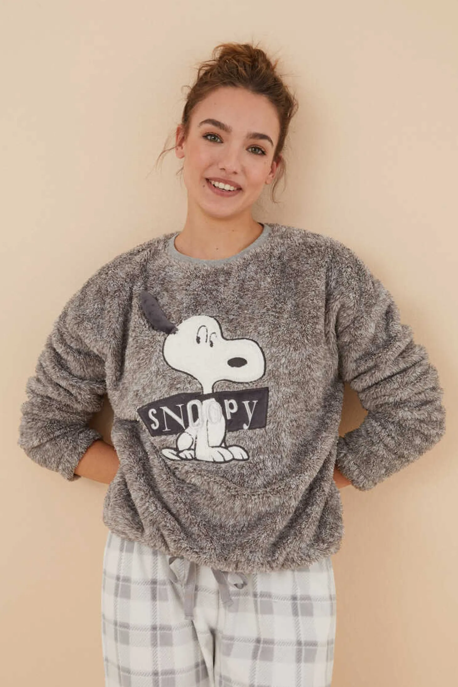 Pijama Com Divertido Estampado Do Snoopy, De Manga Comprida Em Pelo Esponjoso E Calcas Compridas Em Polar Suave. Perfeito Para As Mais Friorentas: Ideal Para Do … Rmir Quentinha Ou Estar Em Casa Sem Passar Frio Nenhum.