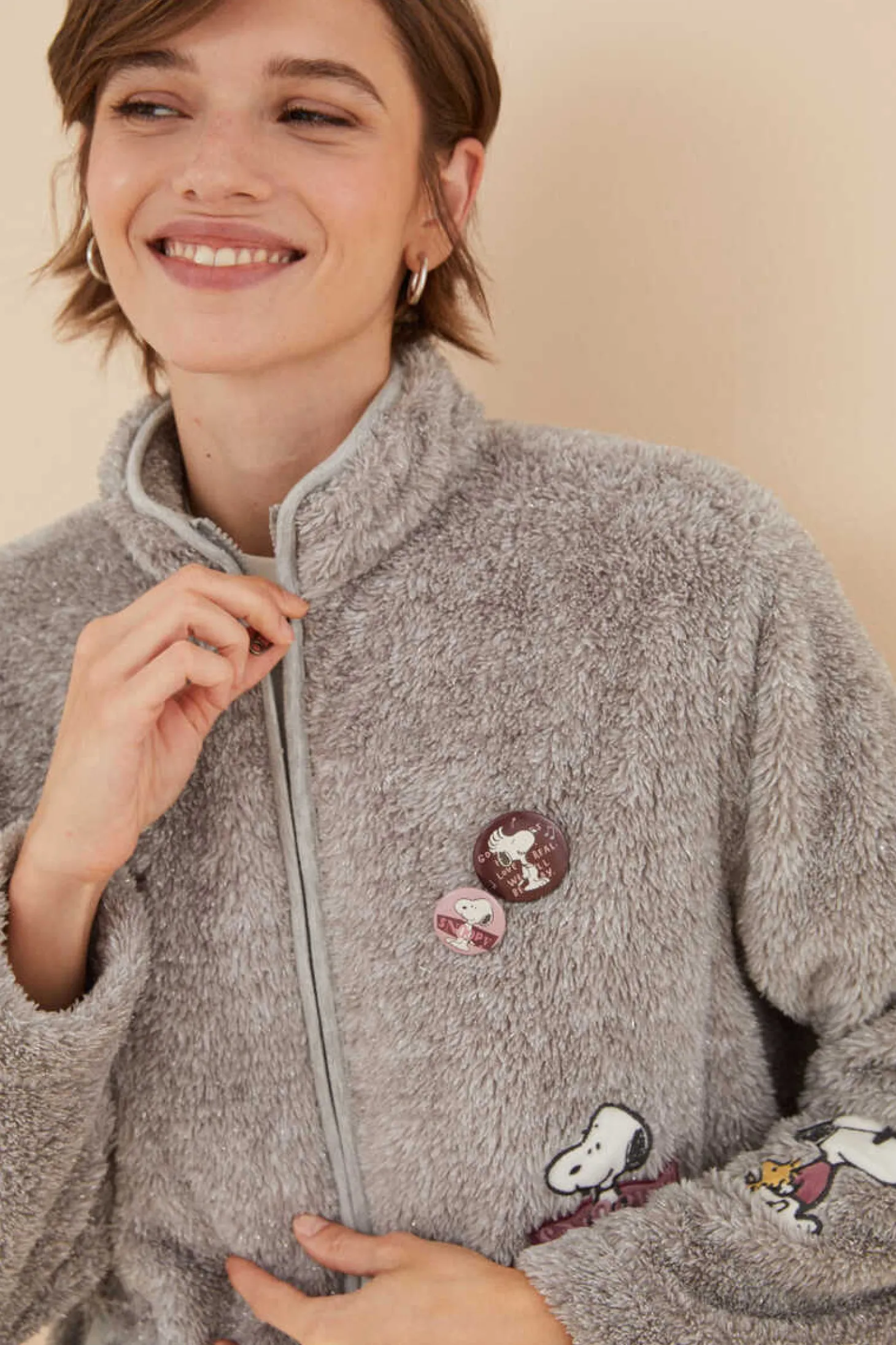 Robe De Manga Comprida De Pelo Esponjoso E Lurex, Com Divertidos Remendos Do Snoopy. Super Quentinha, Ideal Para As Mais Pequenas: E Perfeita Para Estar Em Casa … Sem Passar Frio Nenhum.
