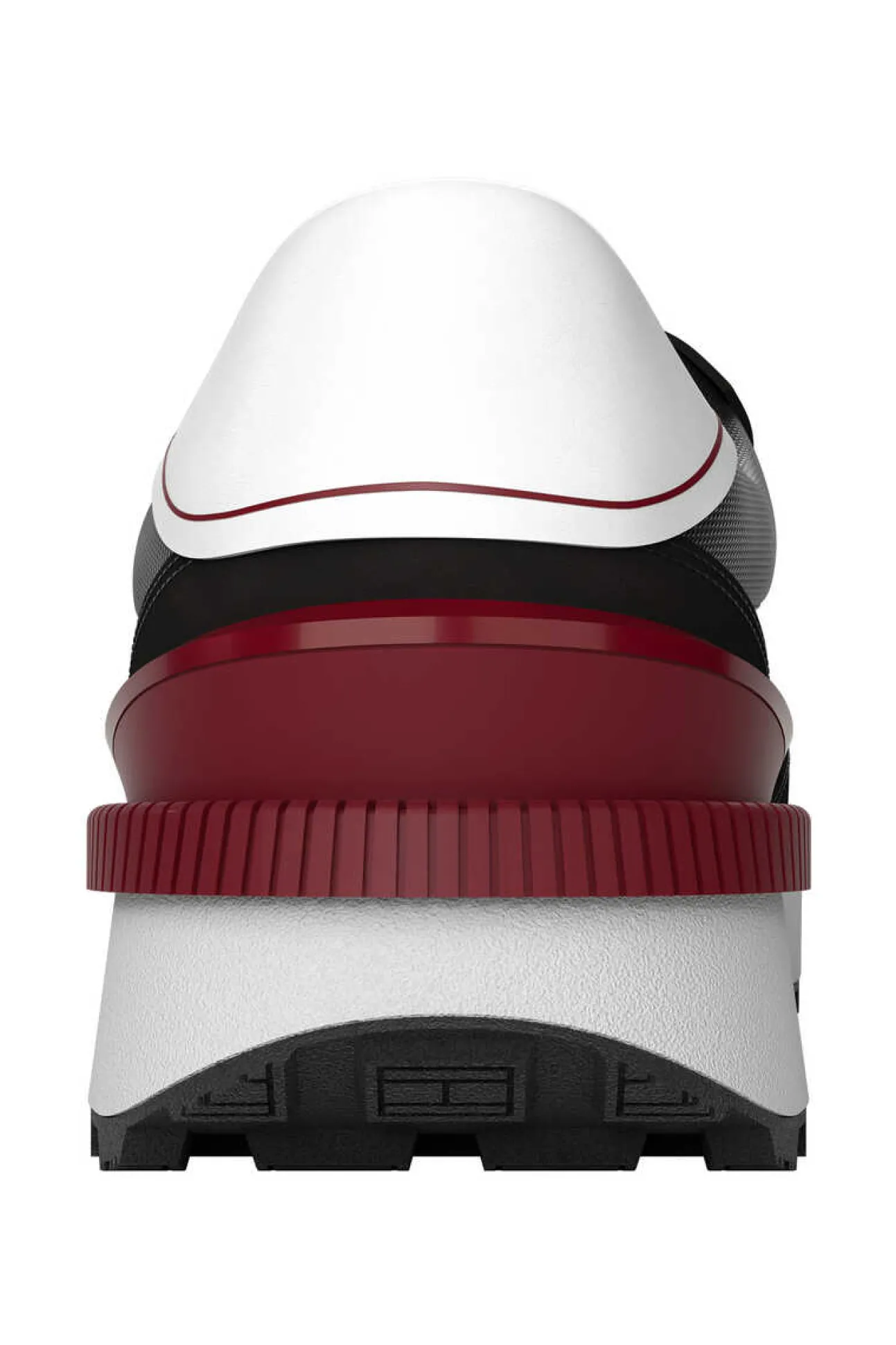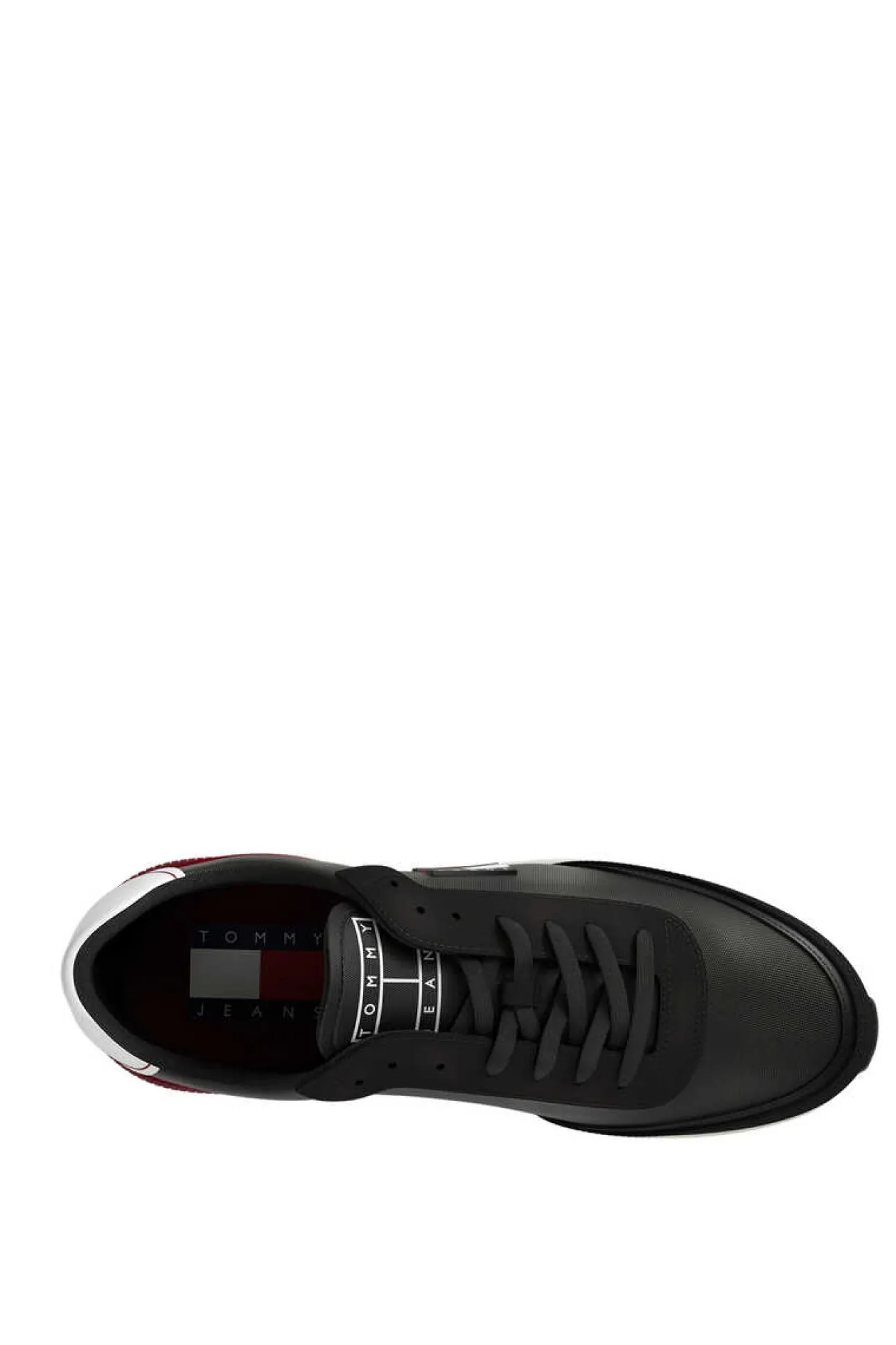 Runner De Homem Tommy Jeans, Confecionadas Em 100% Poliester Reciclado, Preto Com O Estabilizador Em Grena E Salto E Sola Em Branco. Bandeira Tommy Jeans Na Lat … Eral.Ver Mais