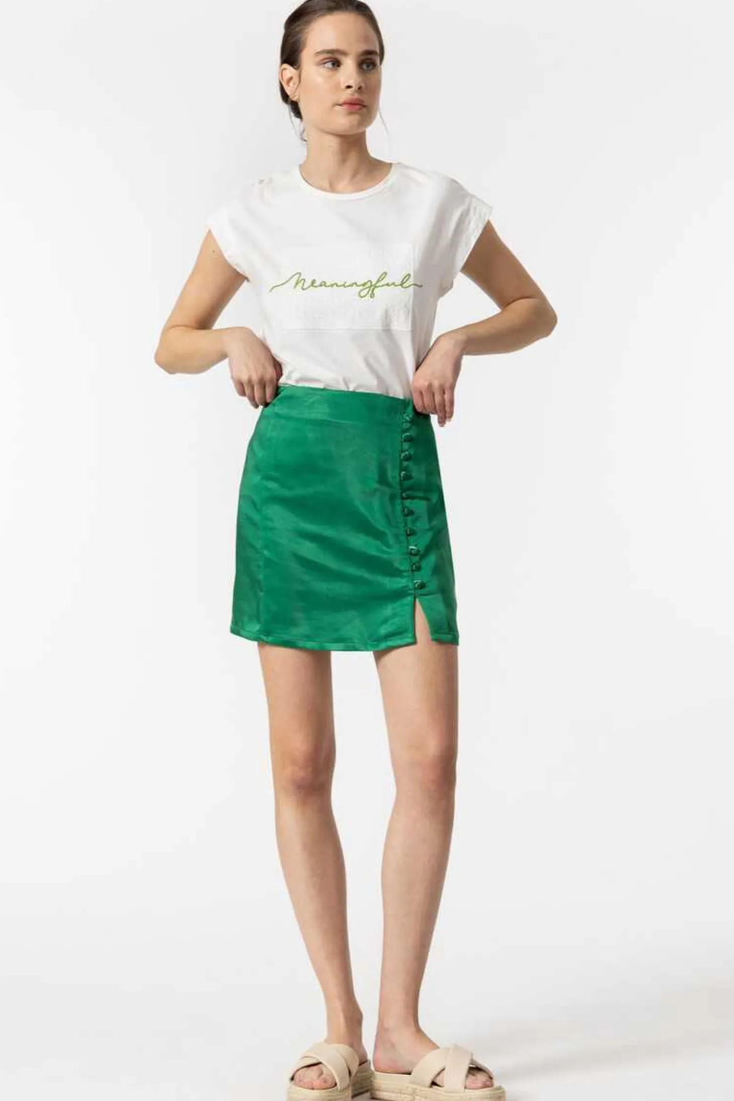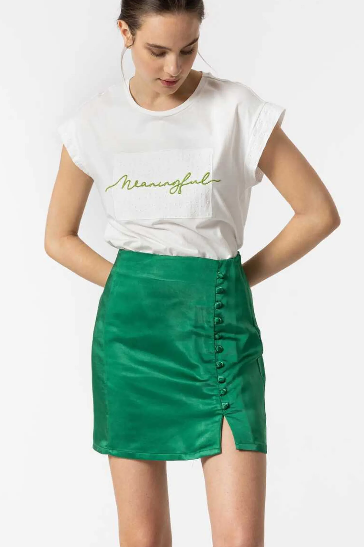 Saia Midi De Cintura Media. Fecho Lateral Com Fecho-Eclair Invisivel Na Costura.
