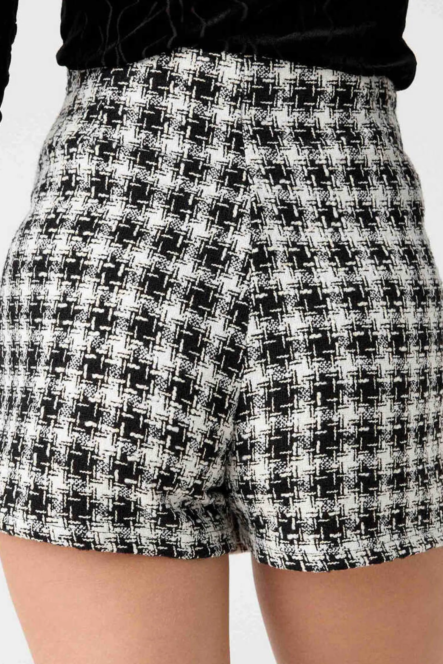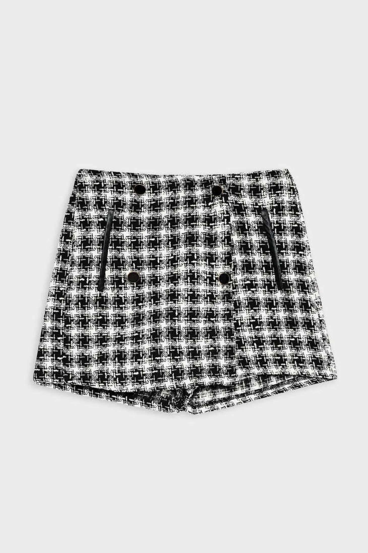 Saia-Calca De Cintura Alta Em Branco E Preto. Botoes Decorativos Na Parte Dianteira E Debruados Em Polipele. Fecho Lateral Com Fecho-Eclair.