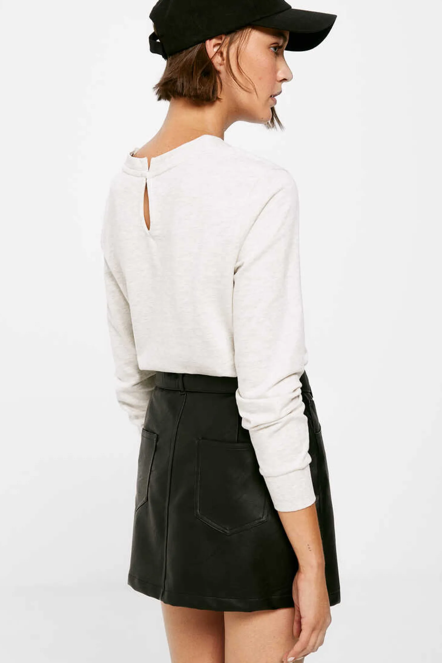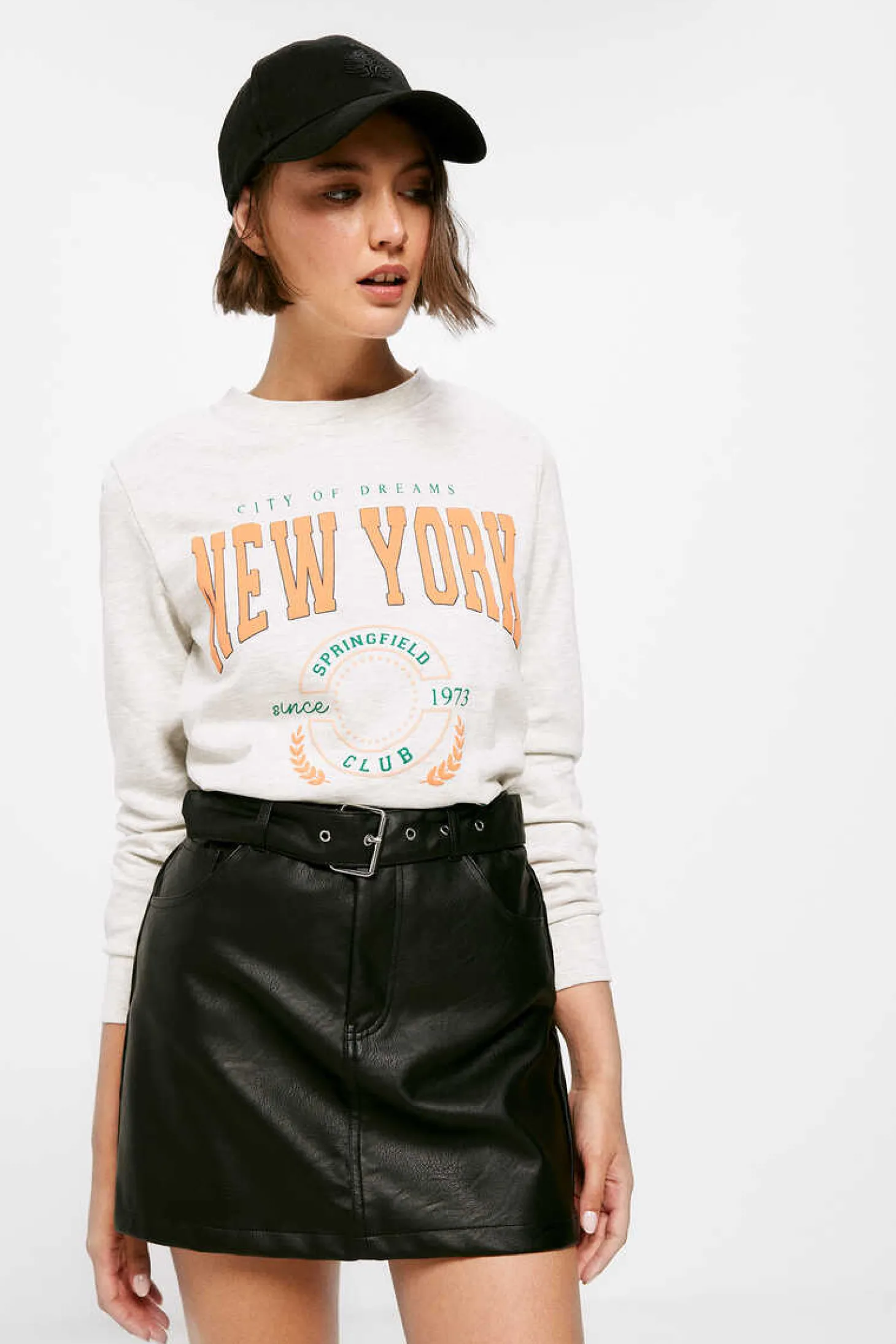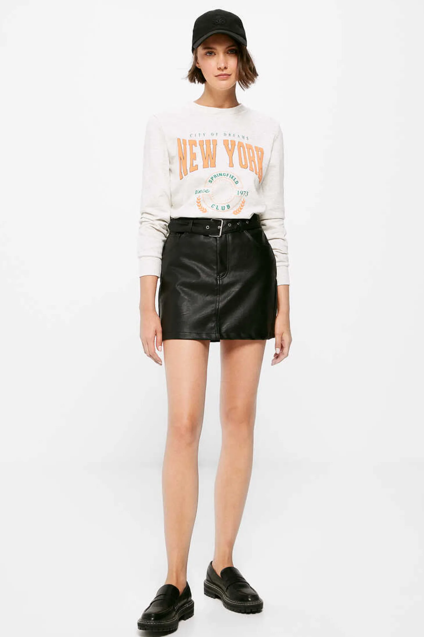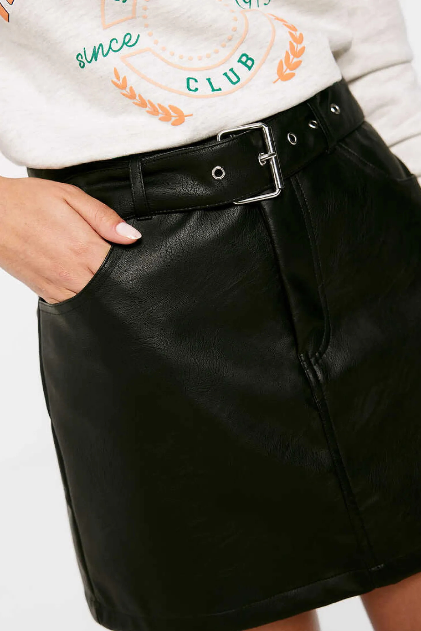 Saia Curta Reta, Com Bolsos Na Parte Dianteira E Traseira, Com Detalhe De Cinto Com Ilhos E Fivela Metalica.
