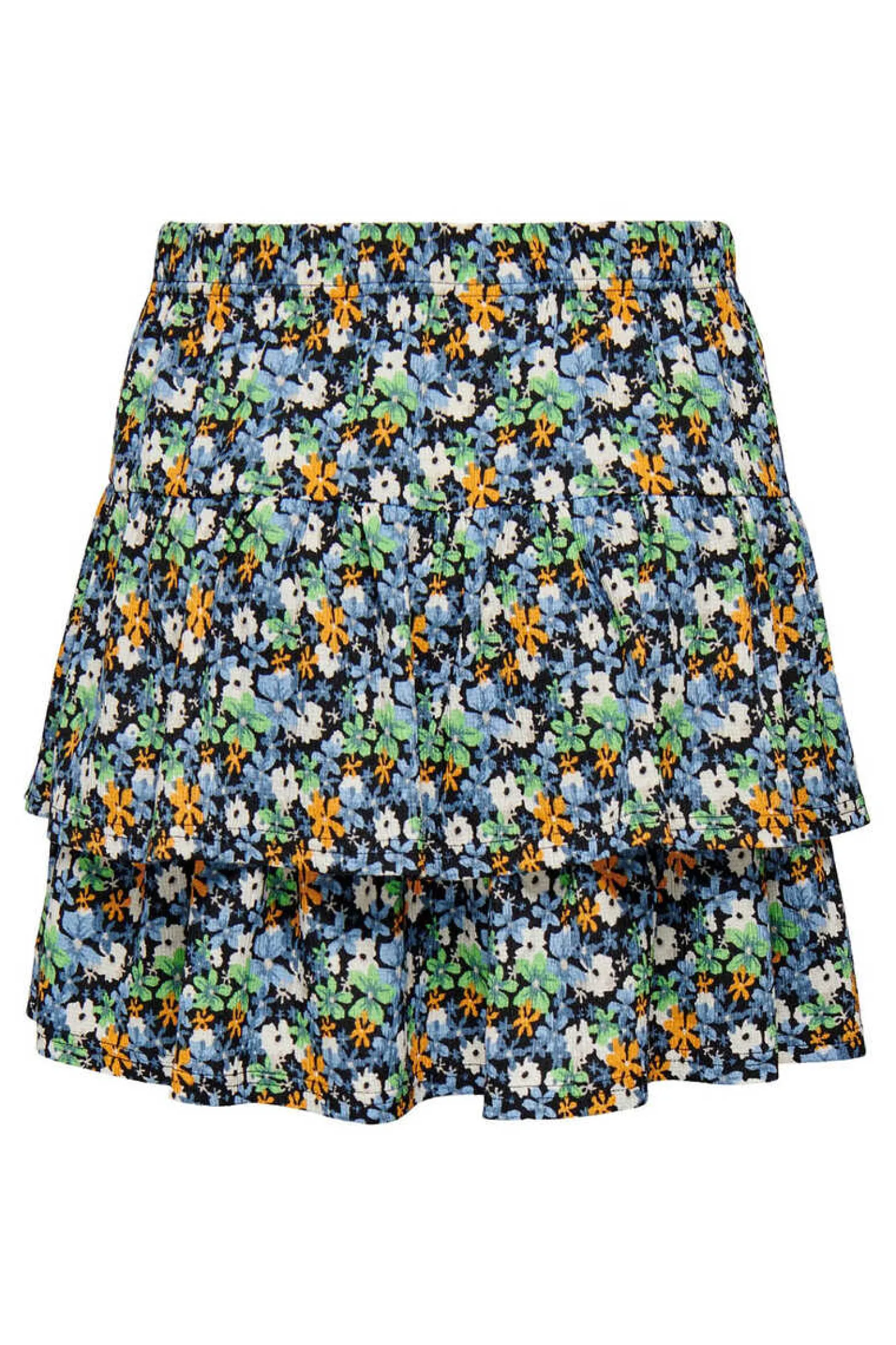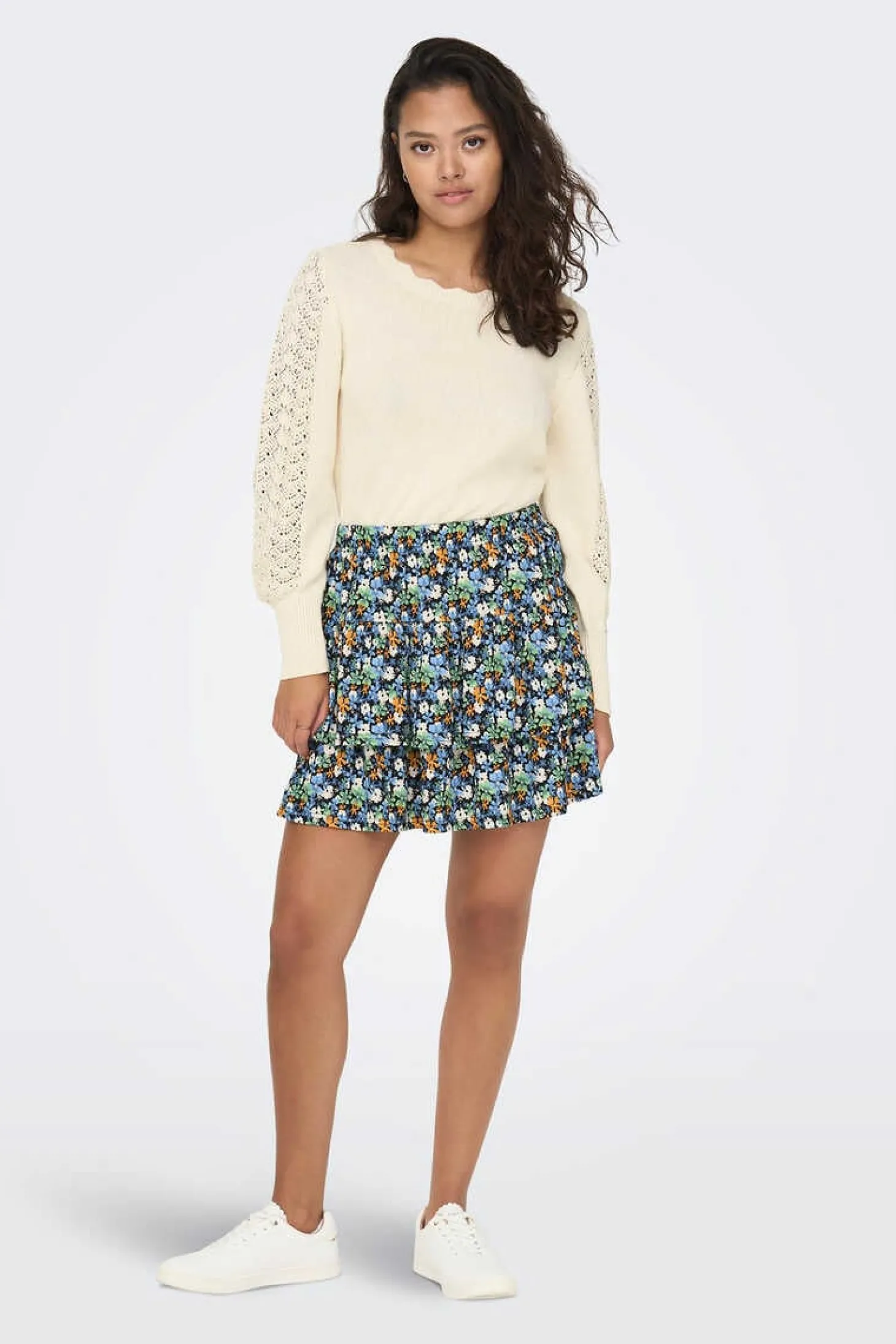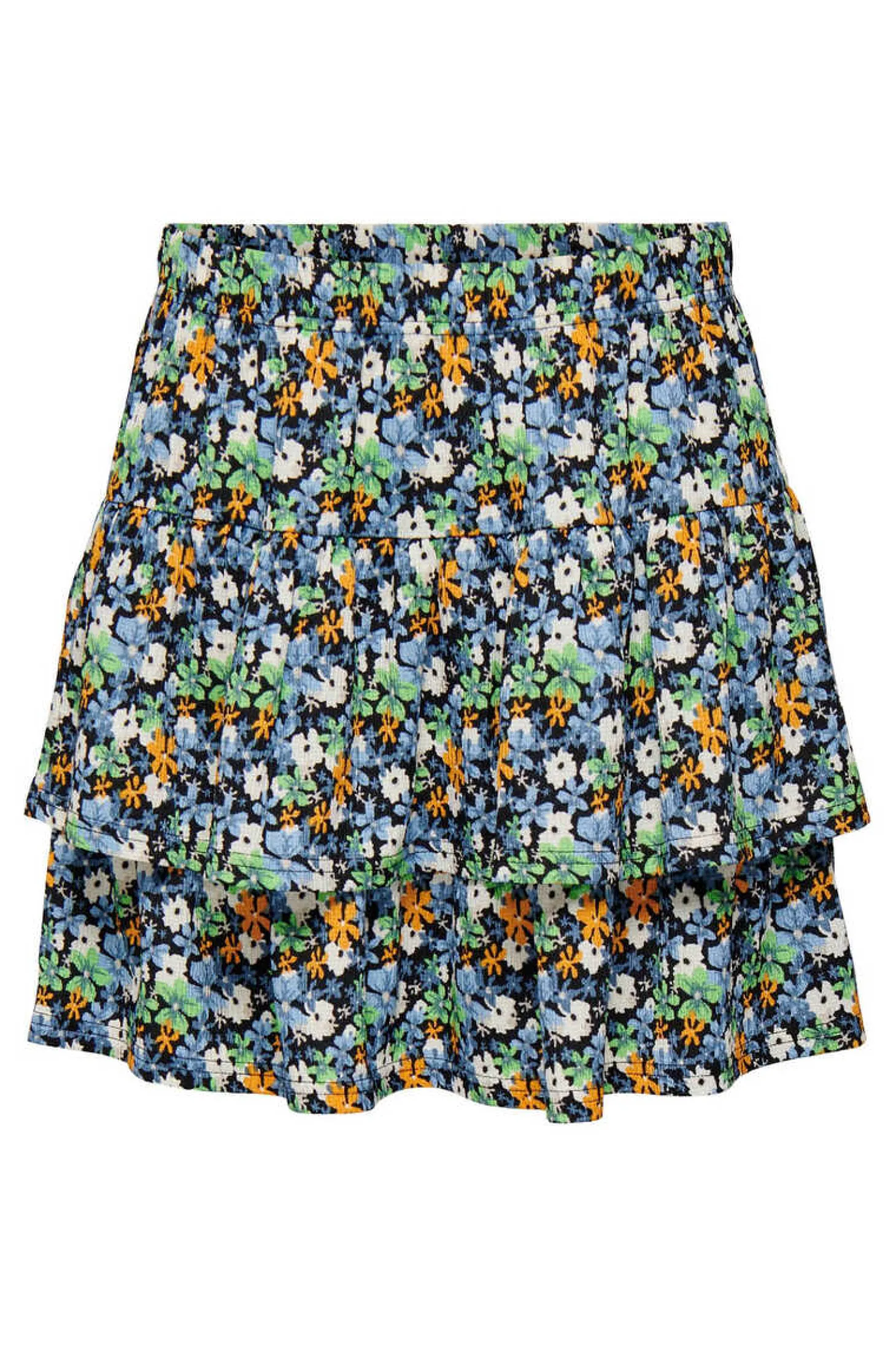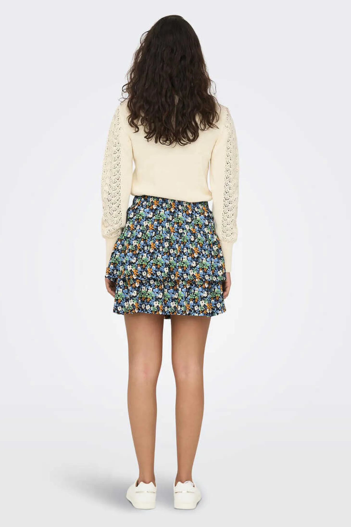 Saia Curta Com Folhos Largos E Cintura Elastica.
