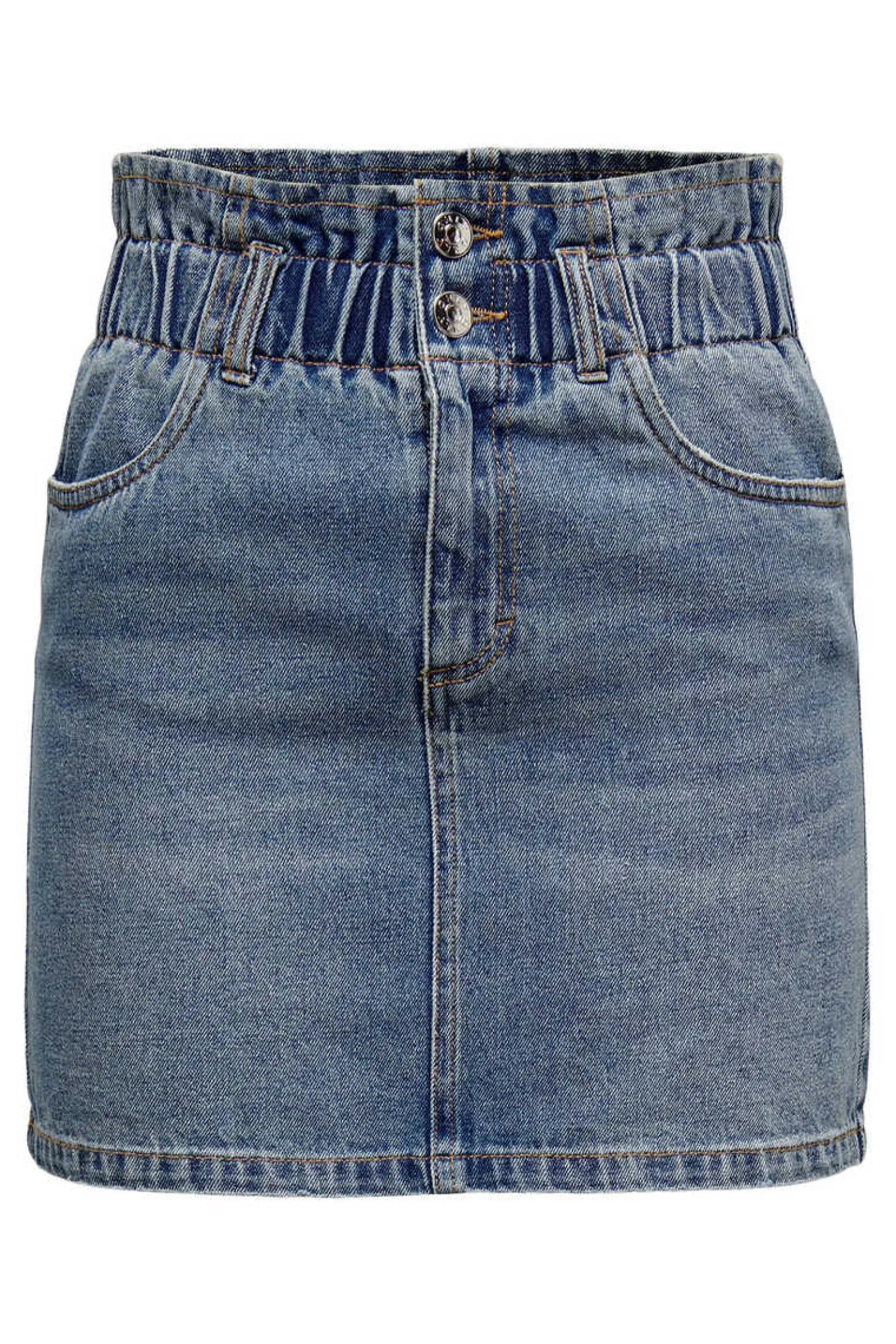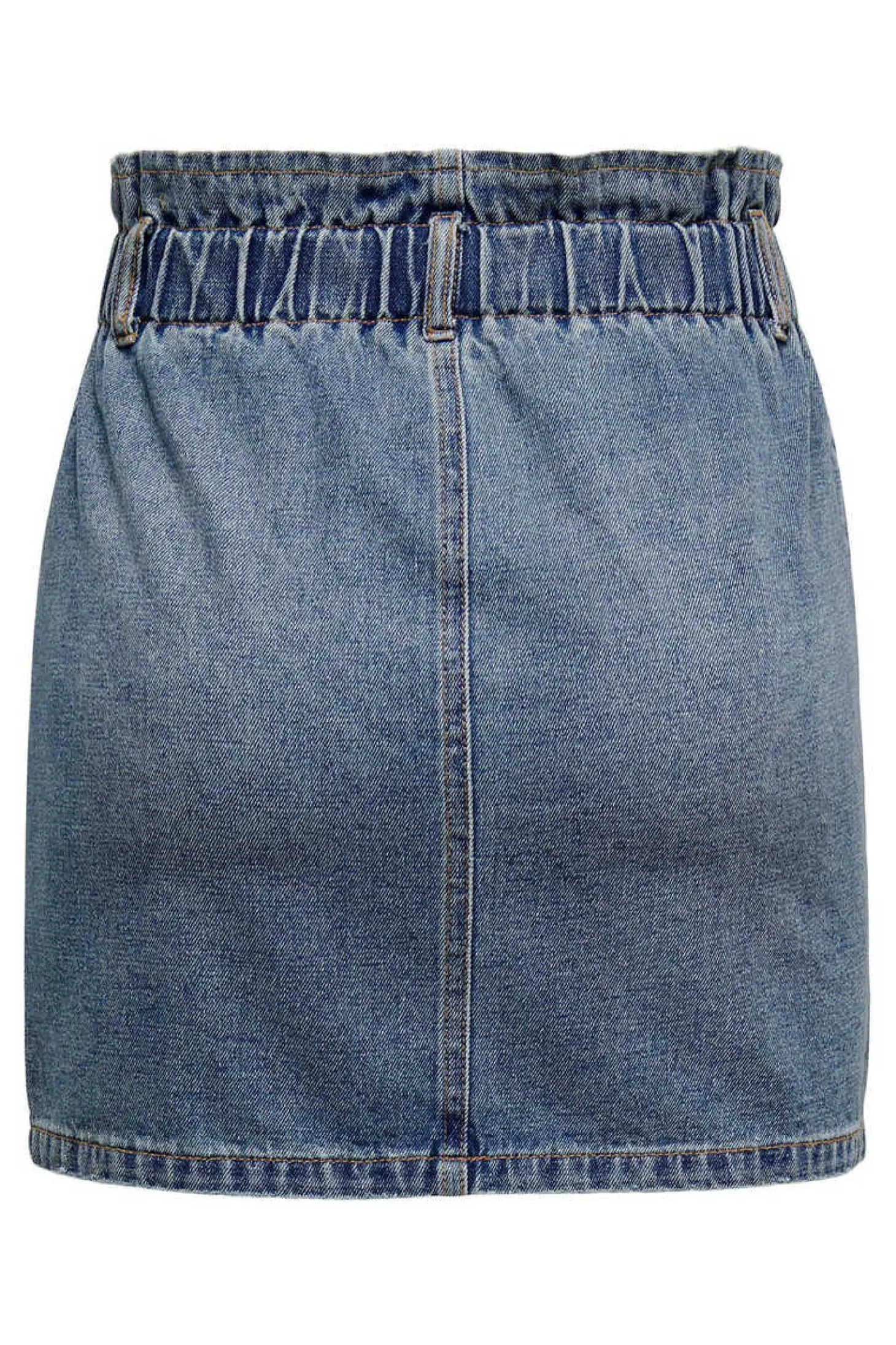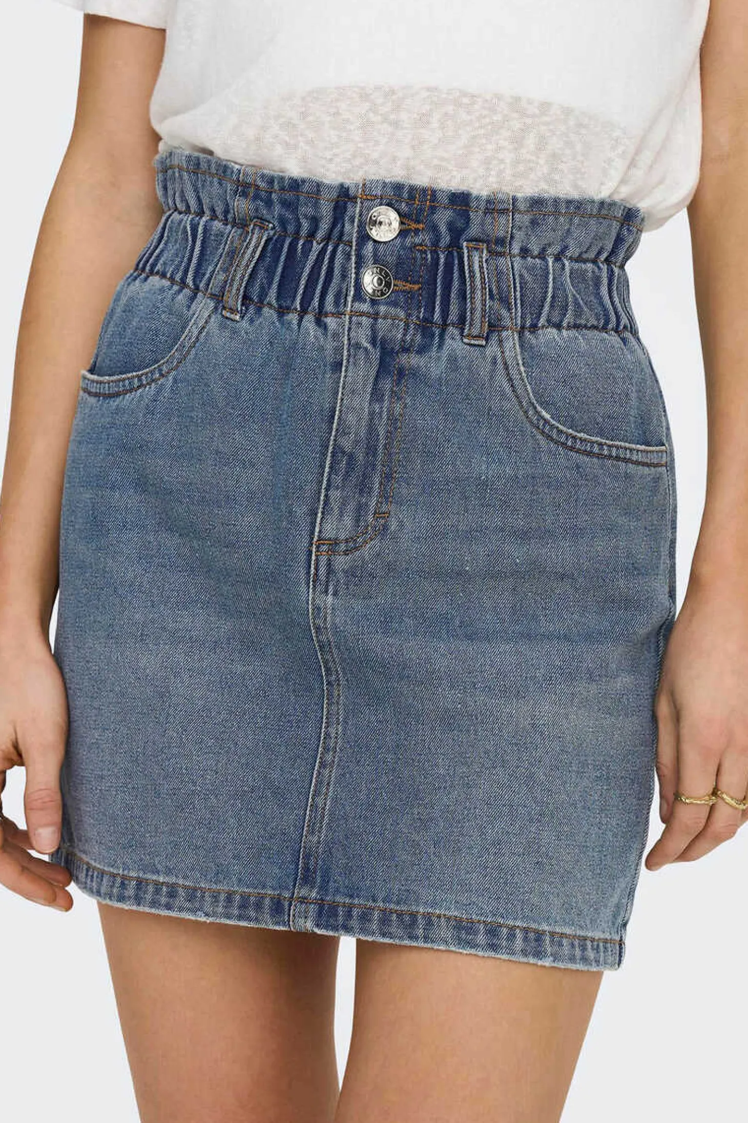Saia Curta De Ganga Com Cintura Alta Franzida, Dois Bolsos E Fecho Com Botoes.