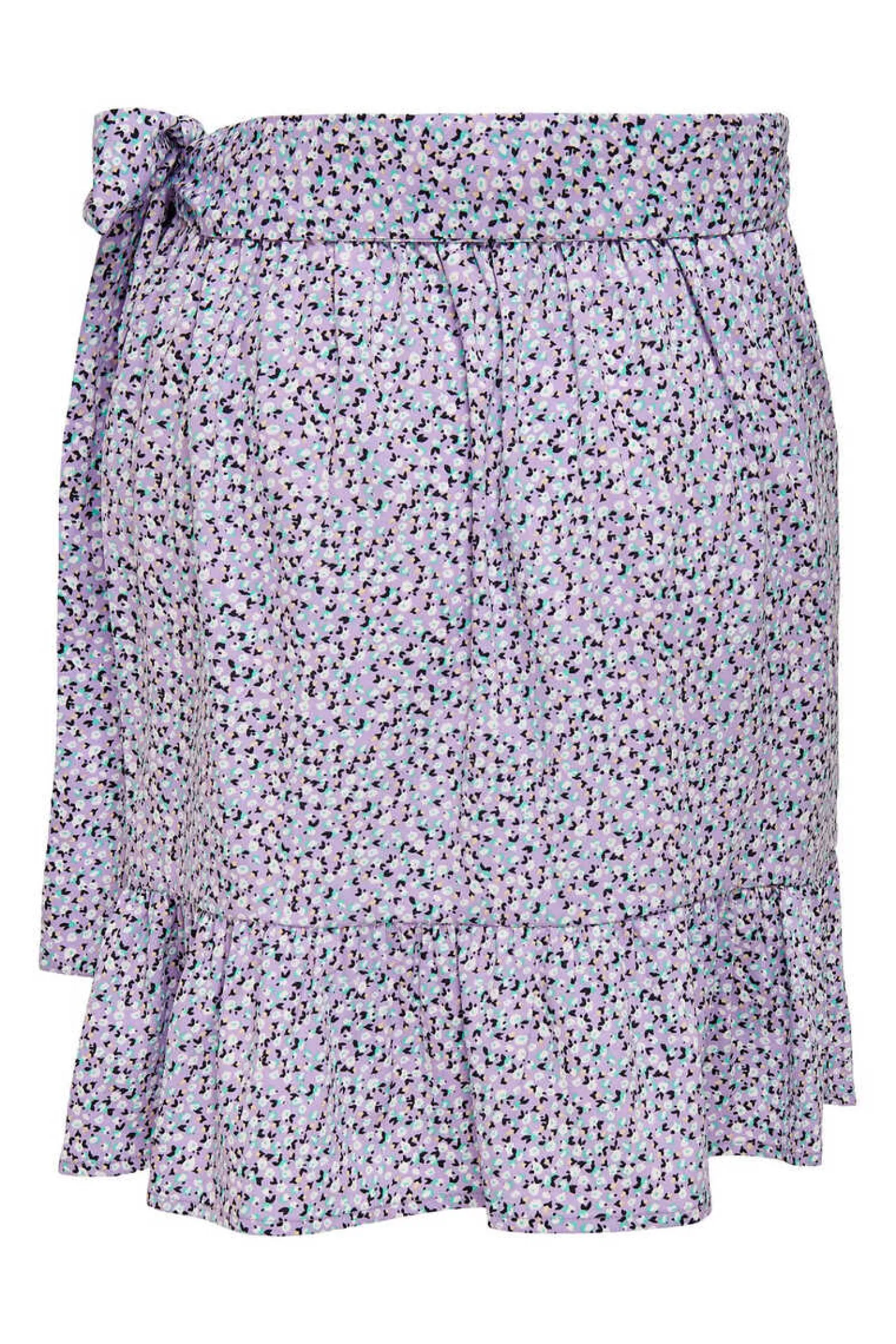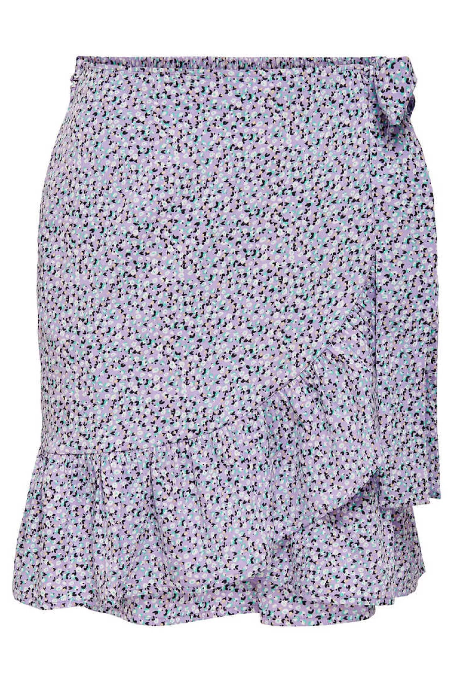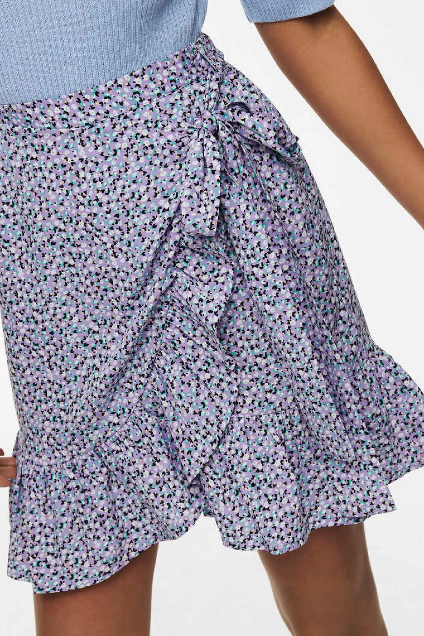 Saia Curta Fluida Cruzada, Com Folhos Na Bainha E Lateral.