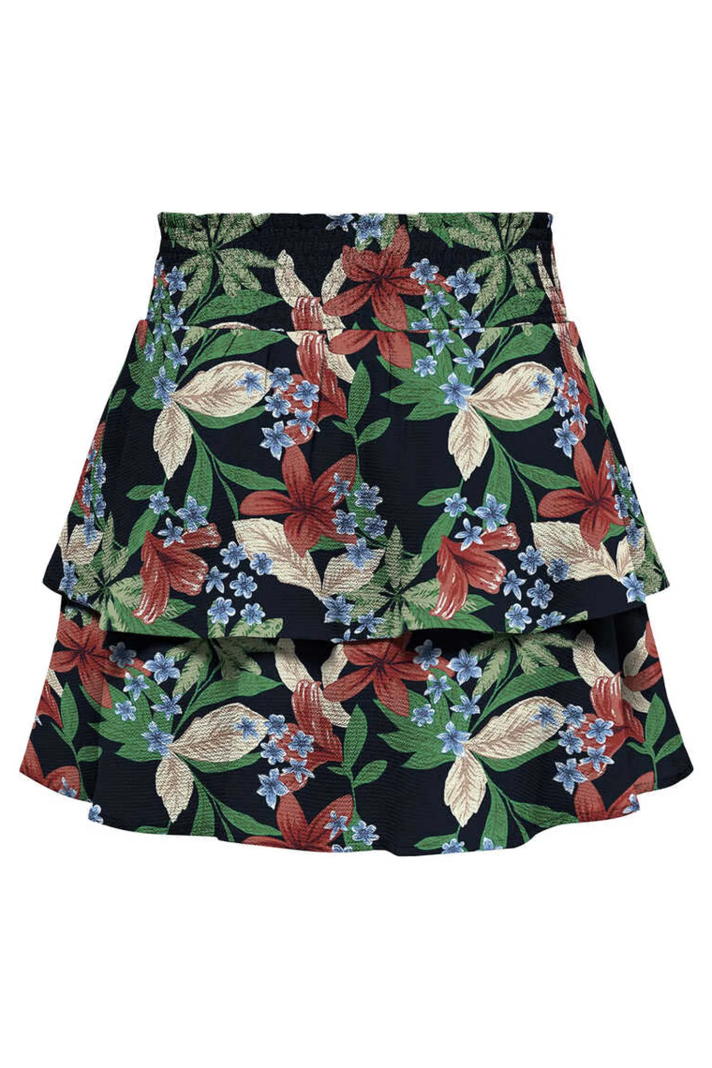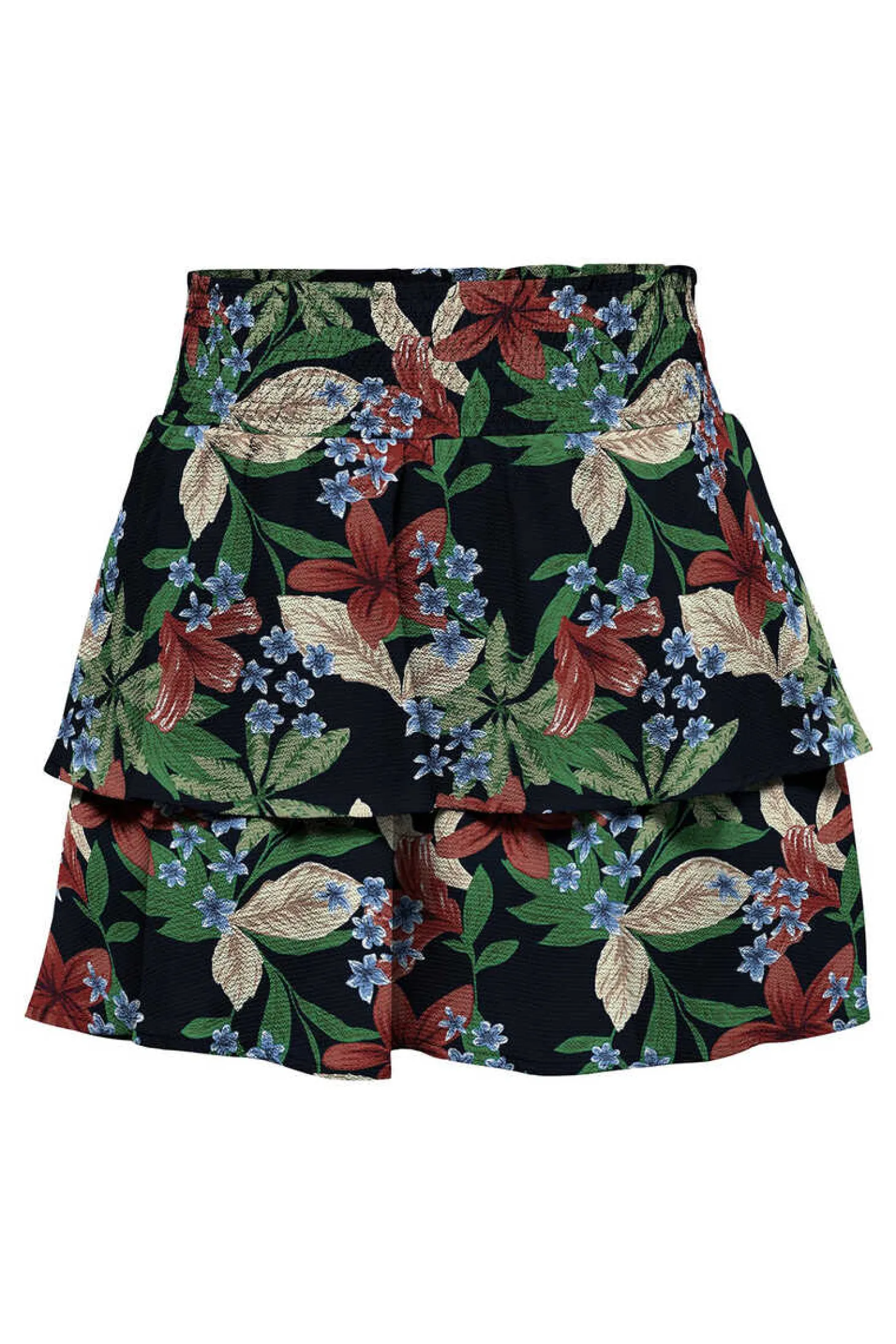 Saia Curta Fluida Com Folhos E Cintura Elastica.