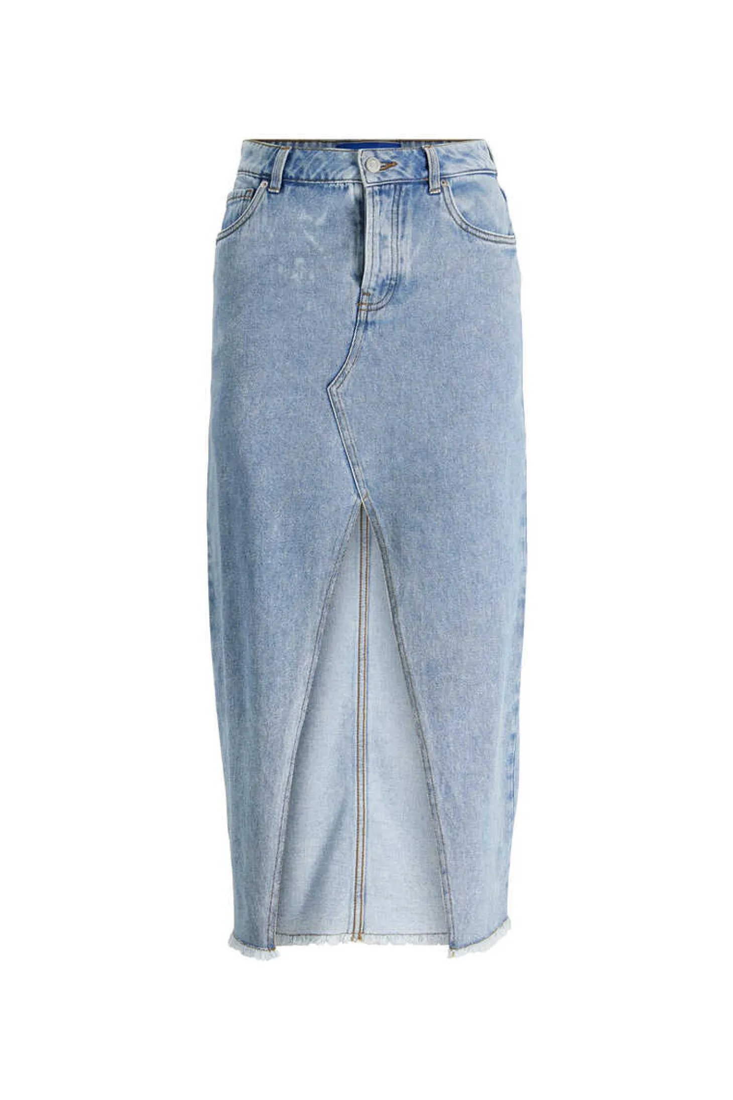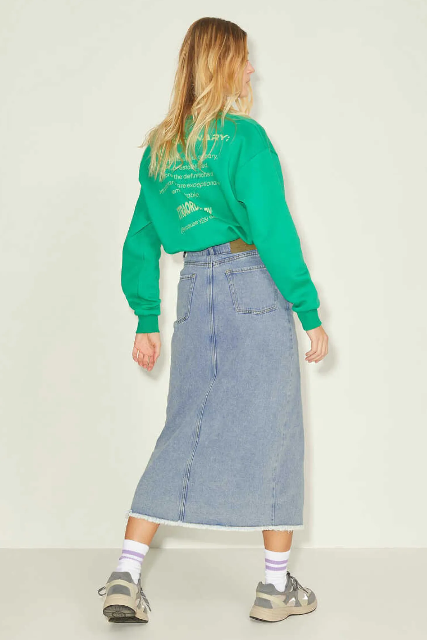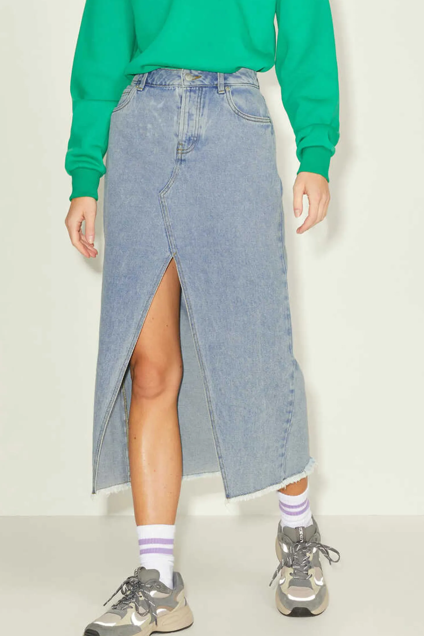 Saia Jeans Longa Com Bolsos Nas Costas.