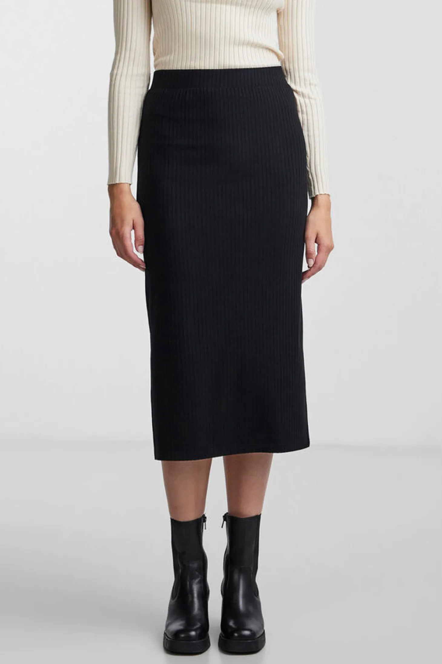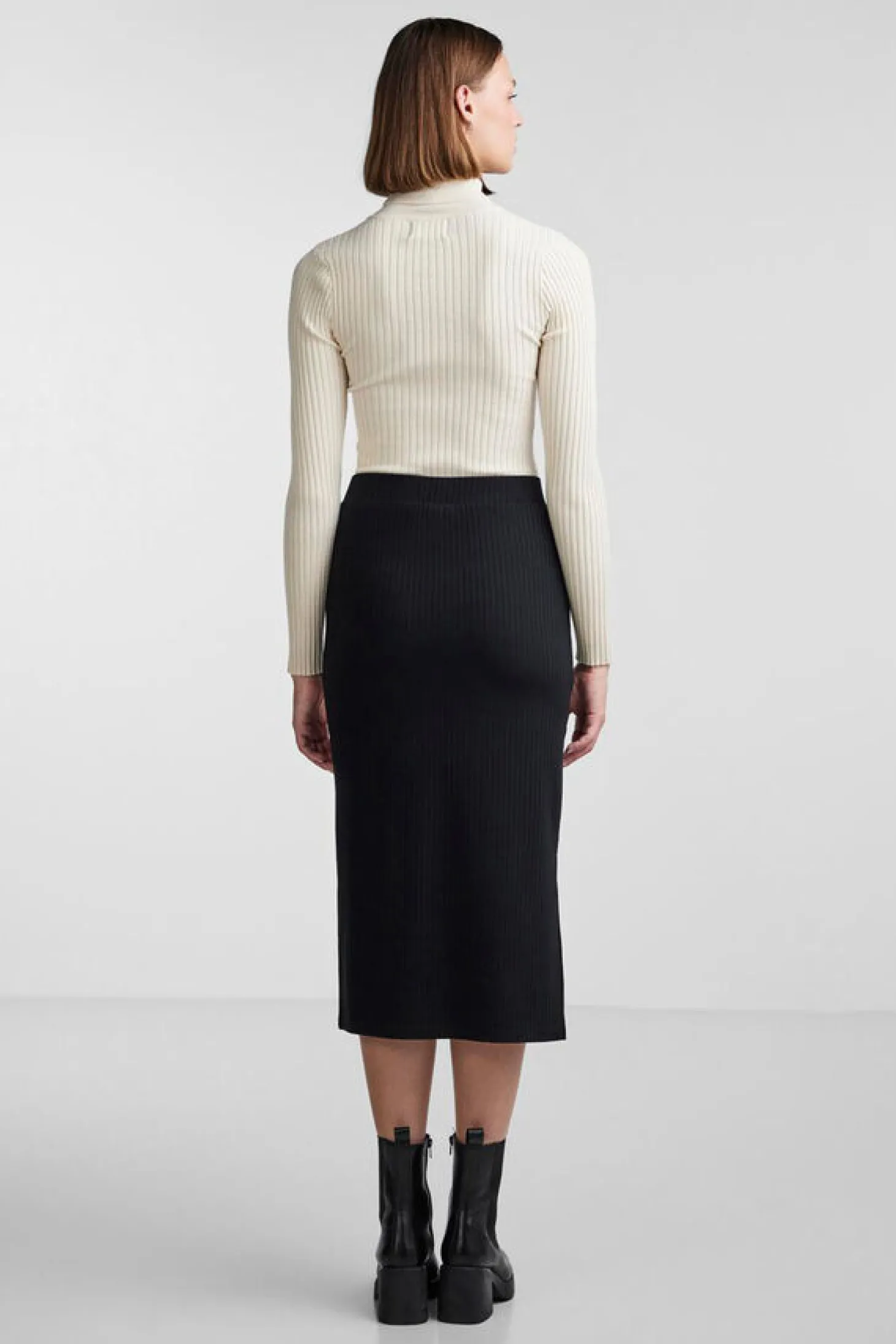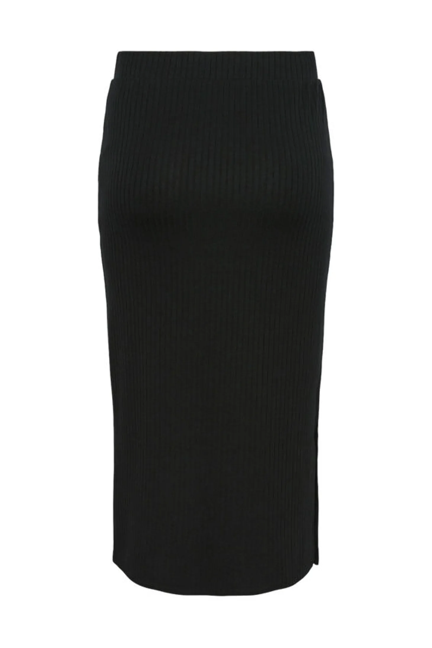 Saia Midi De Trico, Com Cintura Elastica E Detalhe De Aberturas Nas Laterais. Tecido Com Estrutura Canelado.