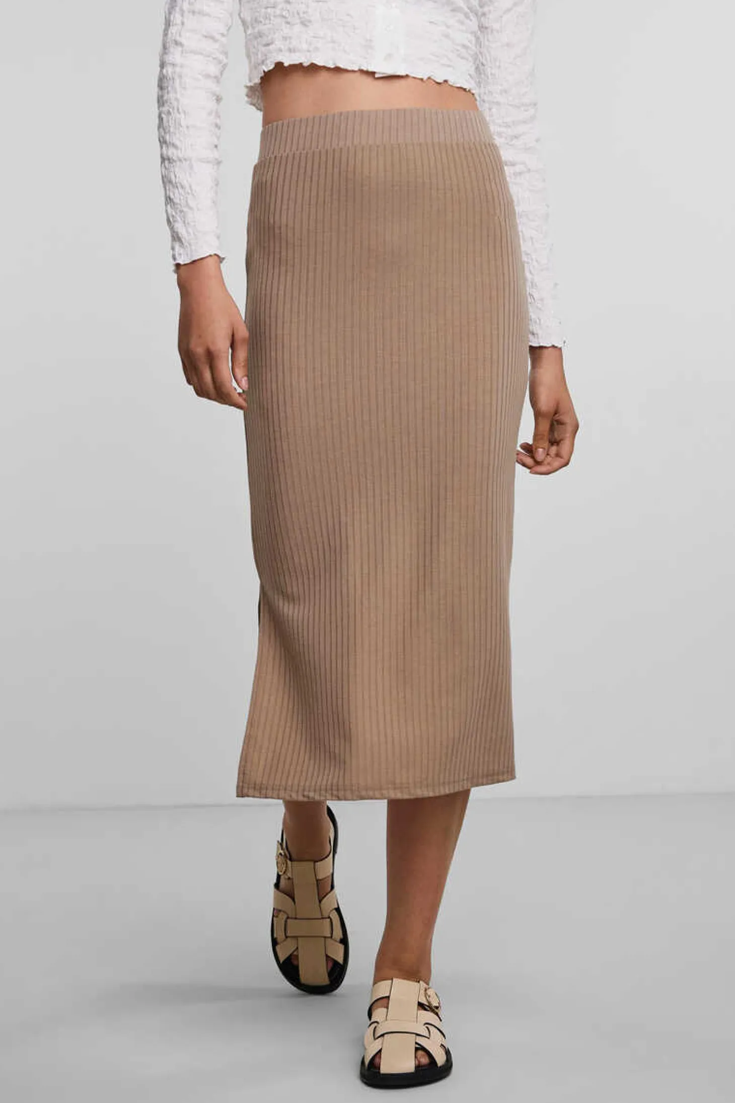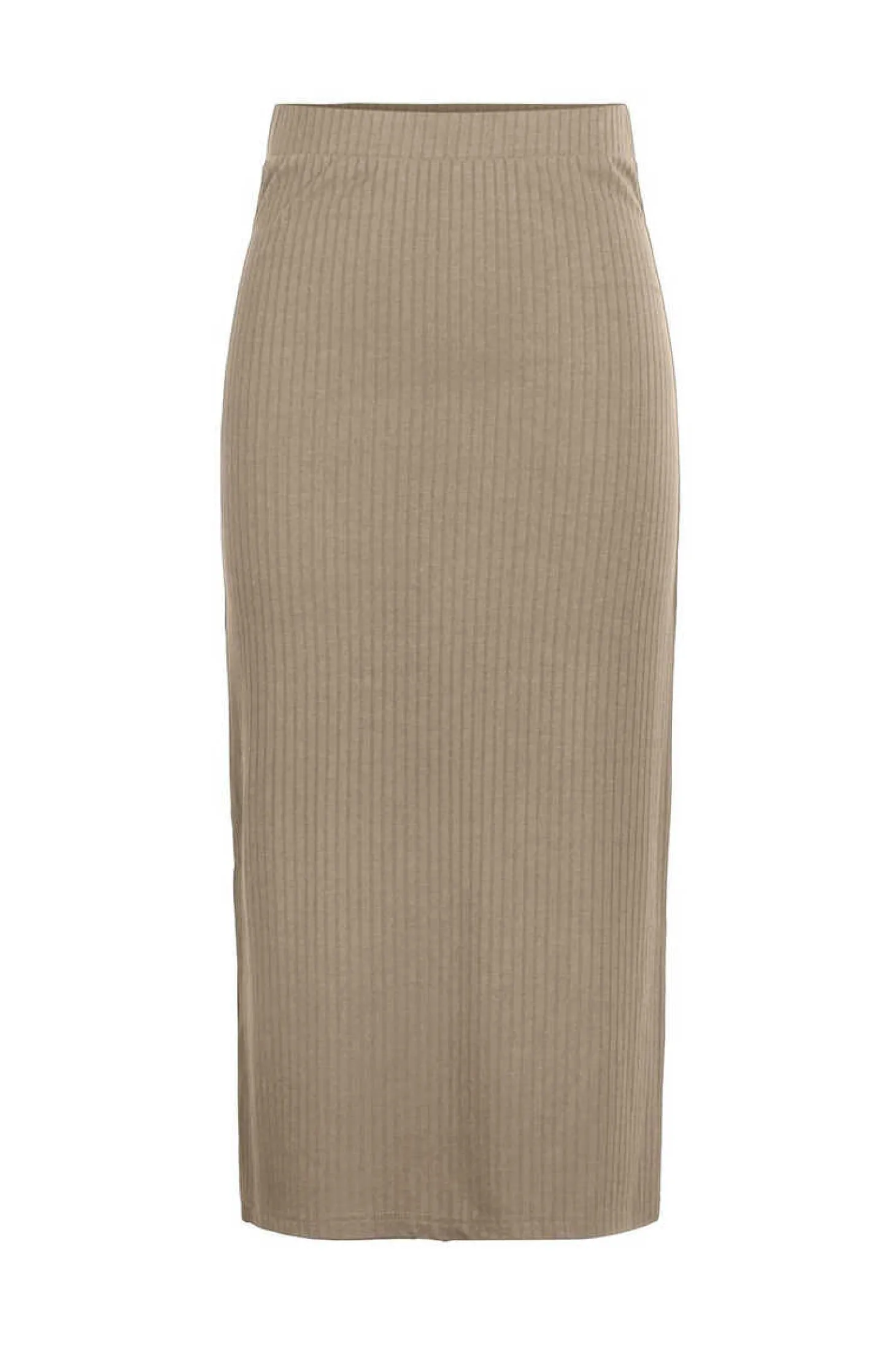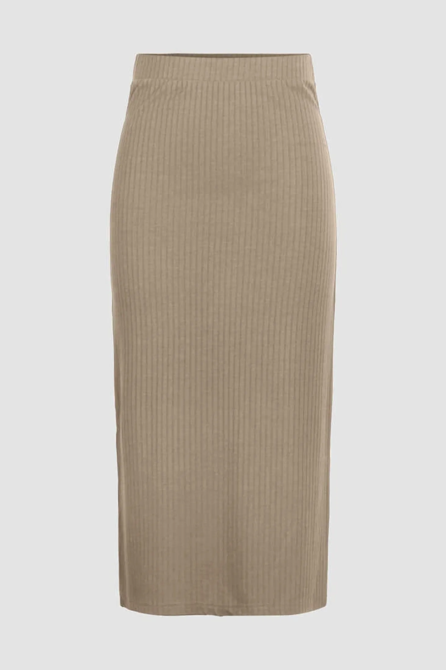 Saia Midi De Trico, Com Cintura Elastica E Detalhe De Aberturas Nas Laterais. Tecido Com Estrutura Canelado.