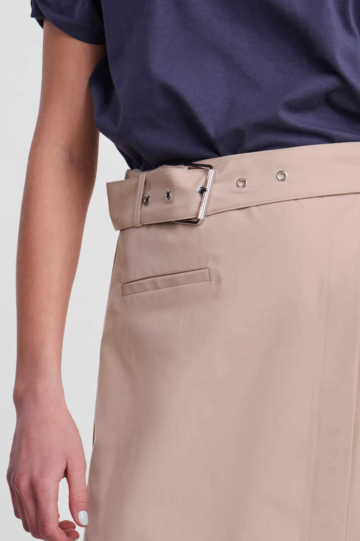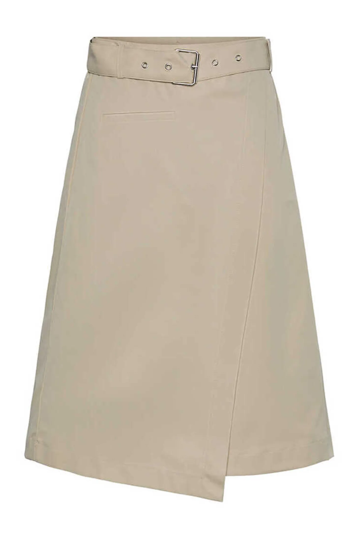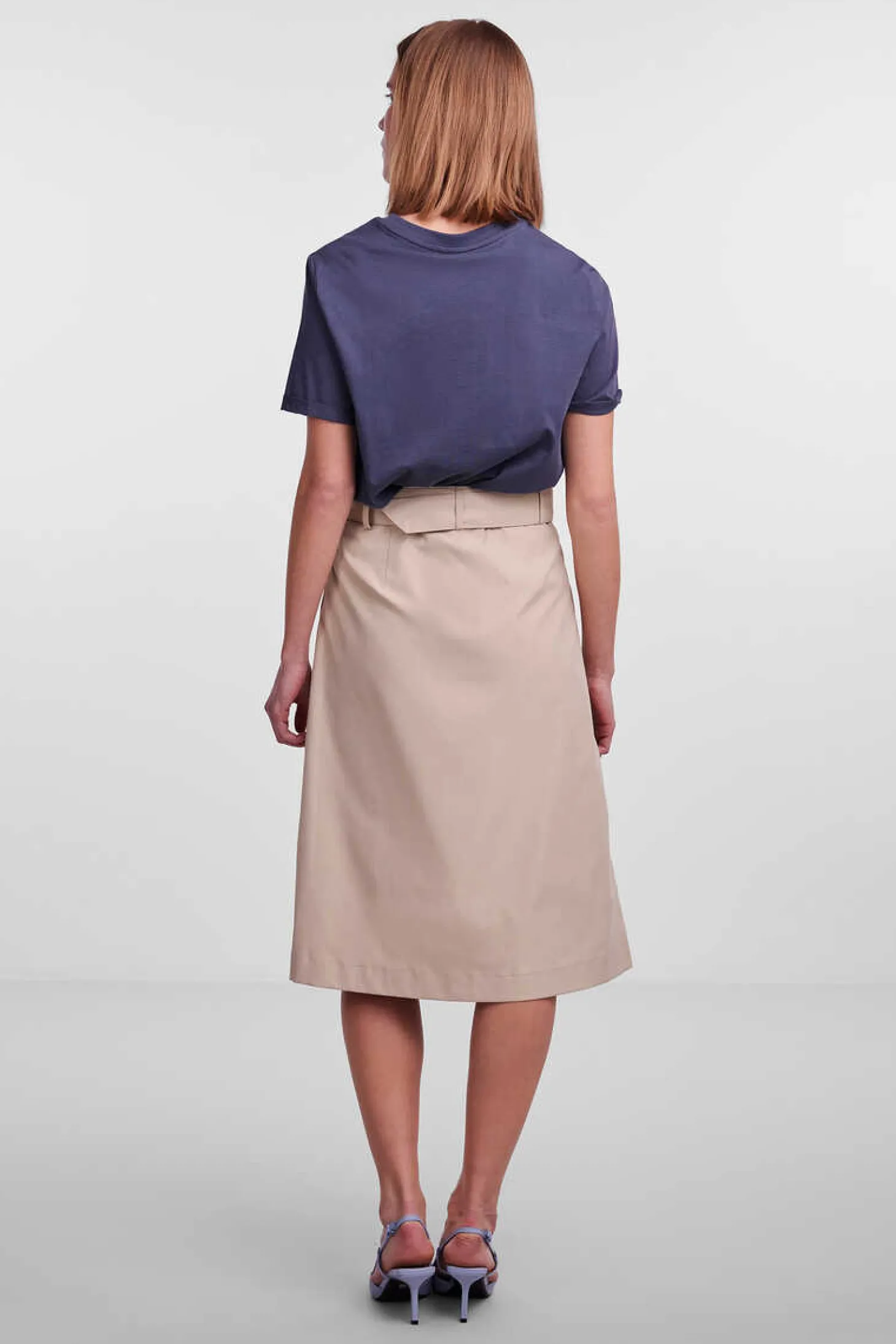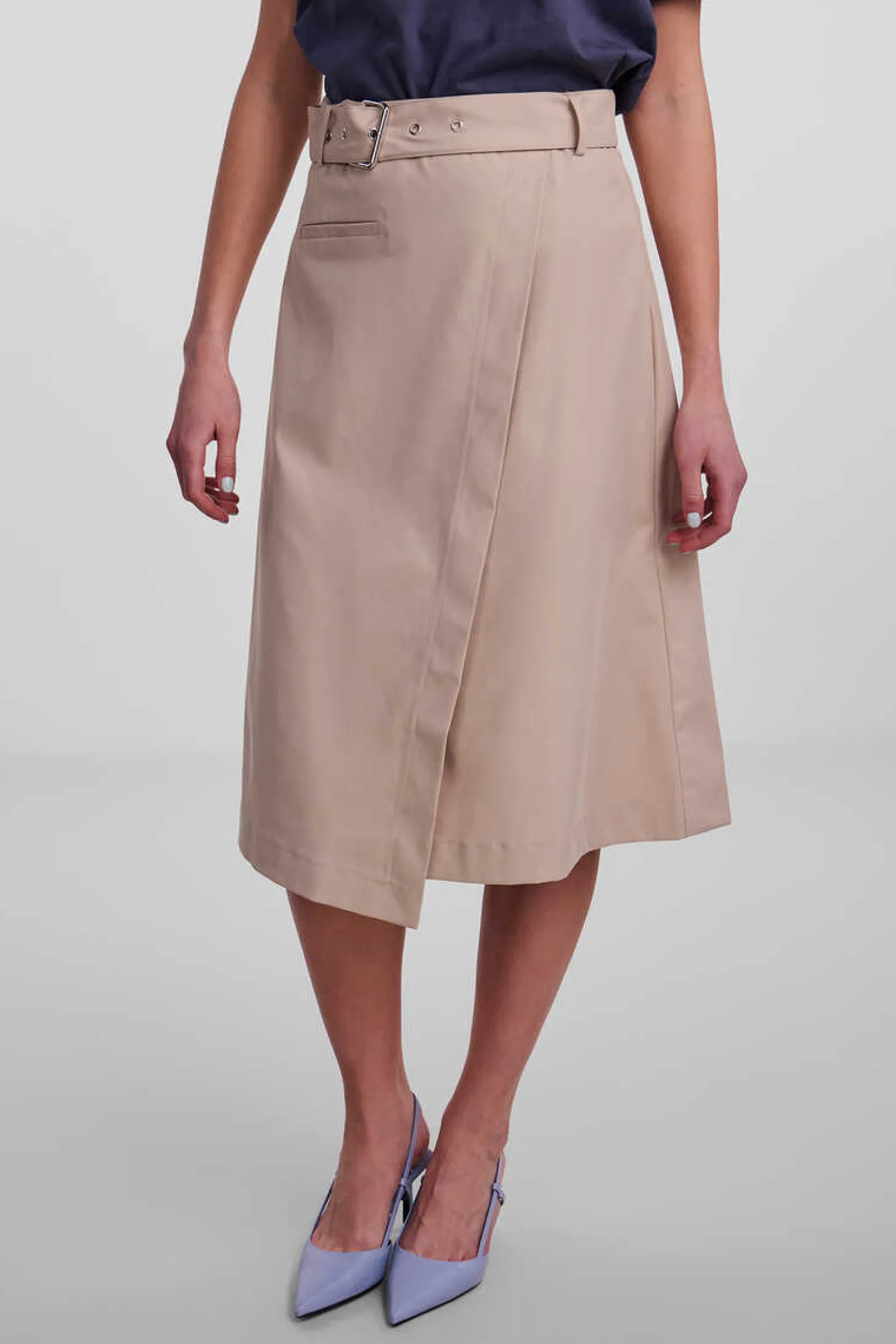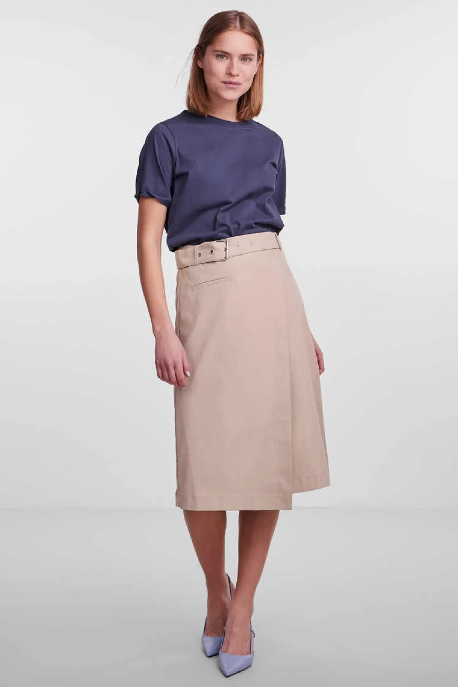 Saia Midi Com Cinto Incorporado E Bolso Falso.
