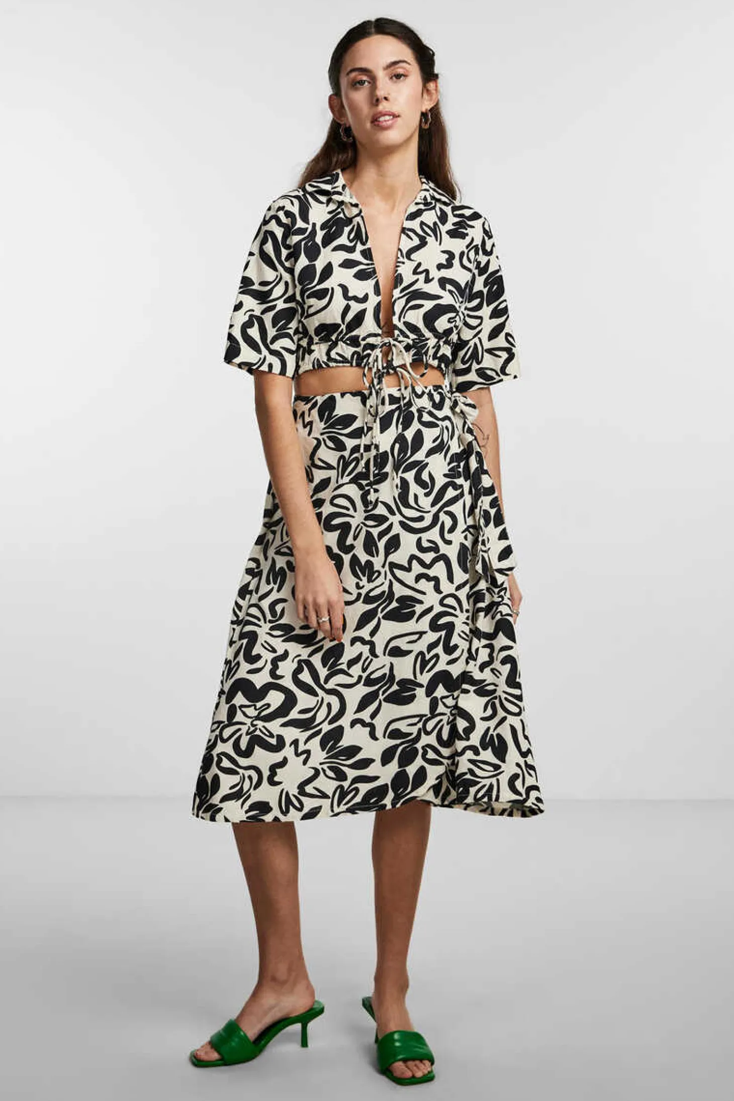 Saia Midi Com Estampado Floral. Fecho Em Forma De Laco.