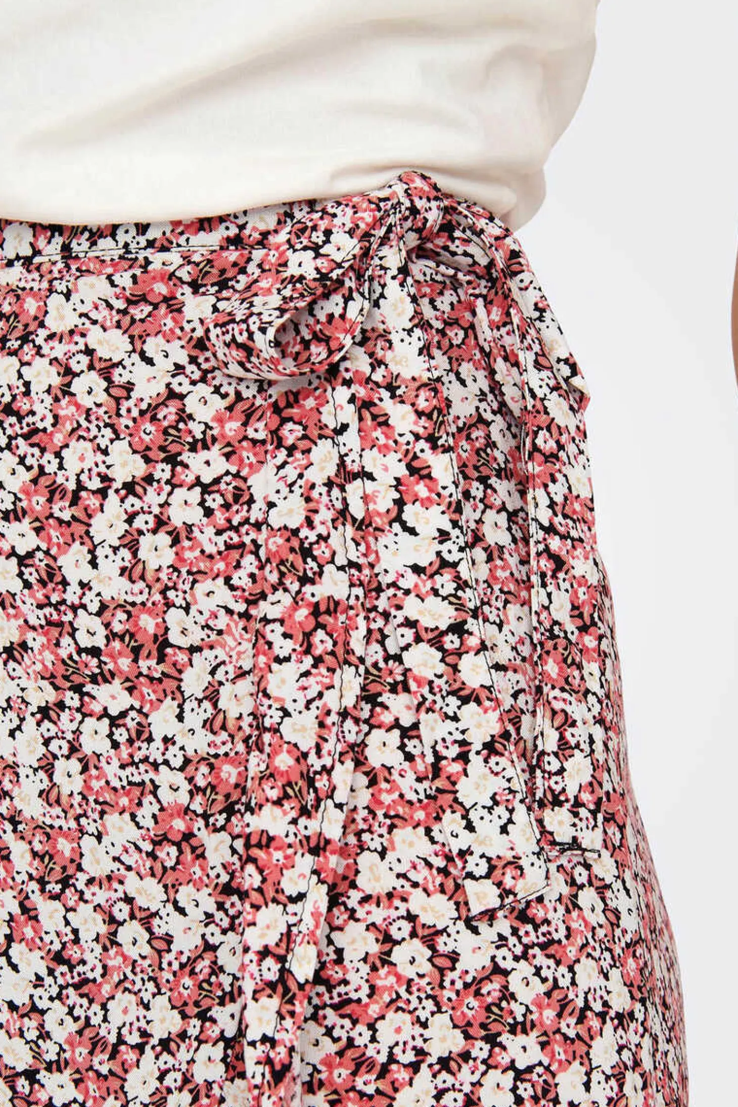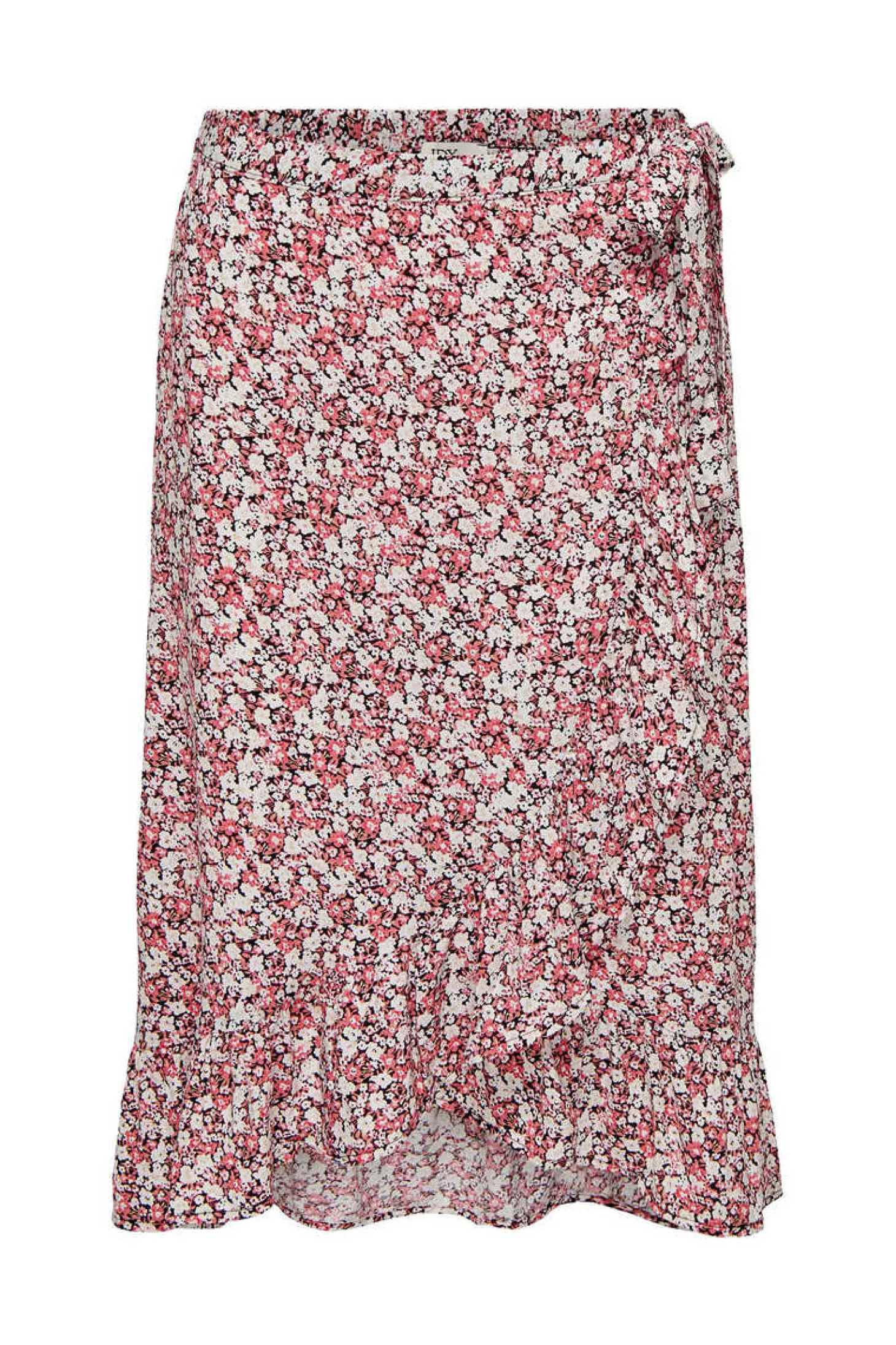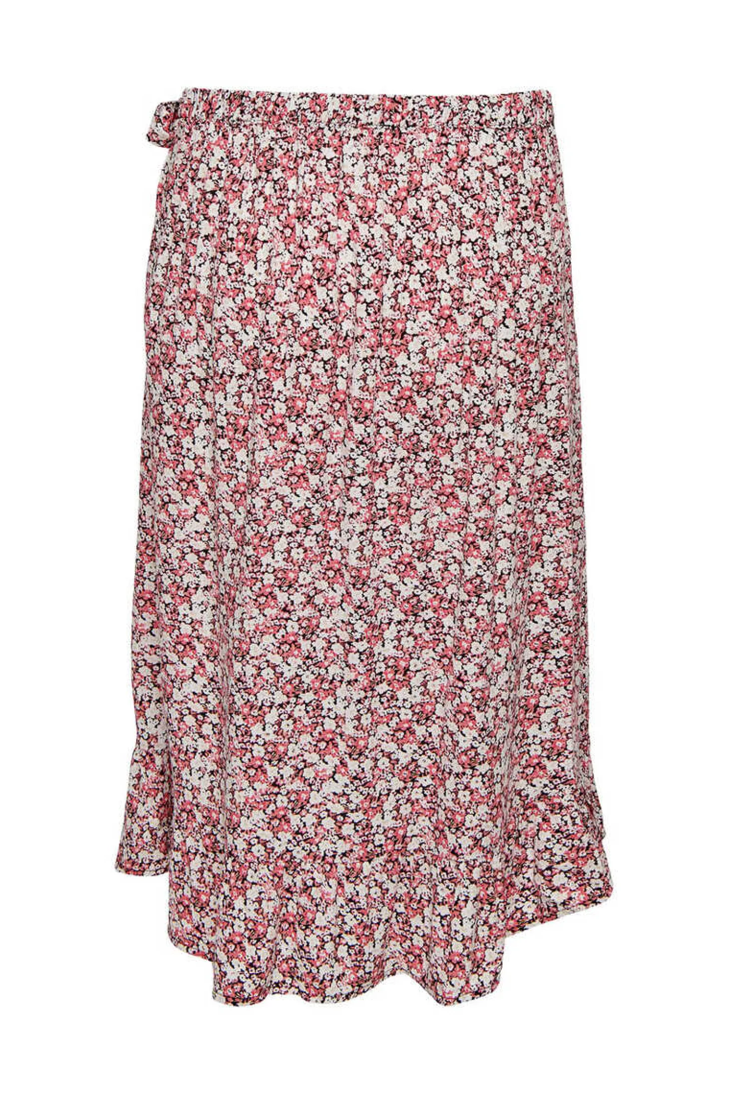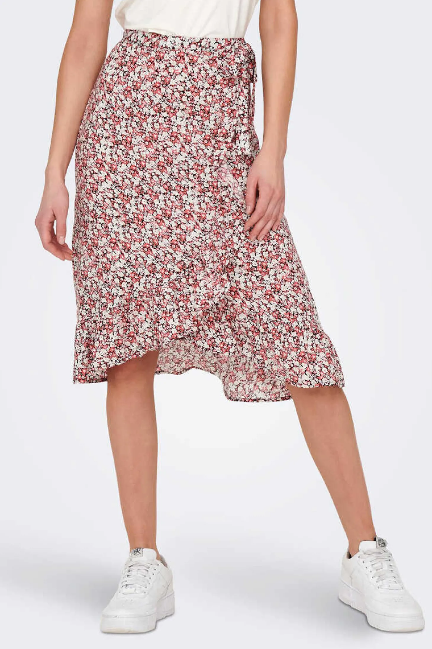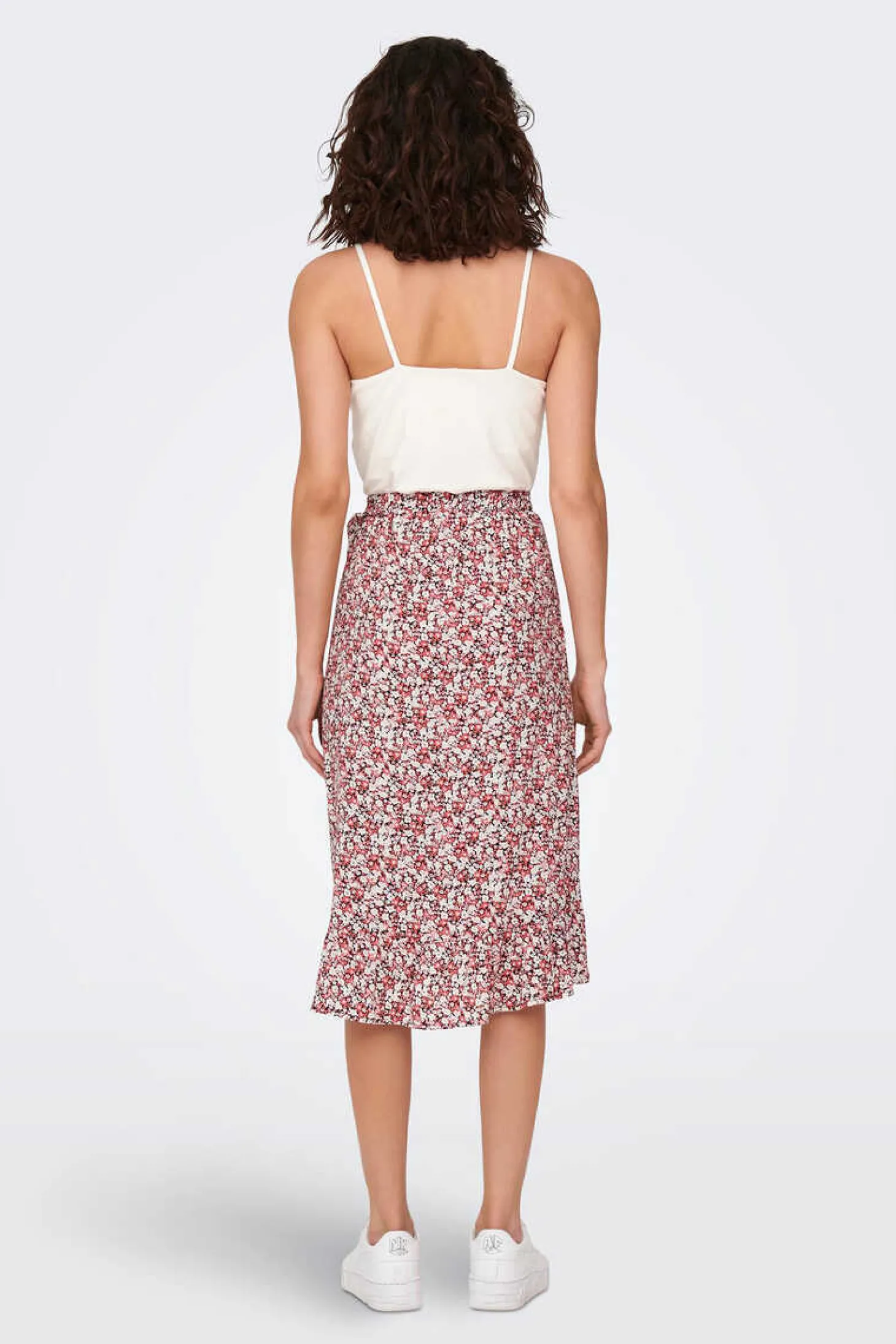 Saia Midi Estampada Cruzada Com Laco. Detalhe De Folhos.