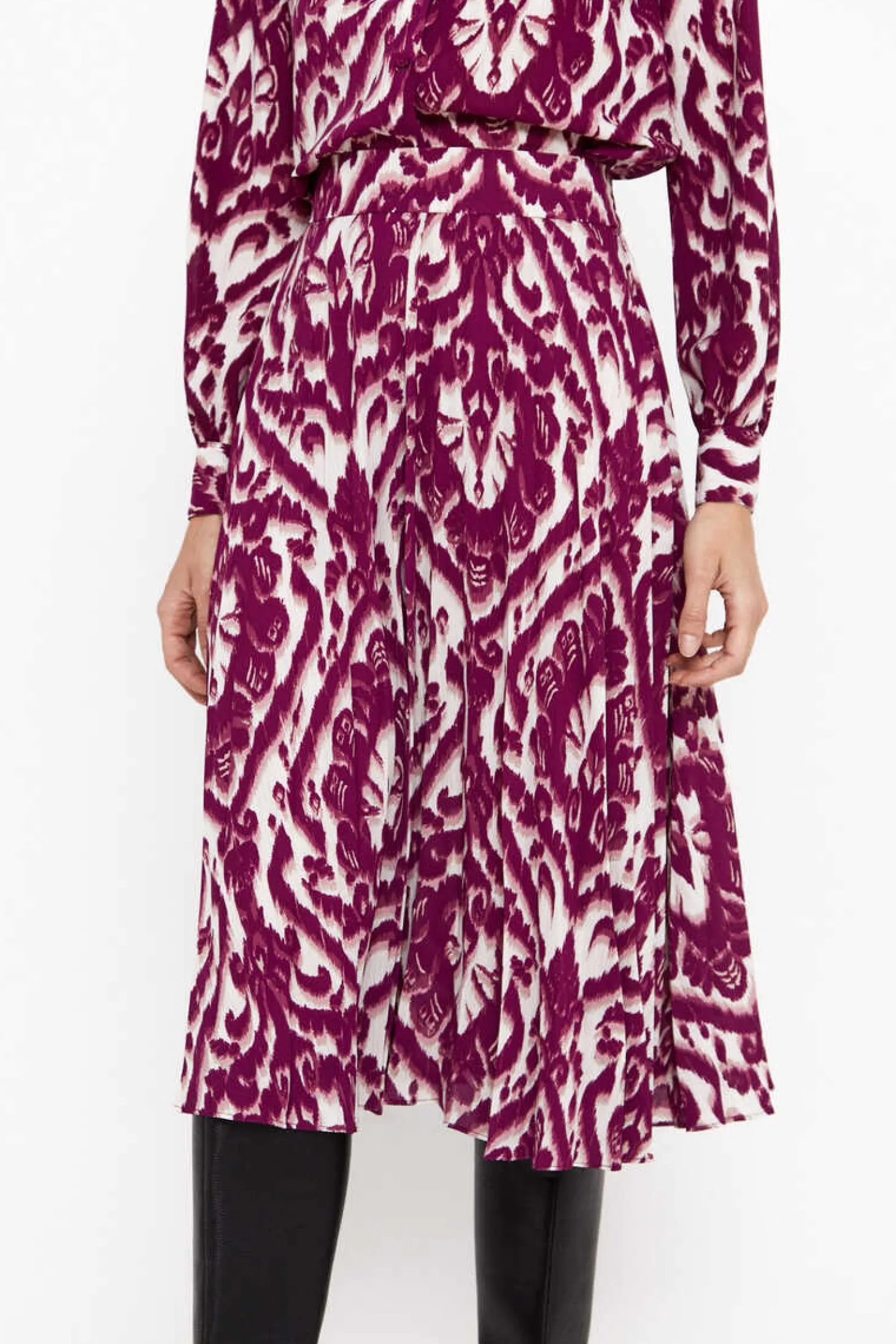 Saia Midi Estampada Plissada.