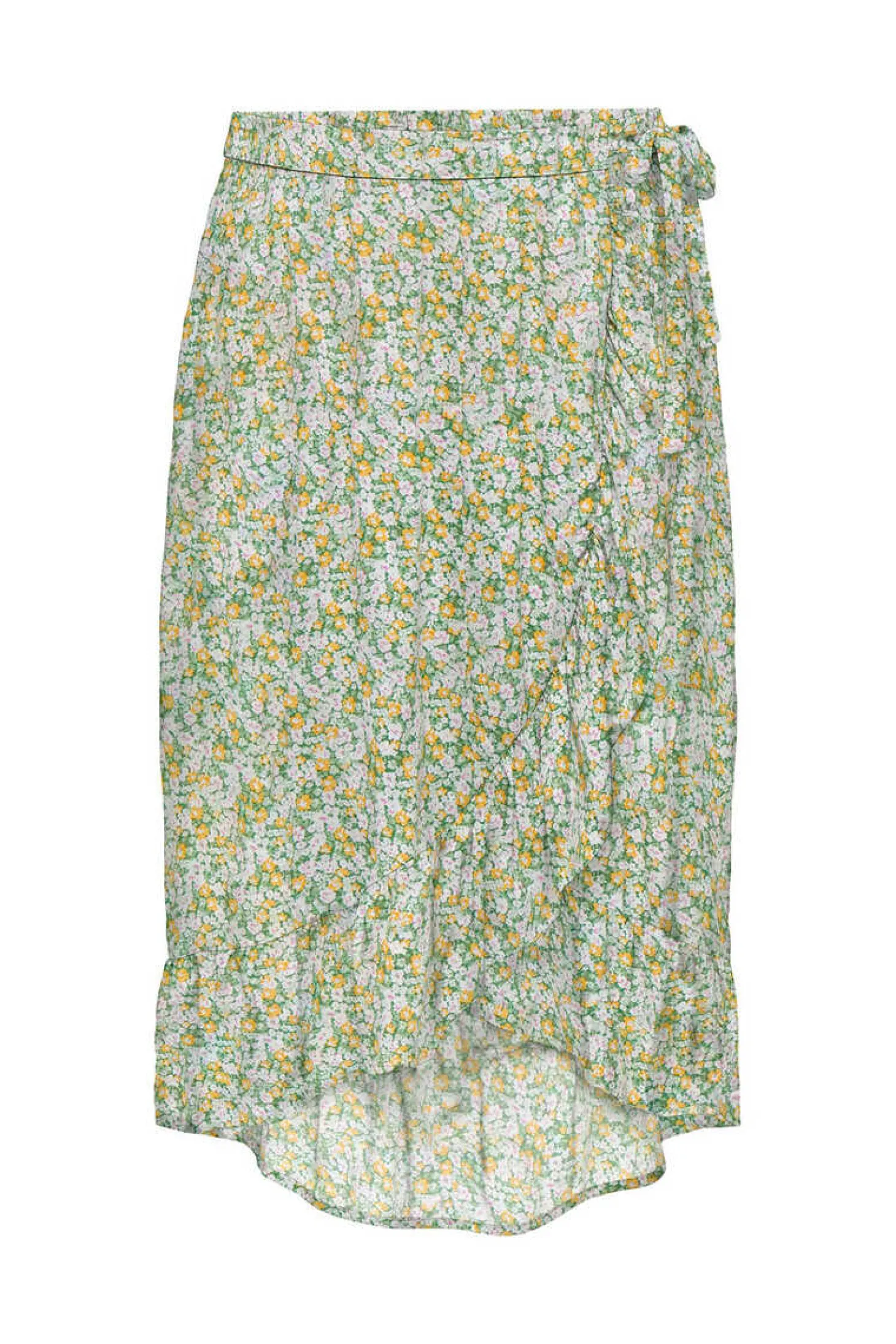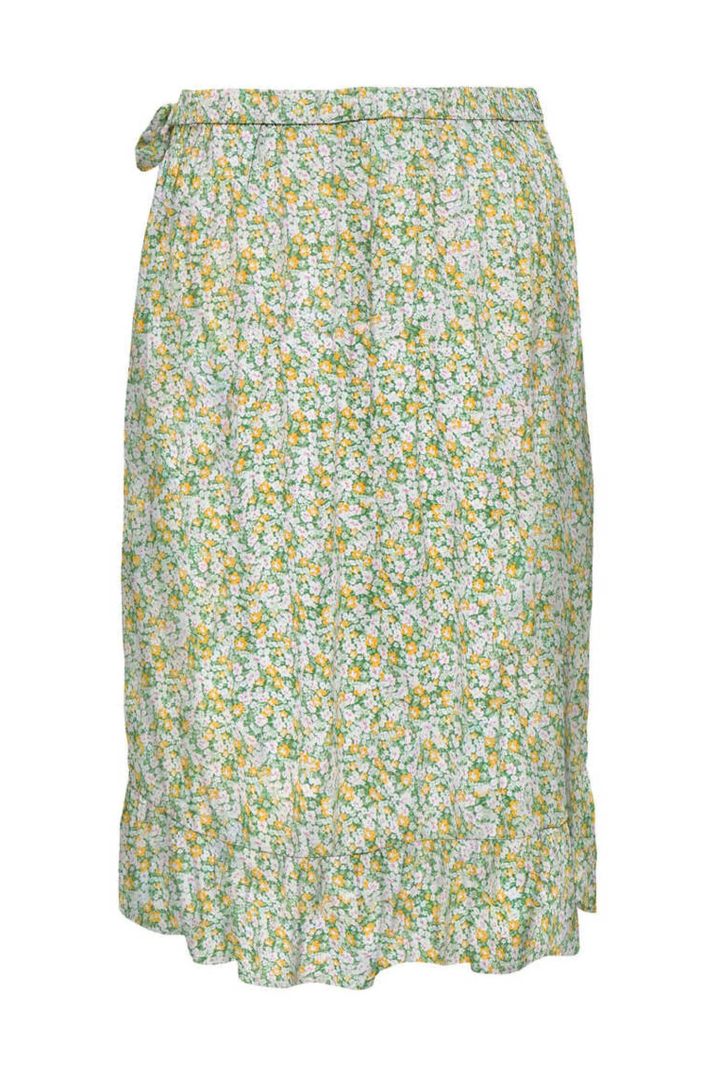 Saia Midi Estampada Cruzada Com Laco. Detalhe De Folhos.