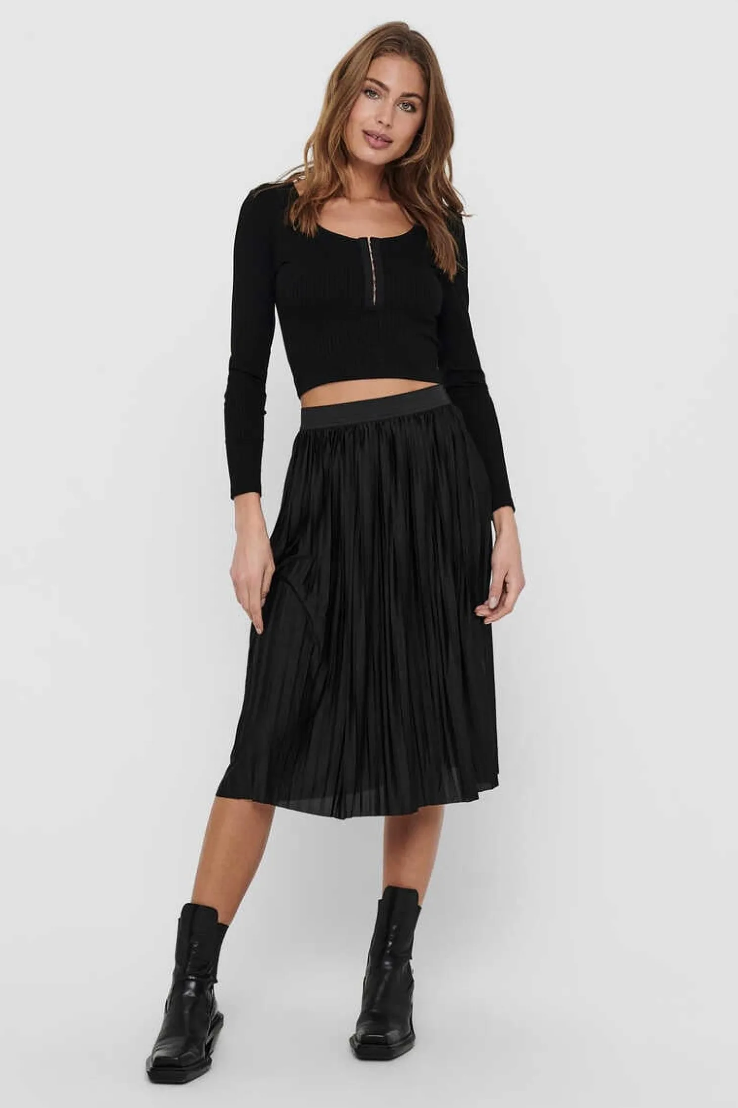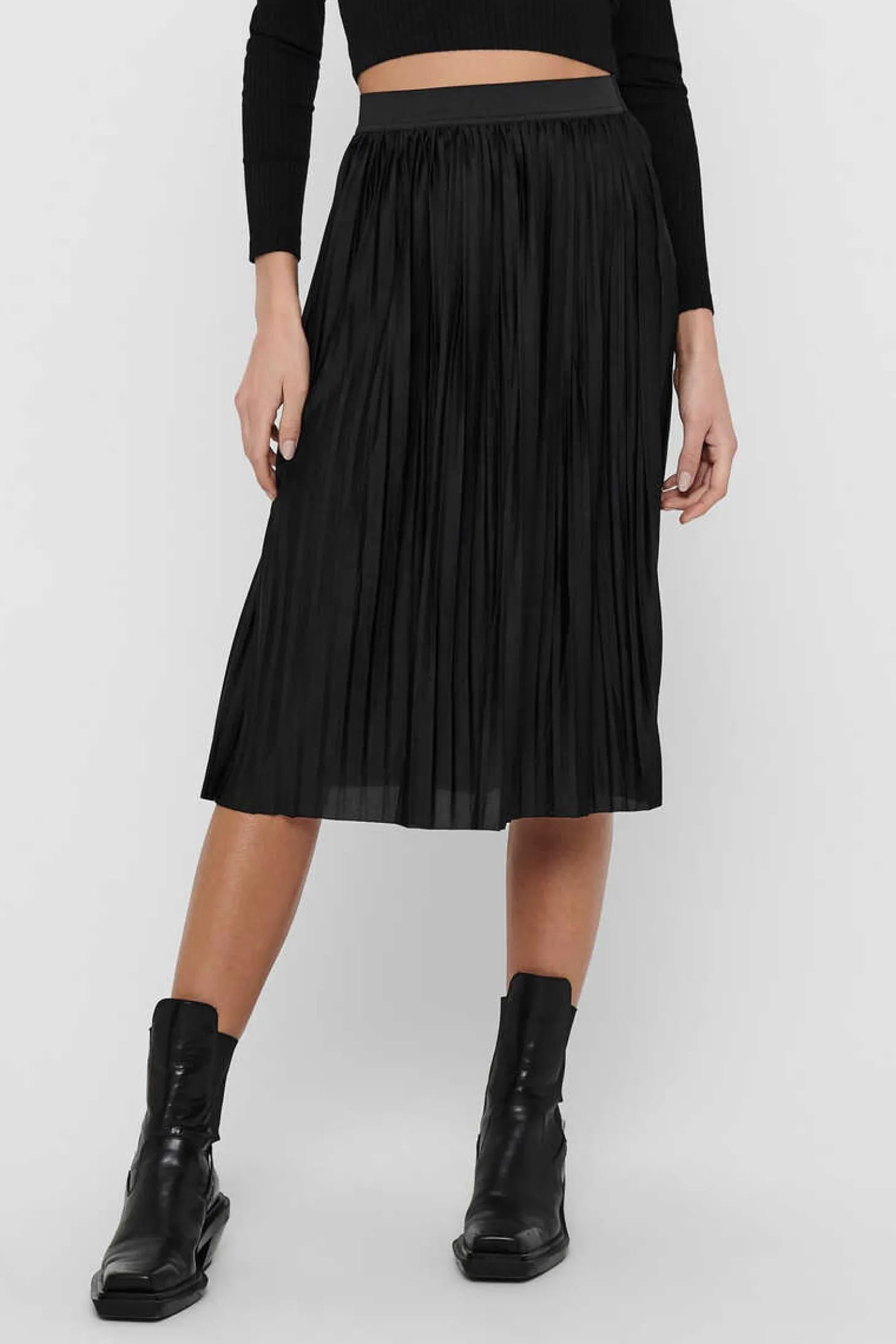 Saia Midi Plissada Com Cintura Elastica.