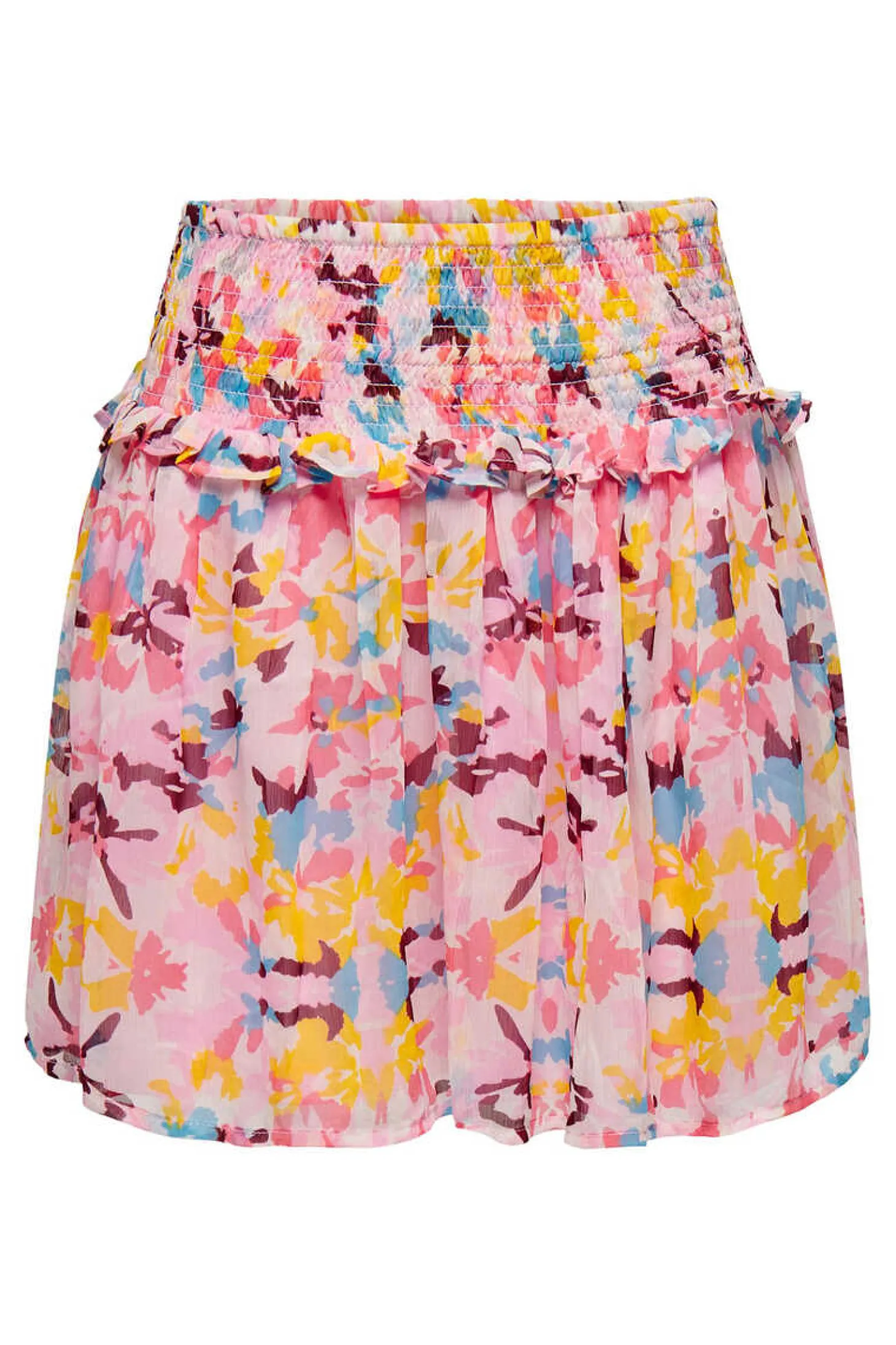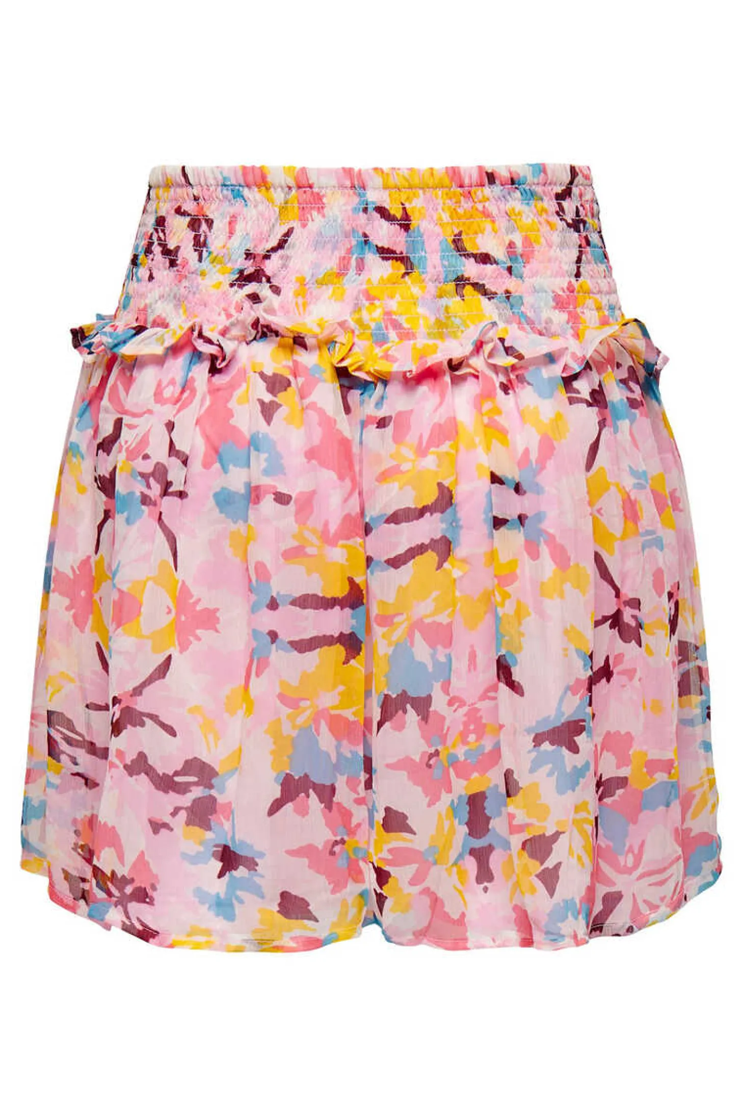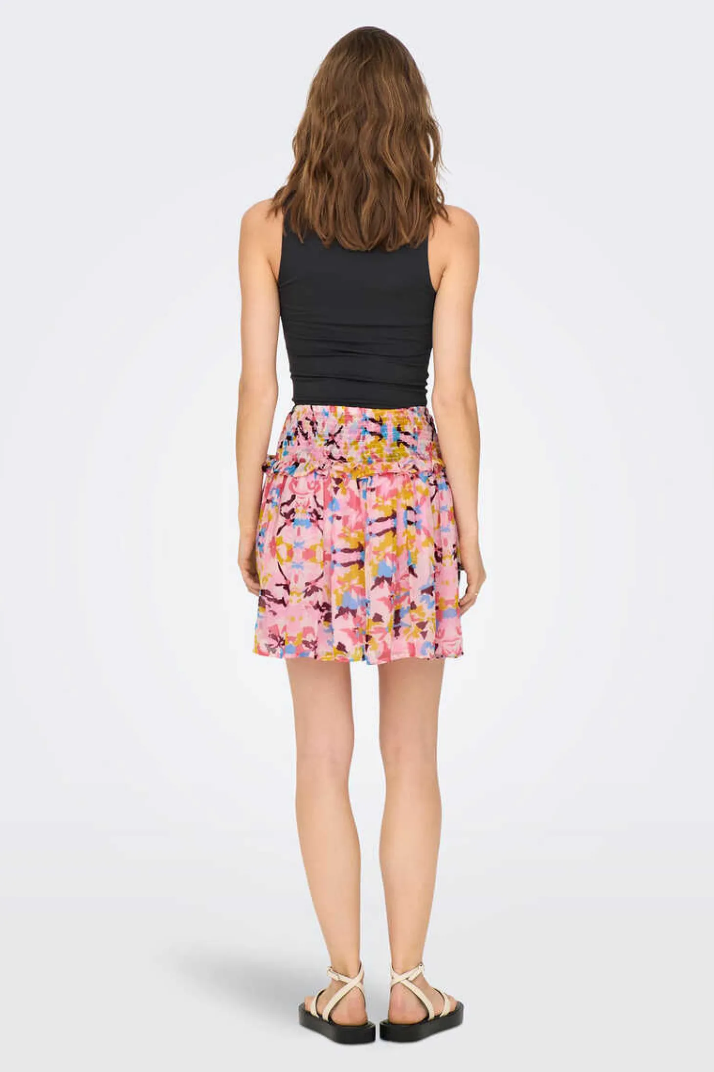 Saia Curta Com Cintura Elastica De Favo De Mel E Detalhe De Folho Com Forro.