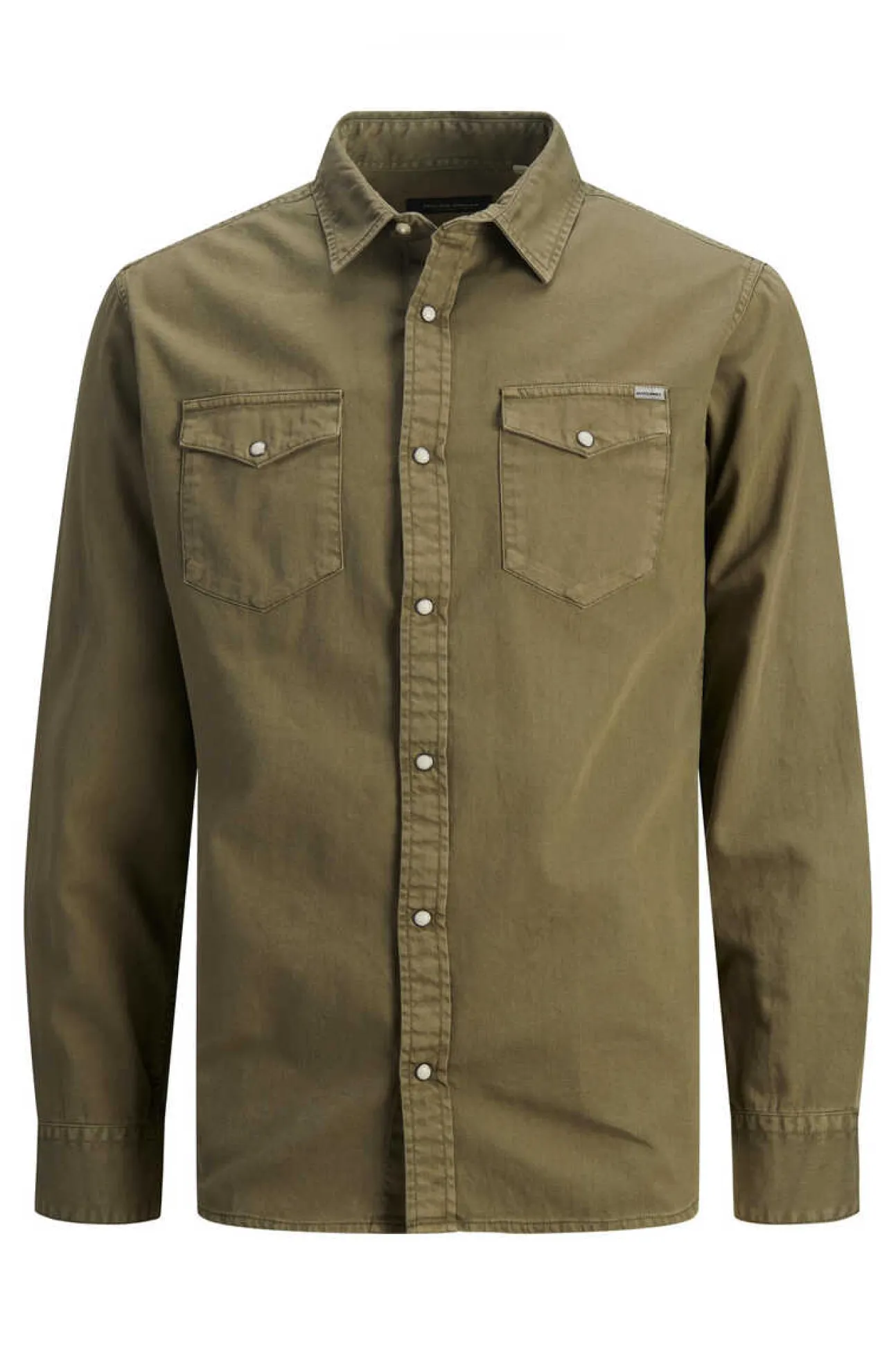 Sobrecamisa De Ganga De Manga Comprida, Bolsos No Peito E Fecho De Botoes.
