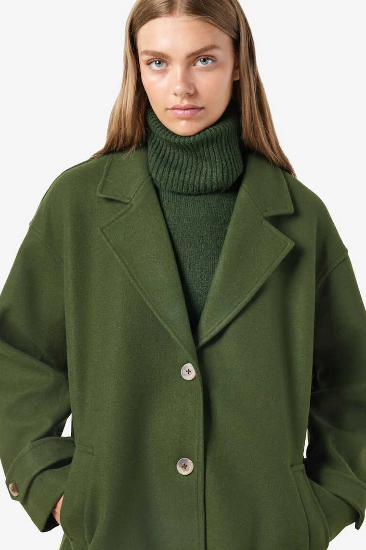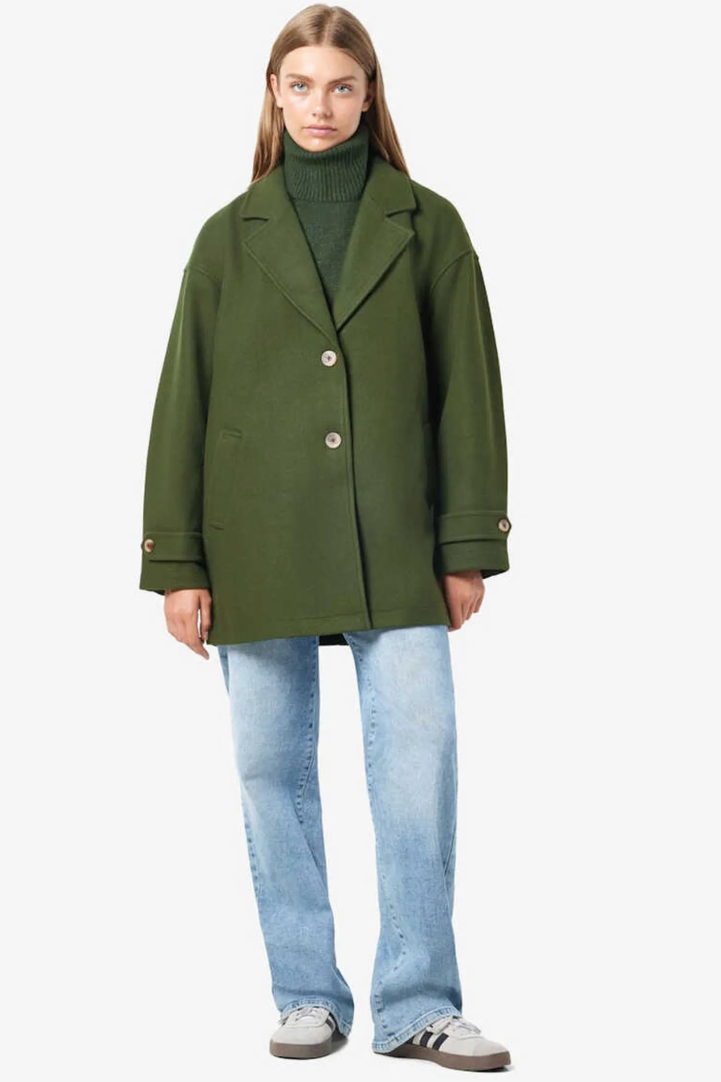 Sobretudo Sem Forro De Fecho De Botoes Dianteiros, Bolsos Dianteiros, Manga Comprida E Gola De Lapelas.