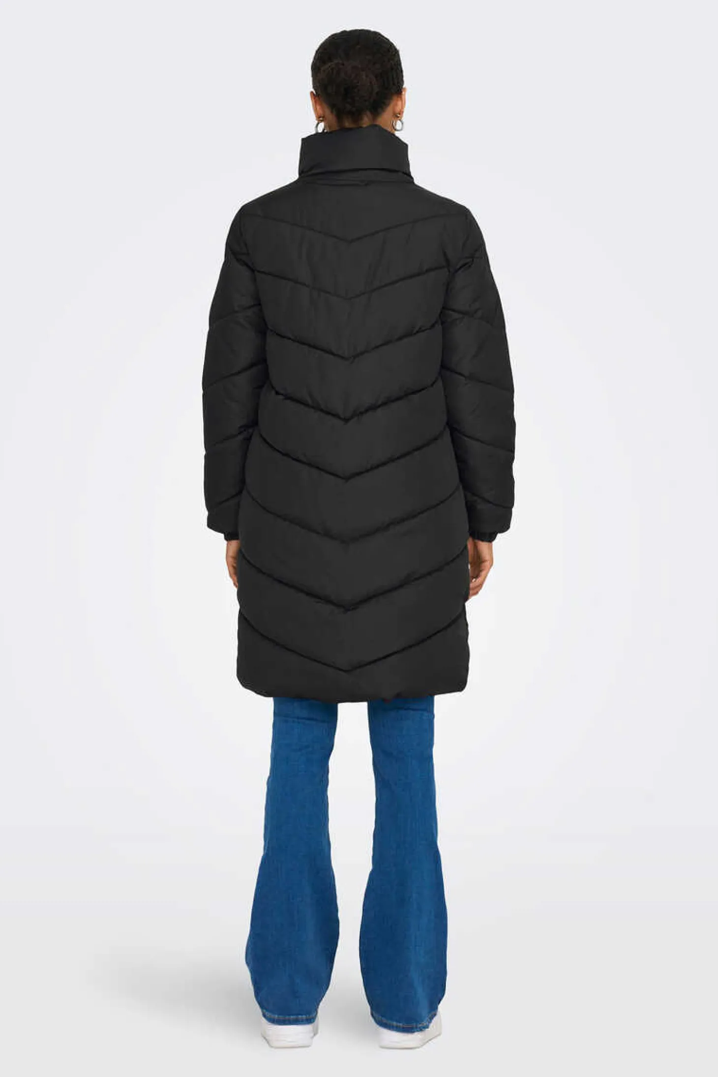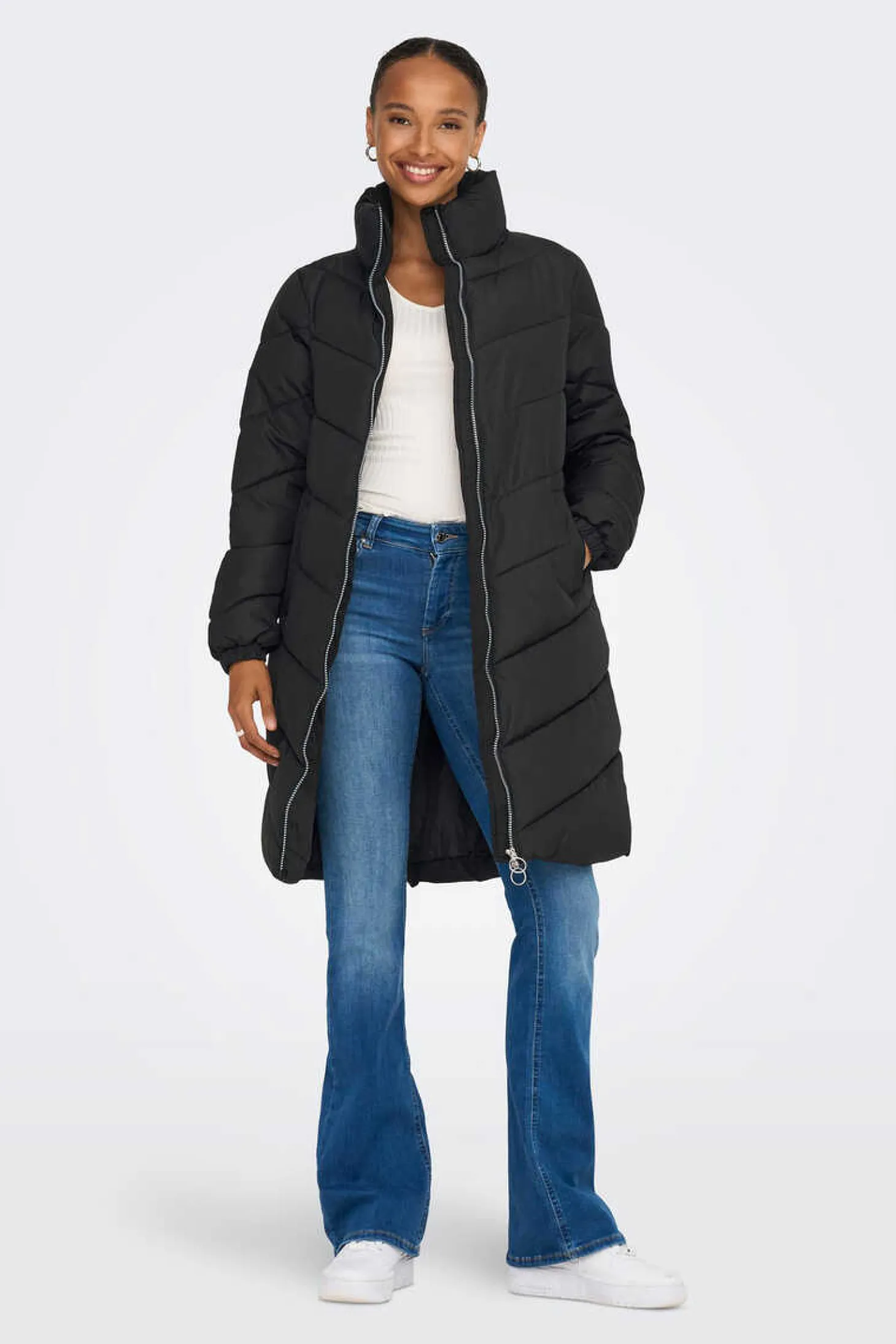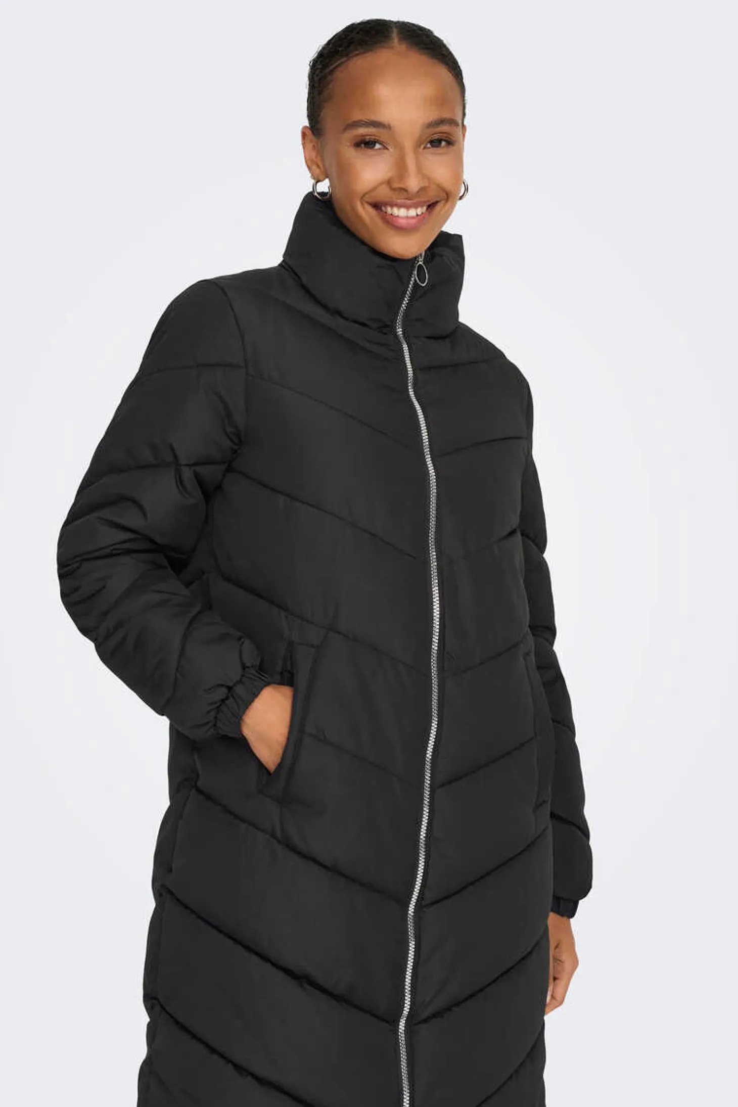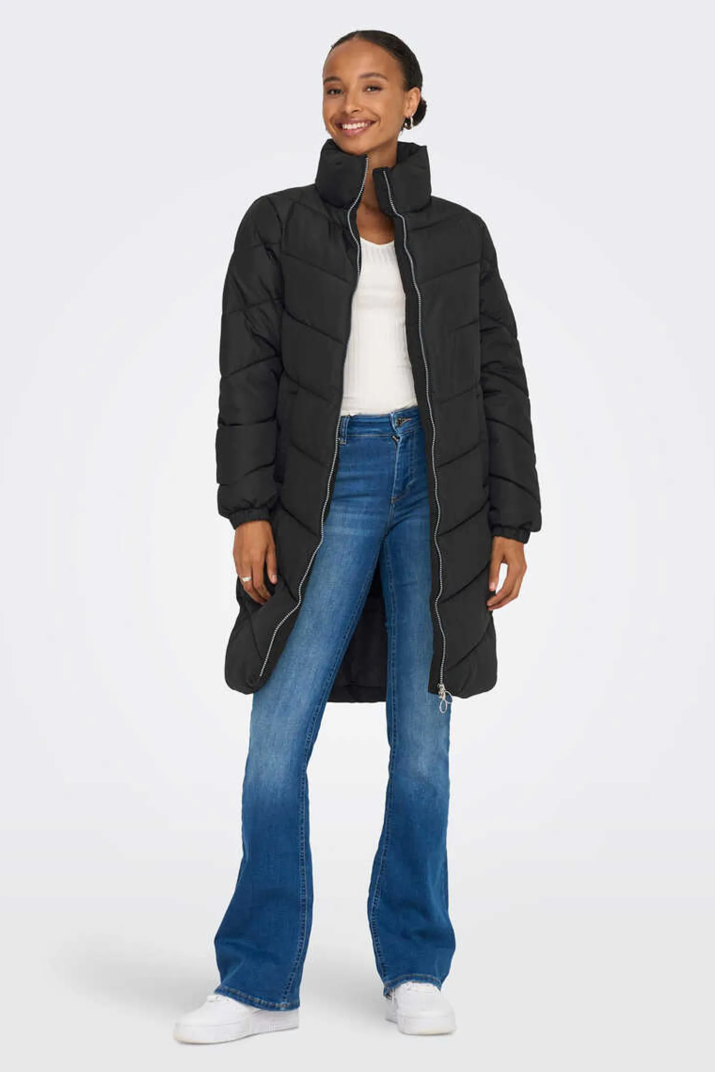 Sobretudo Comprido Acolchoado, Gola Alta, Mangas Compridas De Ombros Descaidos. Fecho-Eclair Completo Na Parte Dianteira. Forro De Poliester Para Conforto. Idea … L Para Os Dias Frios De Inverno.Ver Mais