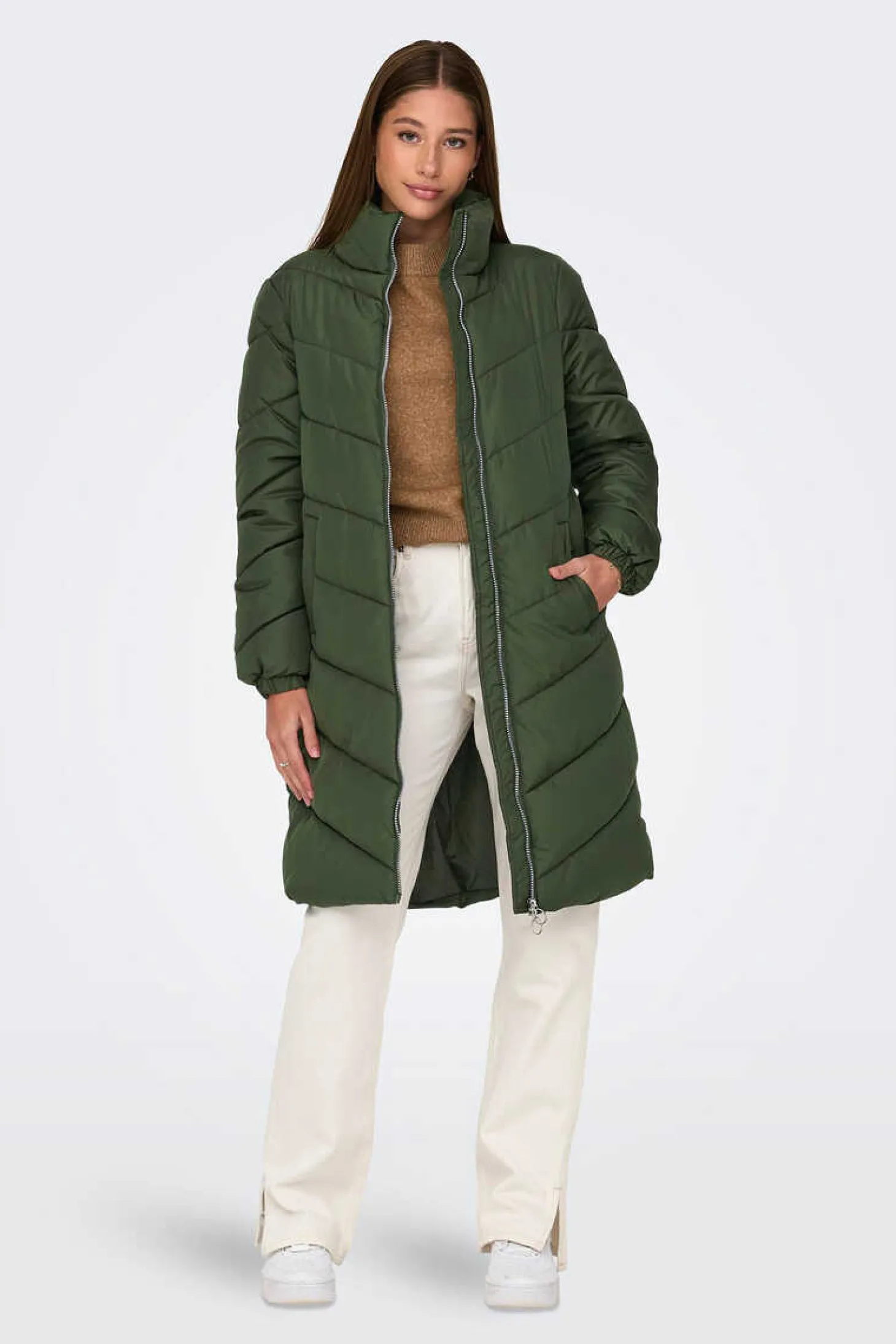 Sobretudo Comprido Acolchoado, Gola Alta, Mangas Compridas De Ombros Descaidos. Fecho-Eclair Completo Na Parte Dianteira. Forro De Poliester Para Conforto. Idea … L Para Os Dias Frios De Inverno.Ver Mais