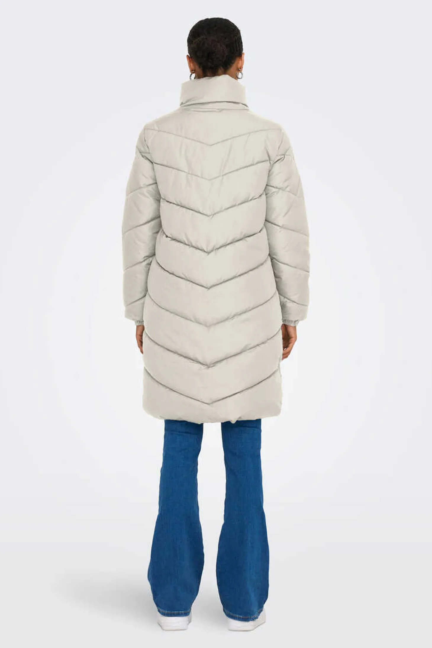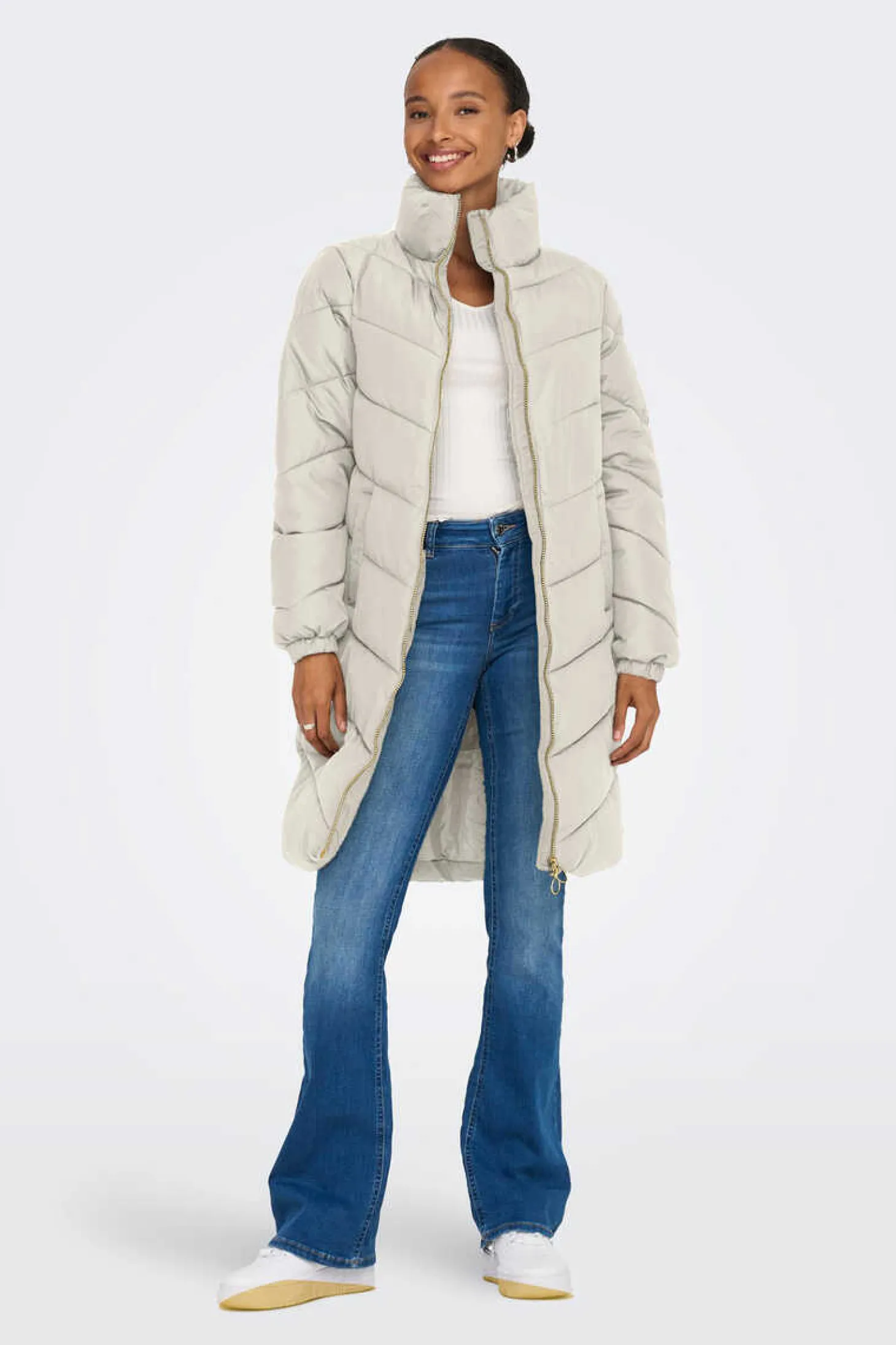 Sobretudo Comprido Acolchoado, Gola Alta, Mangas Compridas De Ombros Descaidos. Fecho-Eclair Completo Na Parte Dianteira. Forro De Poliester Para Conforto. Idea … L Para Os Dias Frios De Inverno.Ver Mais