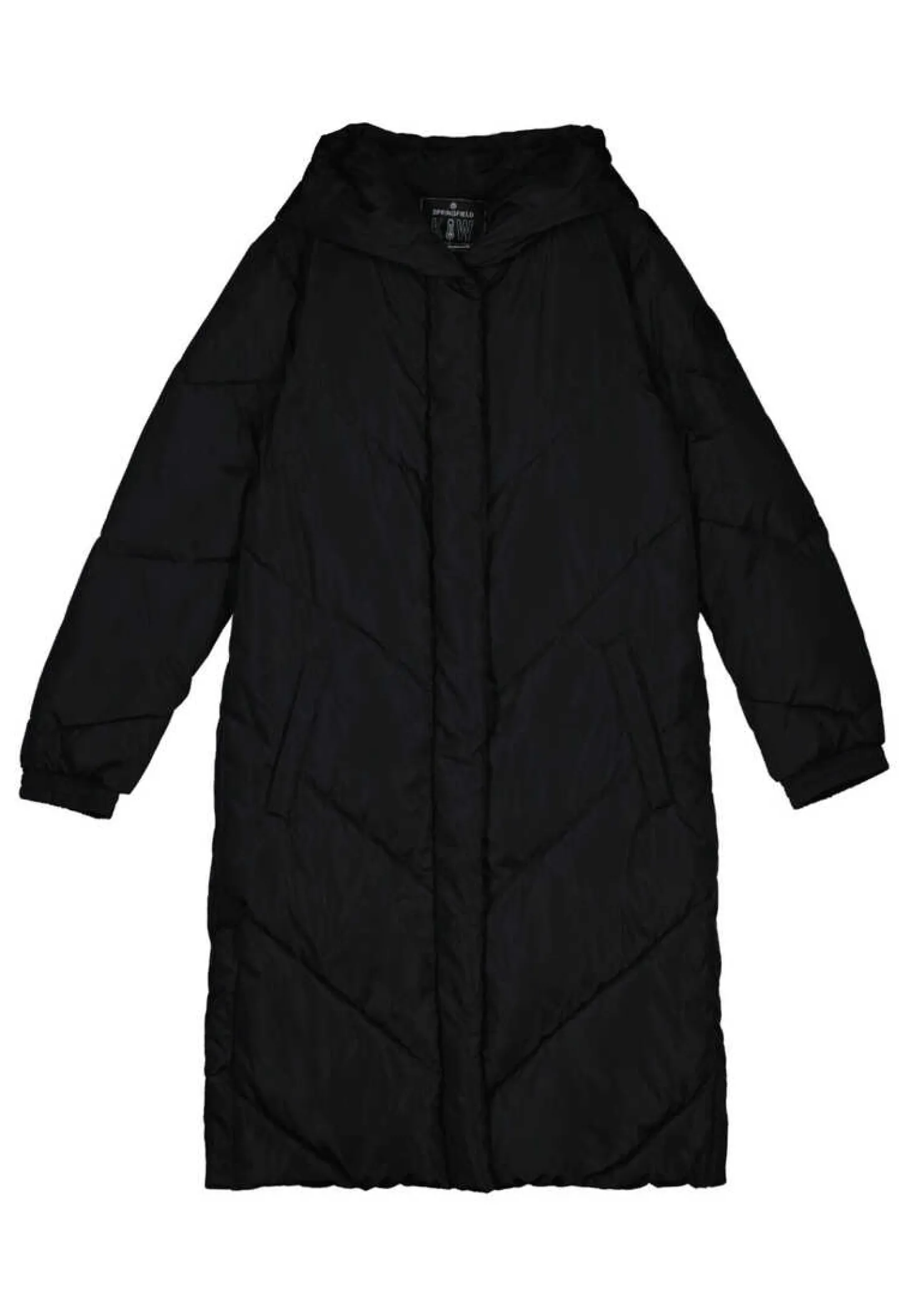 Sobretudo Comprido Acolchoado Com Capuz, Com Bolsos Laterais, Com Fecho-Eclair Na Frente Com Carcela, Com Aberturas Laterais Com Botoes E Tiras Interiores Para … Pendurar As Costas. Com Enchimento De Penas E Repelente A Agua.Ver Mais