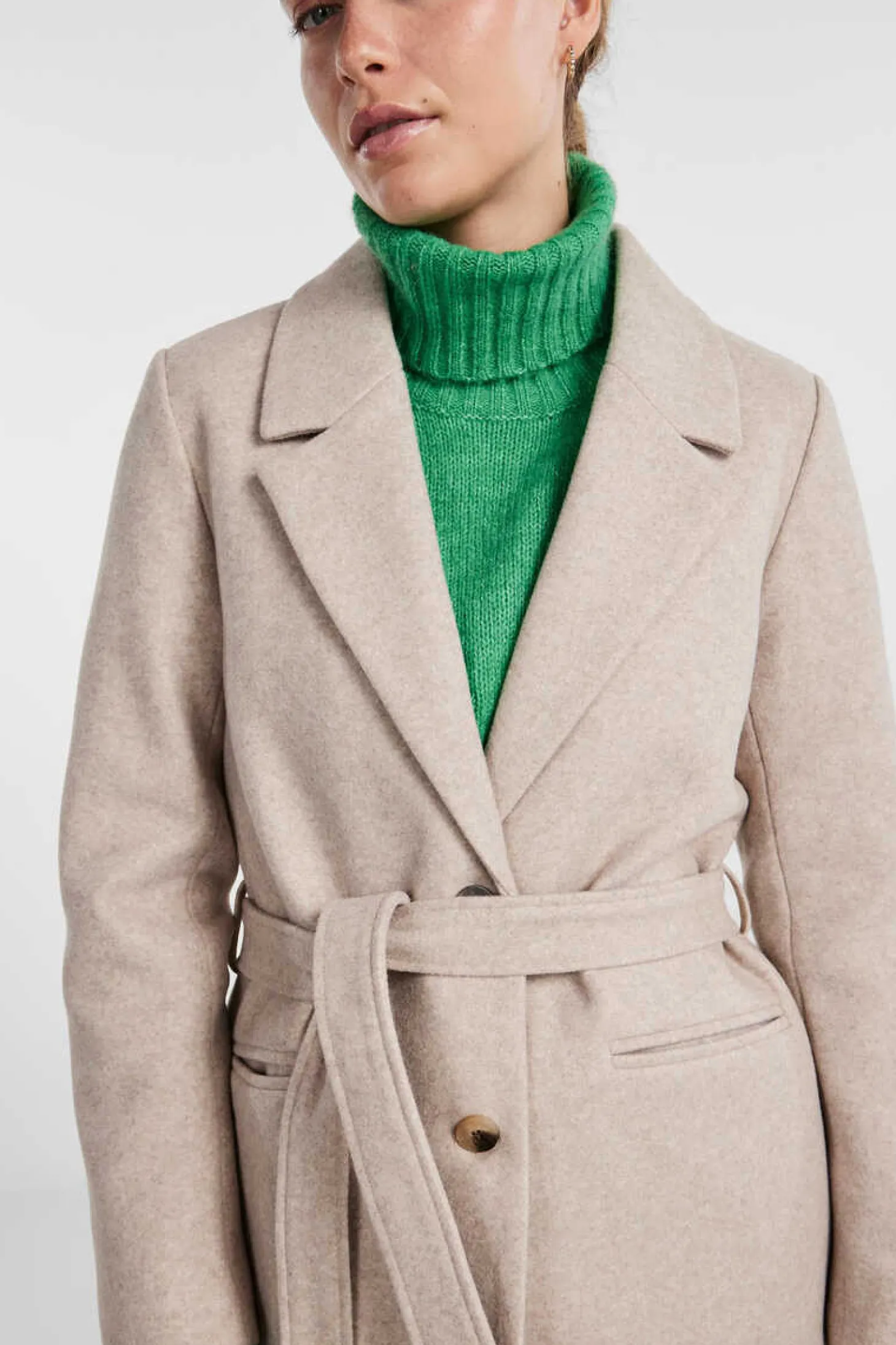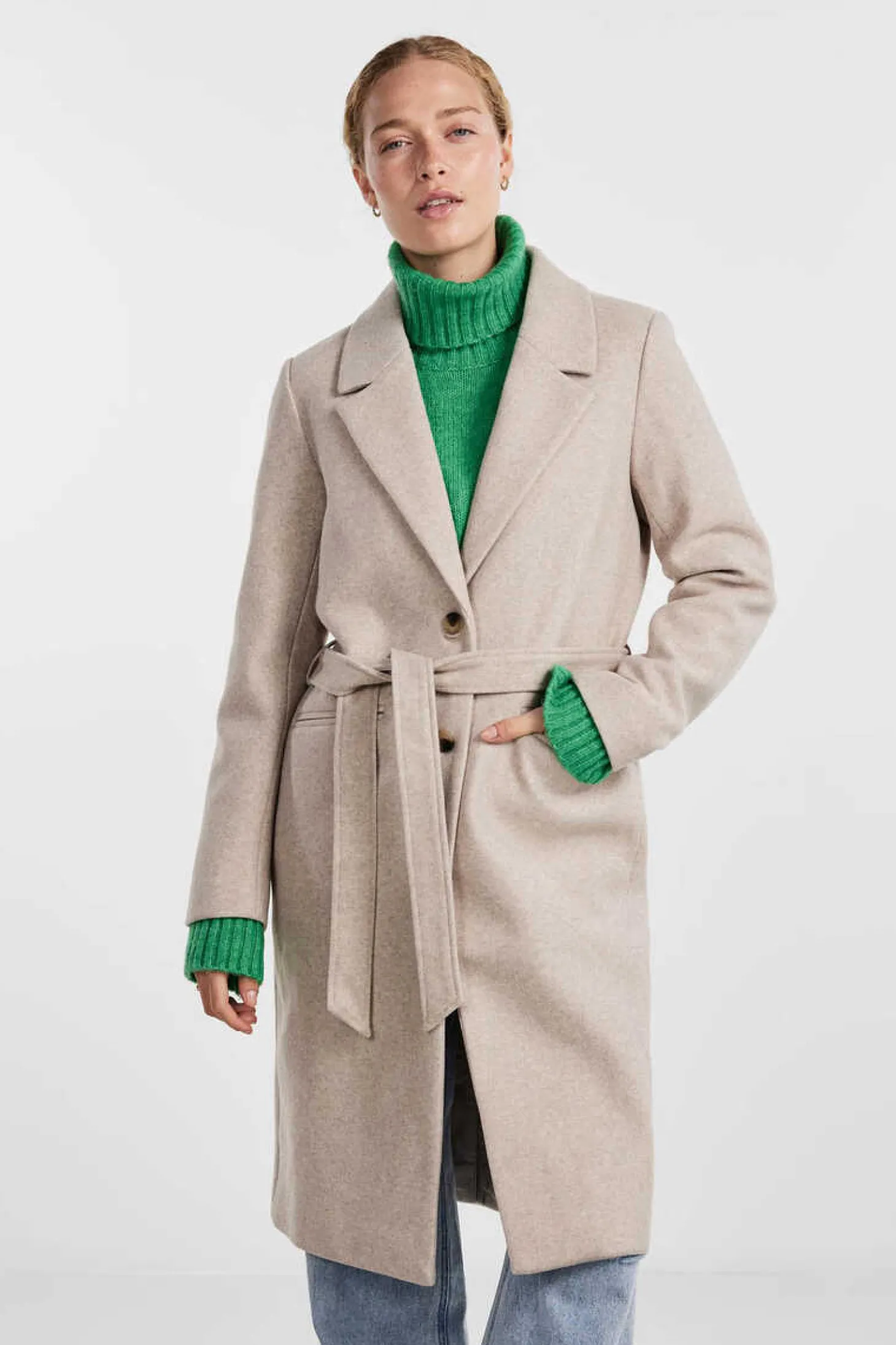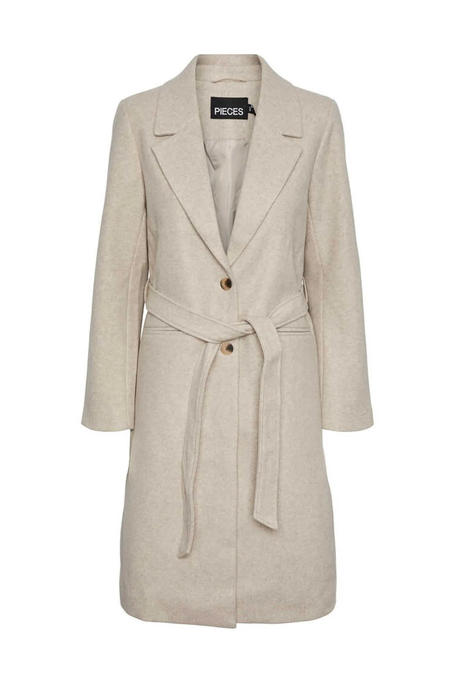 Sobretudo Comprido Reto, Gola De Lapela, Bolsos Laterais, Fecho Com Botoes E Cinto Do Mesmo Tecido Para Ajustar.