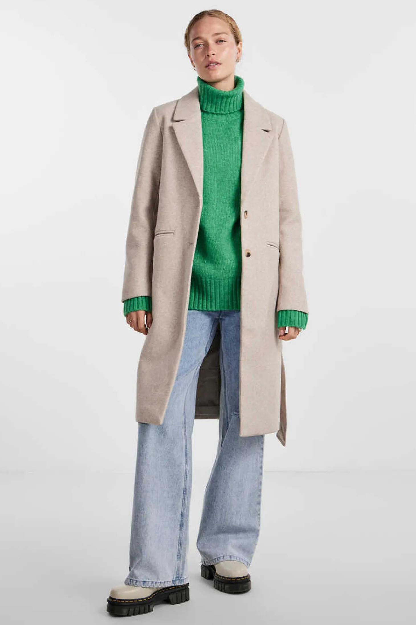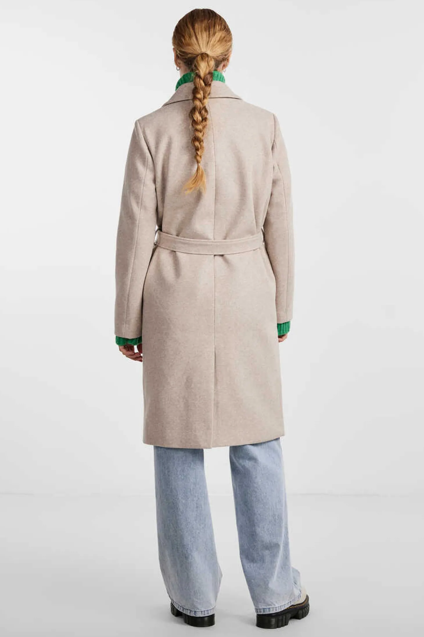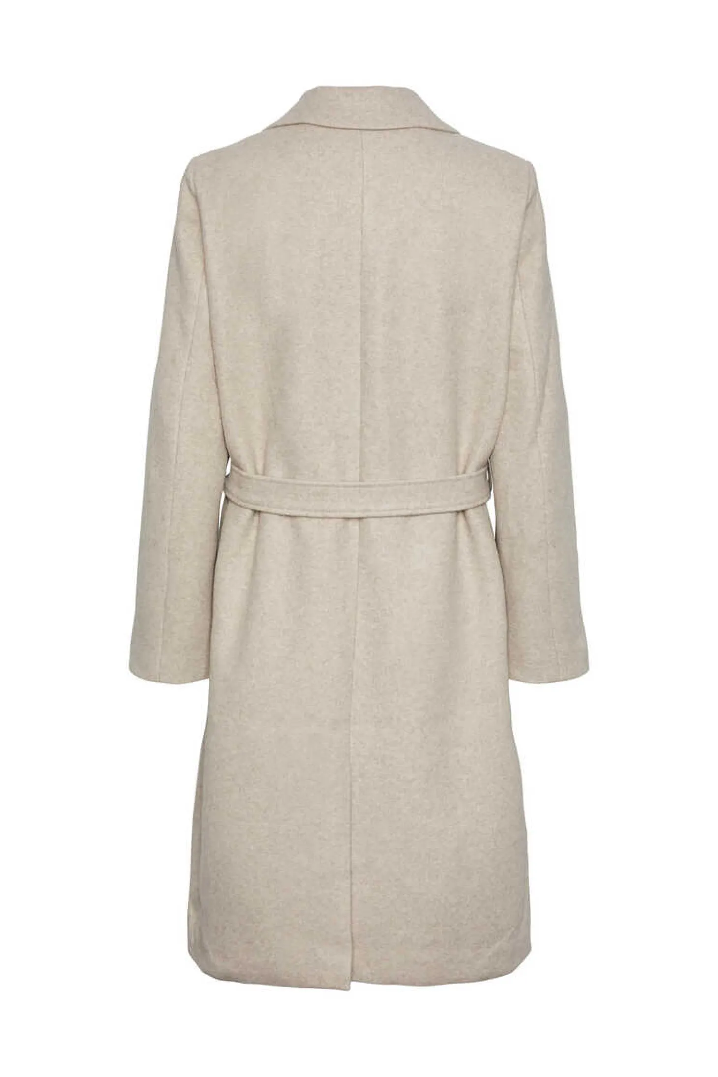 Sobretudo Comprido Reto, Gola De Lapela, Bolsos Laterais, Fecho Com Botoes E Cinto Do Mesmo Tecido Para Ajustar.