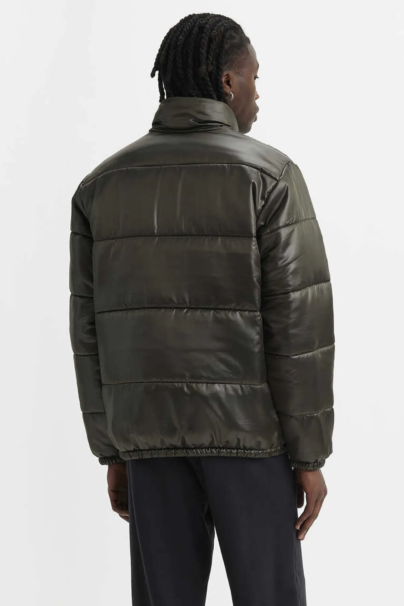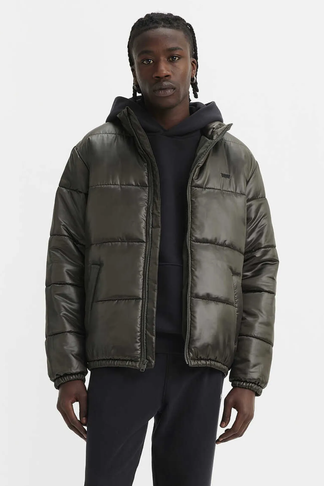 Sobretudo Curto Acolchoado Preto Com Capuz. Tem Dois Bolsos Laterais, Logotipo Da Levi’S® No Peito E Fecho-Eclair Frontal.