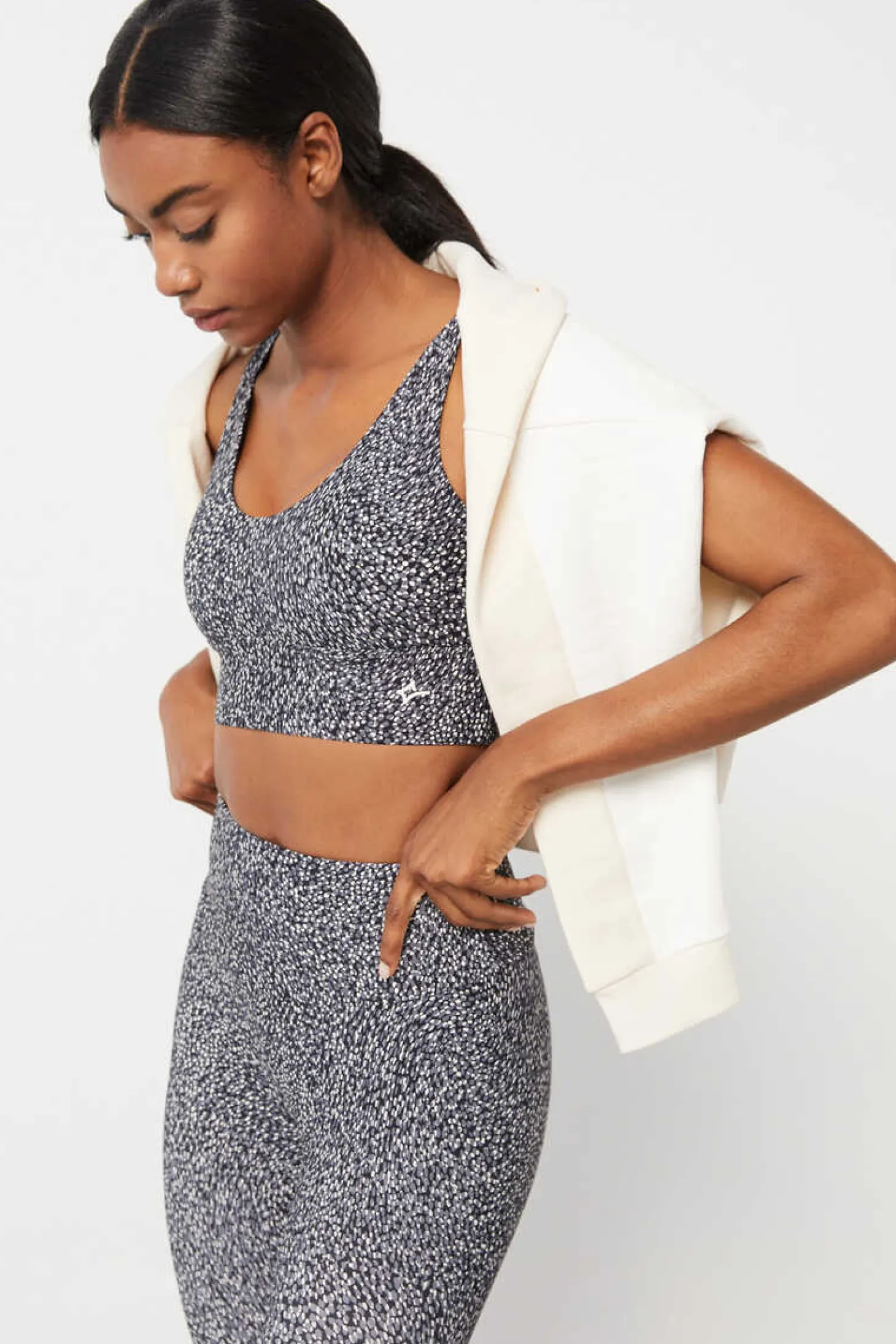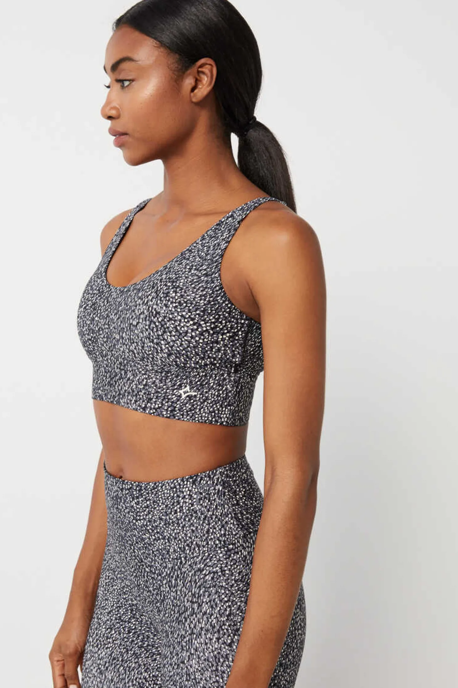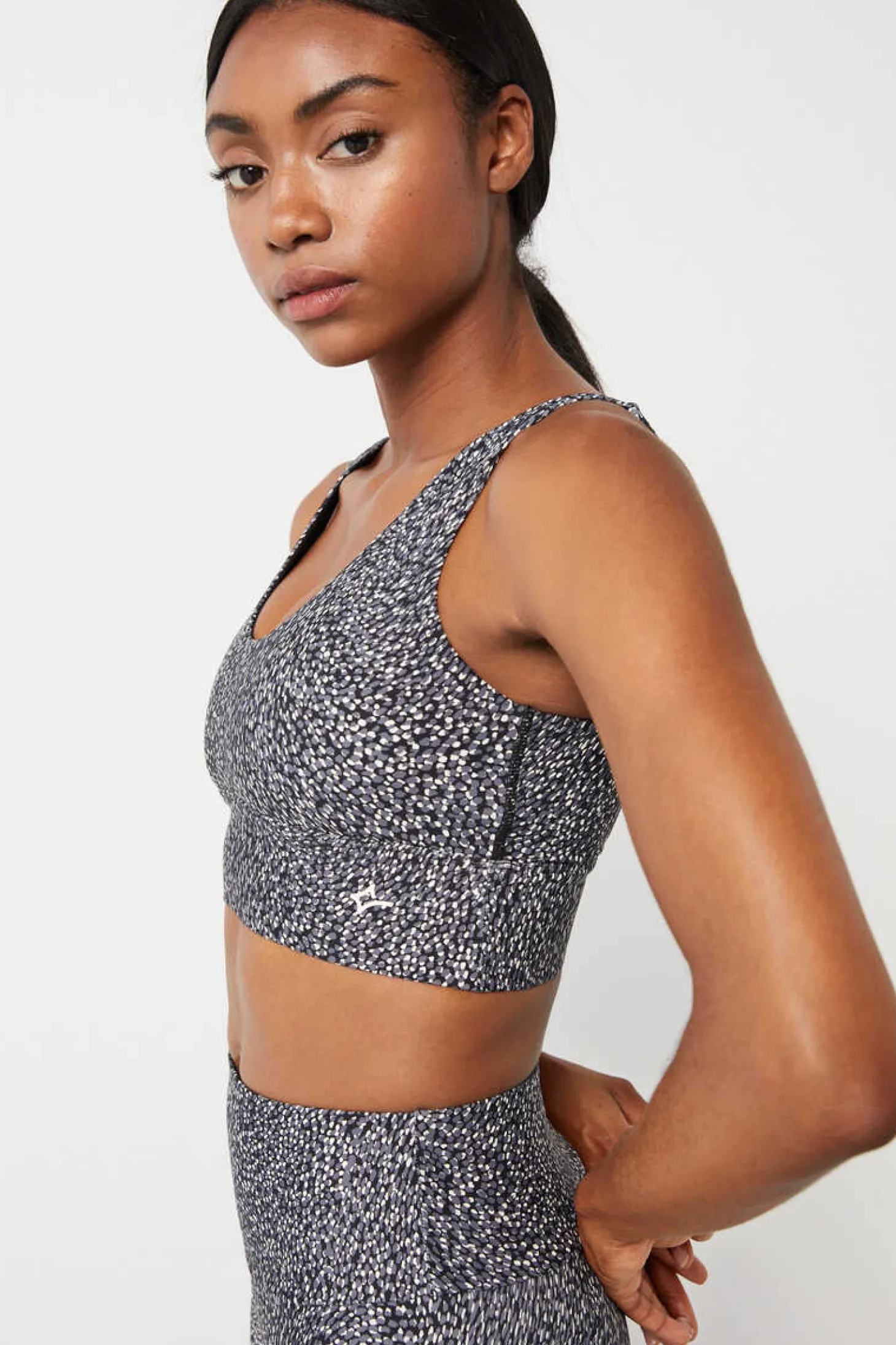 – Soutien Desportivo 4D Stretch Com Decote Redondo, Costas Em Bico E Um Original Estampado De Mini Mancha. Com Copas Extraiveis.