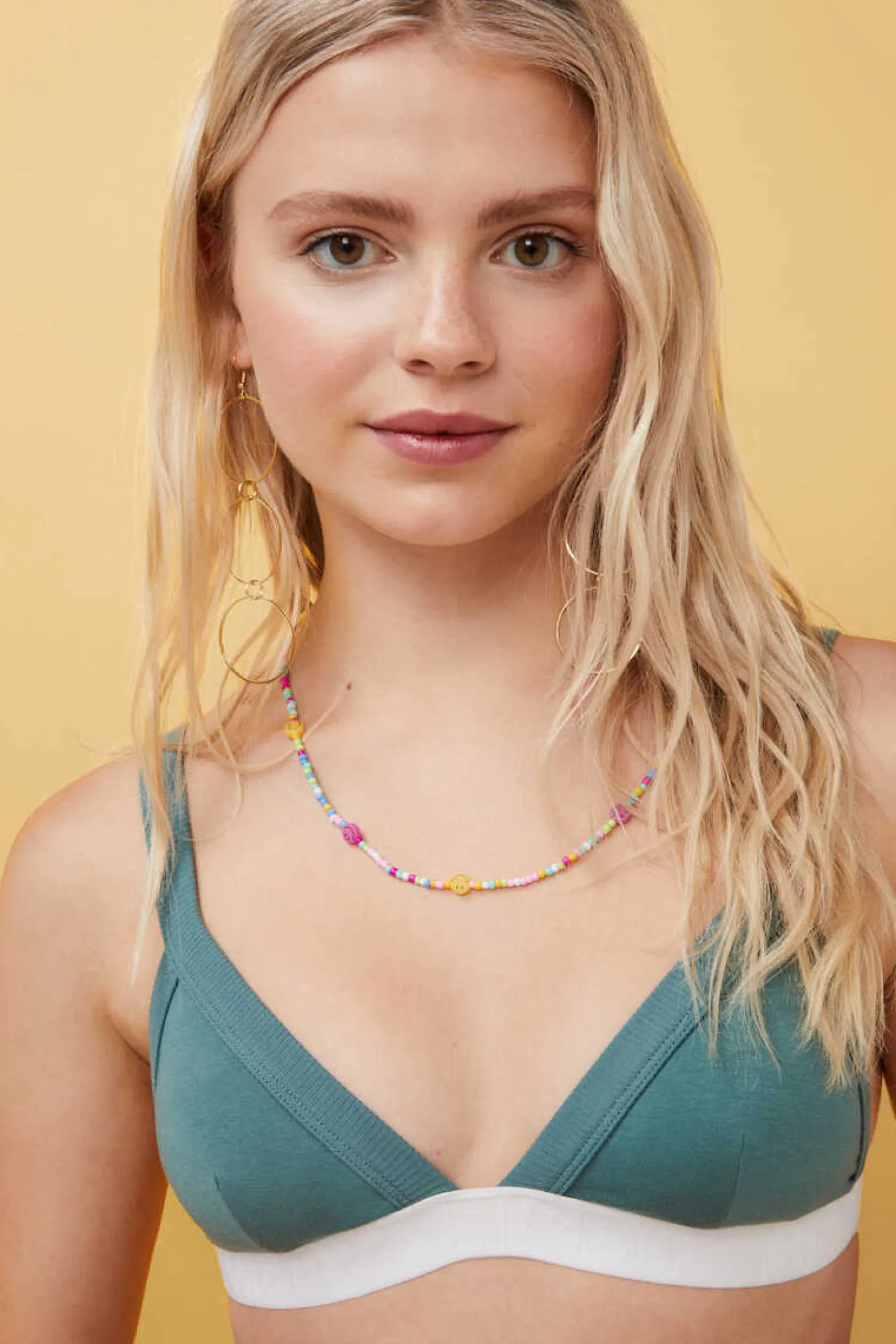 Soutien De Algodao Tipo Top Triangular, Com Comodas Copas De Por E Tirar. De Cor Verde-Escura, Com Detalhe De Elastico Sob O Peito, E Alcas Em Tecido Rib (De Ca … Nelado).