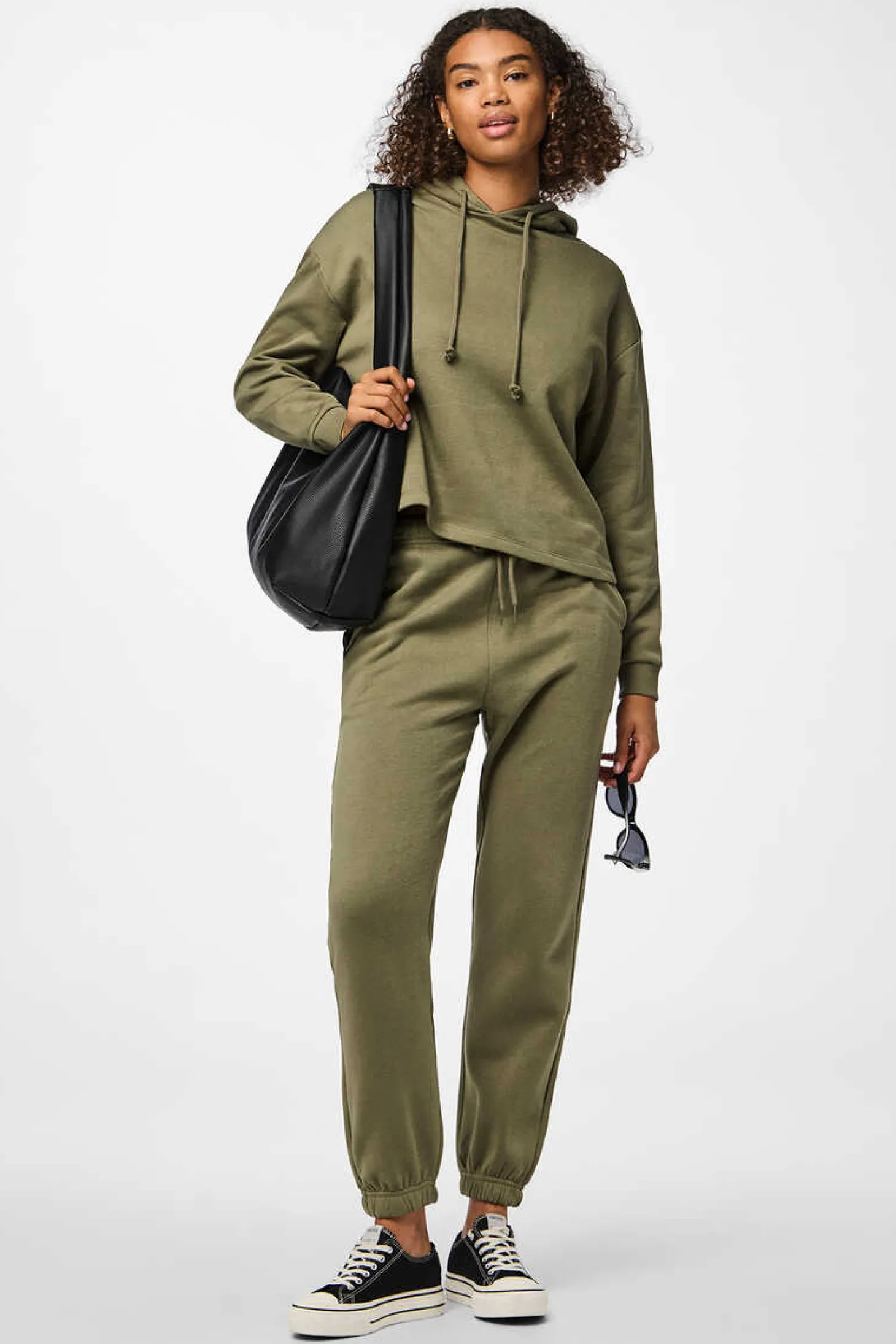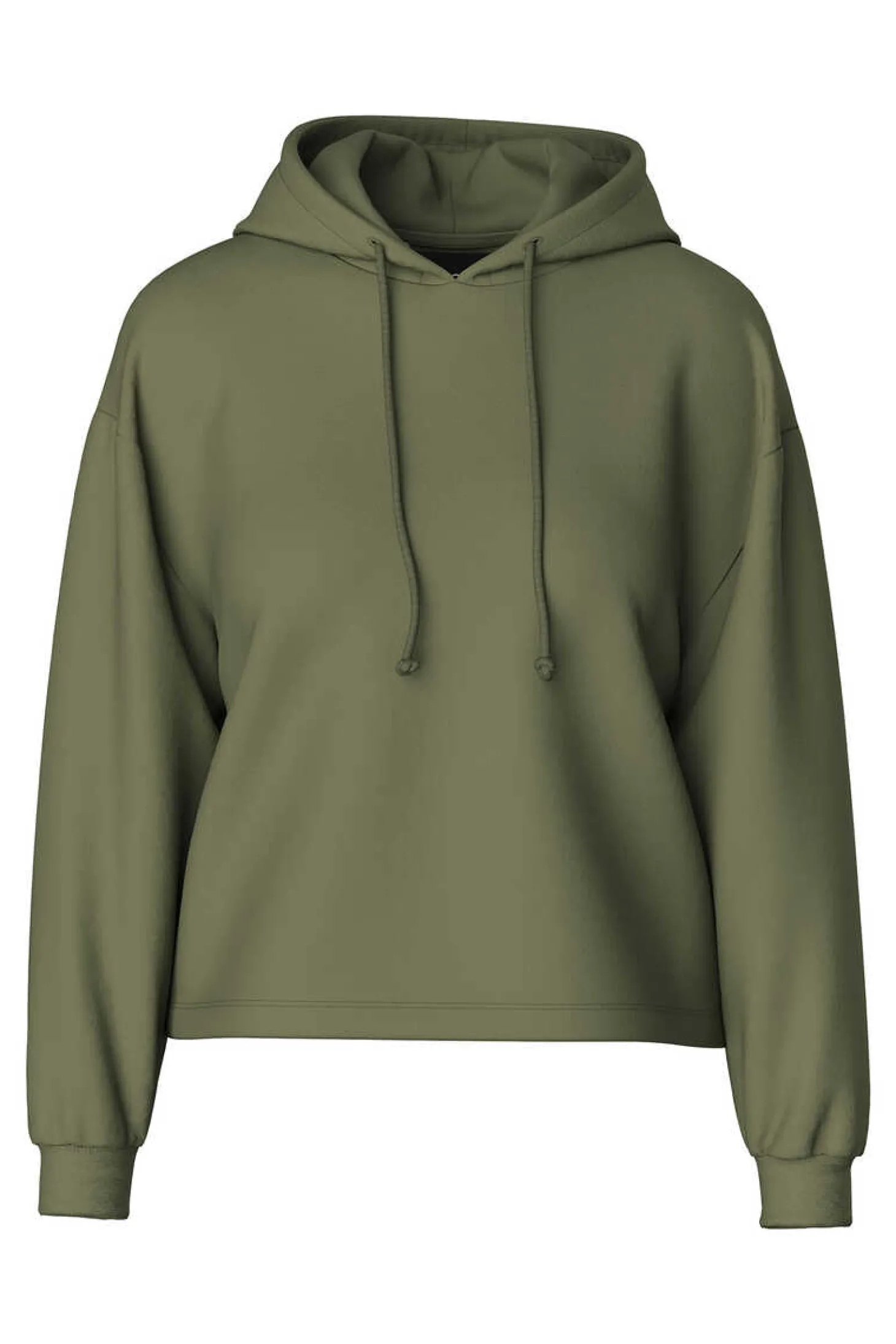 Sweatshirt De Manga Comprida, Ombro Descaido E Gola Redonda Com Capuz E Cordoes.