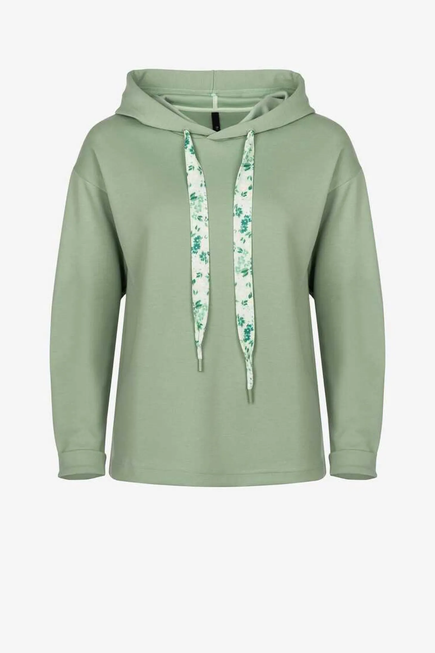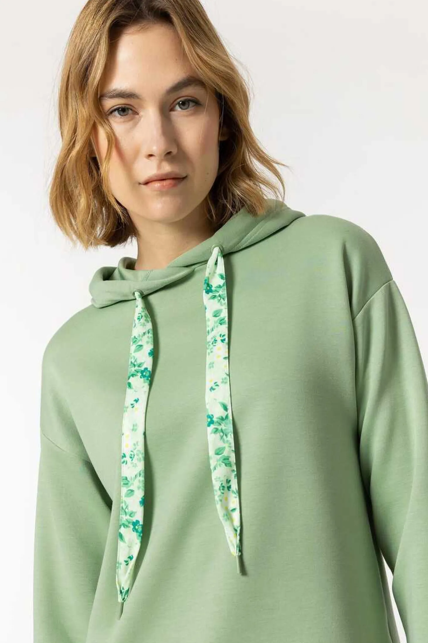 Sweatshirt Com Capuz Com Cordao Ajustavel E Manga Comprida De Acabamento Com Dobra. Cordoes Com Estampado Floral.