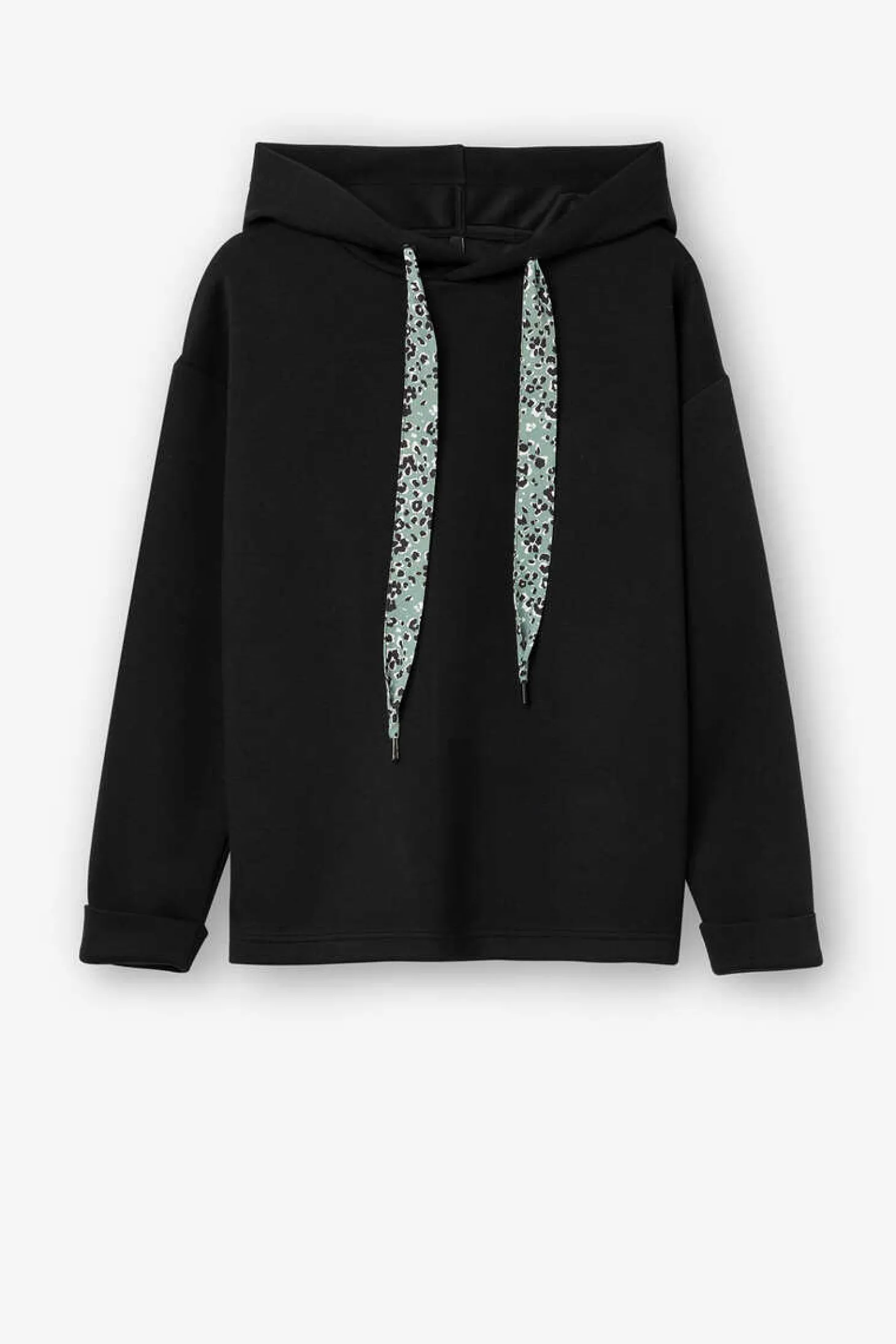Sweatshirt Com Capuz Com Cordao Estampado Ajustavel E Manga Comprida Enrolada. Altura Do Modelo: 178 Cm | Tamanho: S