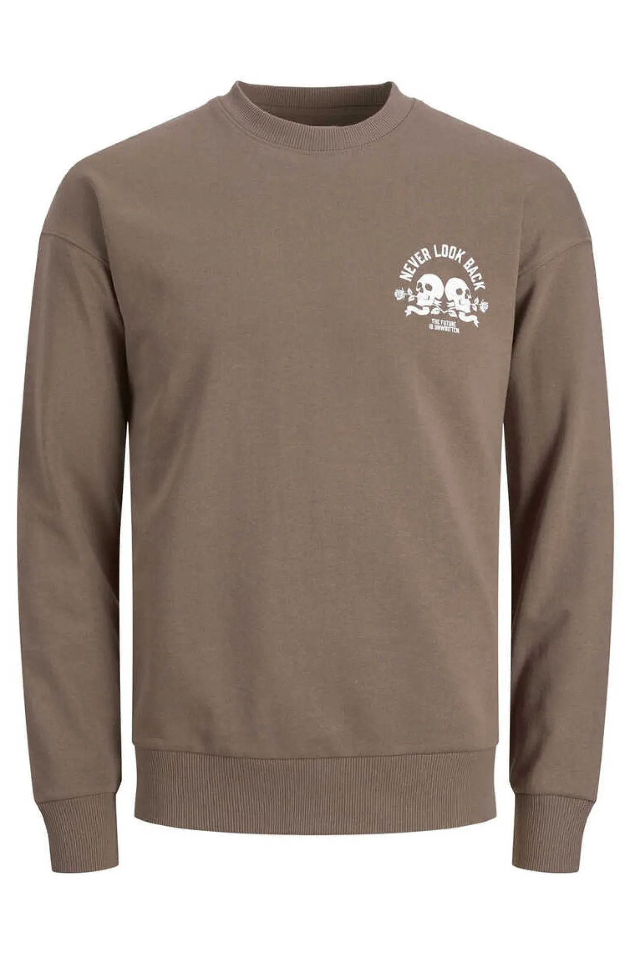 Sweatshirt Com Gola Redonda. Estampado Pequeno No Peito E Estampado Maior Nas Costas. Design Moderno. Relaxed Fit