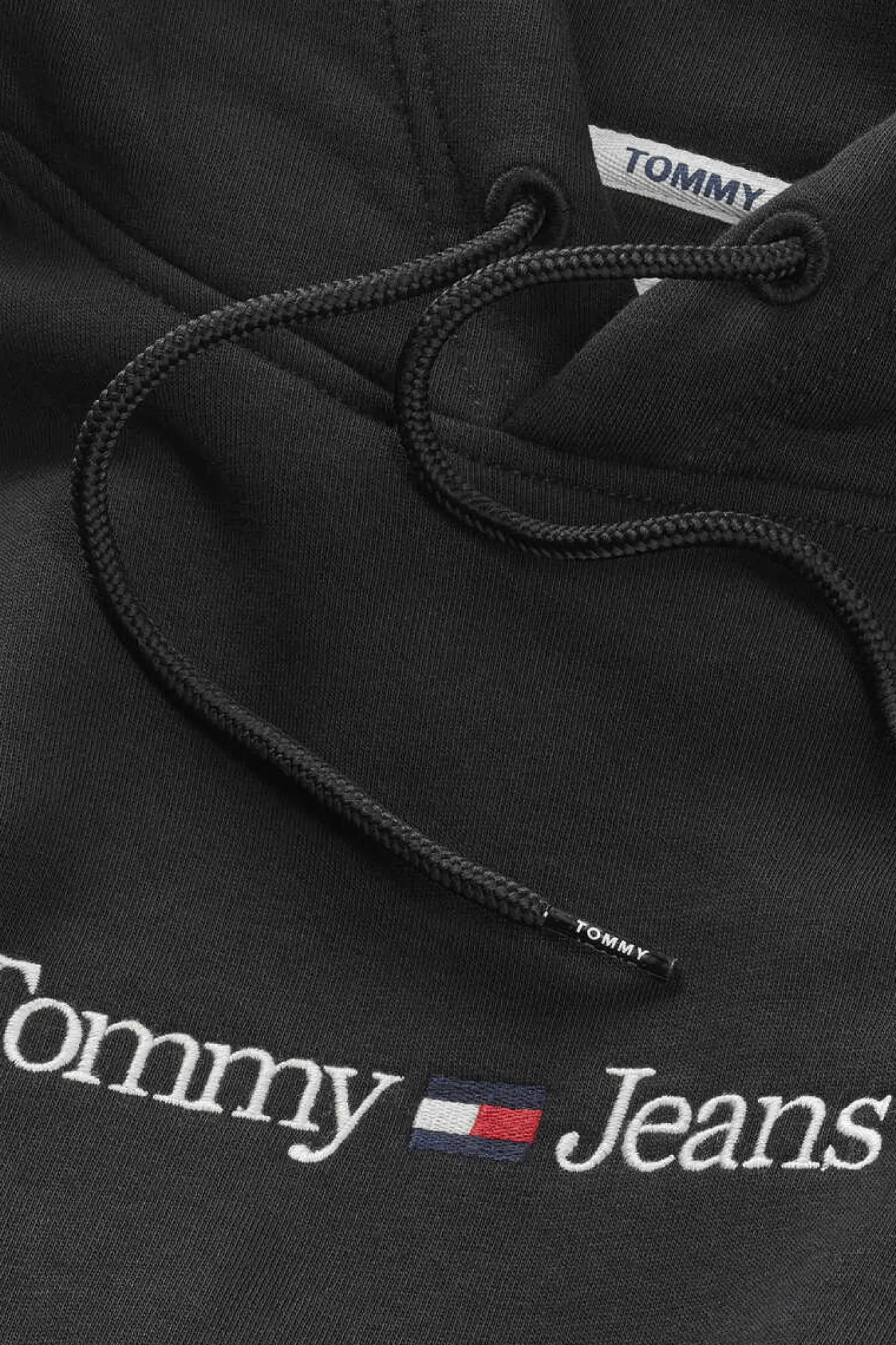 Sweatshirt De Homem Preta Com Capuz E Bolso Com Logo Estilo Linear.