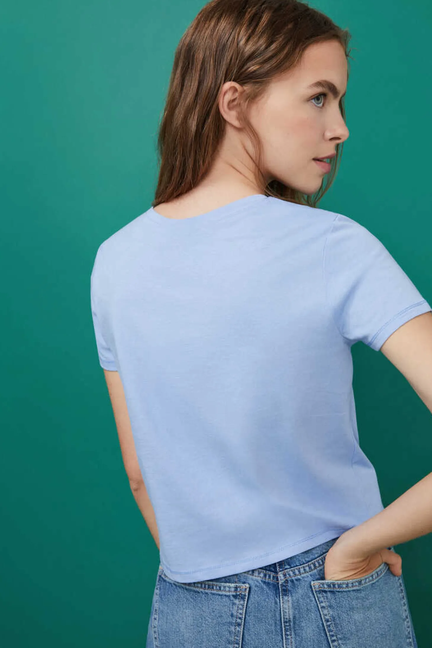 T-Shirt 100% Algodao Com Gola Redonda E Manga Curta. Em Azul, Com Logo Em Contraste Estampado Na Frente.