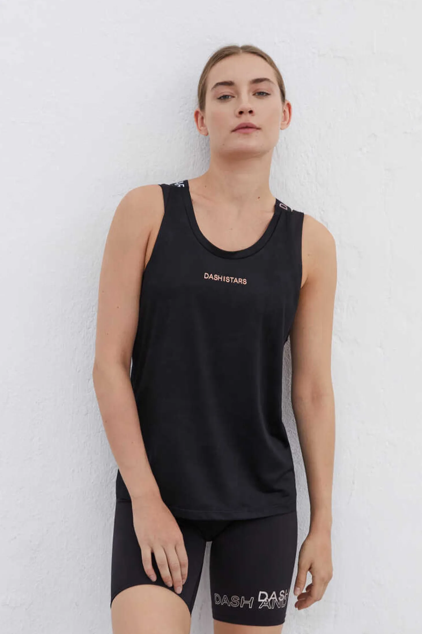 – T-Shirt De Alcas Tecnicas De Tipo Halter Em Cor Preta. Com Tecido Perfurado, Cava Baixa E Elastica Com Logo “Dash And Stars” Nas Costas, Esta T-Shirt E Mu … Ito Comoda Para Poder Realizar Qualquer Tipo De Exercicio, Seja Running Ou Training.