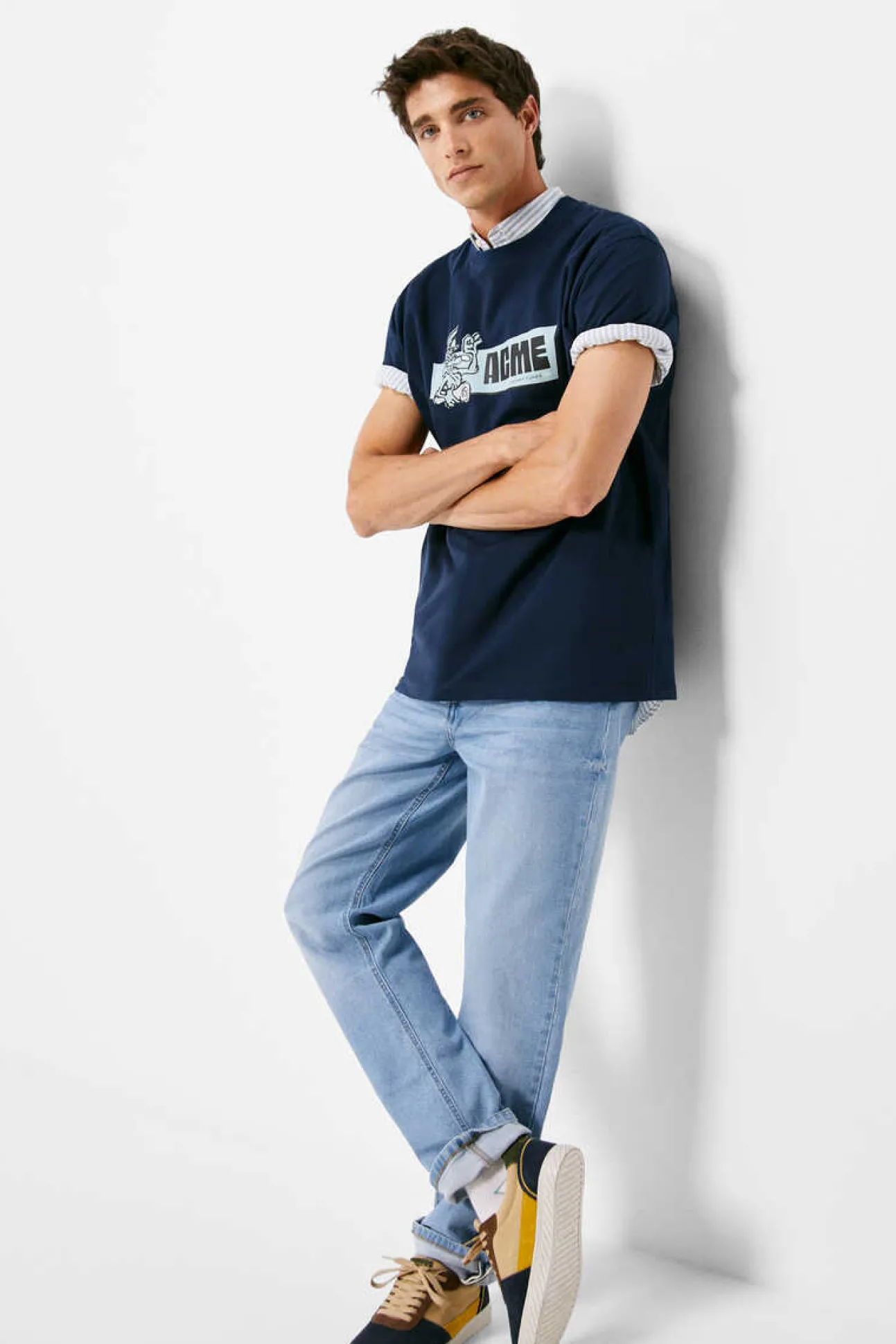 T-Shirt De Manga Curta Regular Fit Com Estampado De Coyote Acme No Peito. Confecionada Em 100% Algodao.