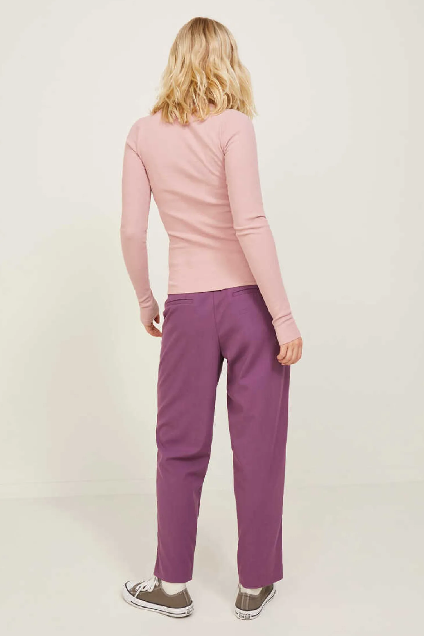 T-Shirt De Malha Elastico, De Manga Comprida E Decote Alto. Casual E Facil De Usar Todo O Dia.
