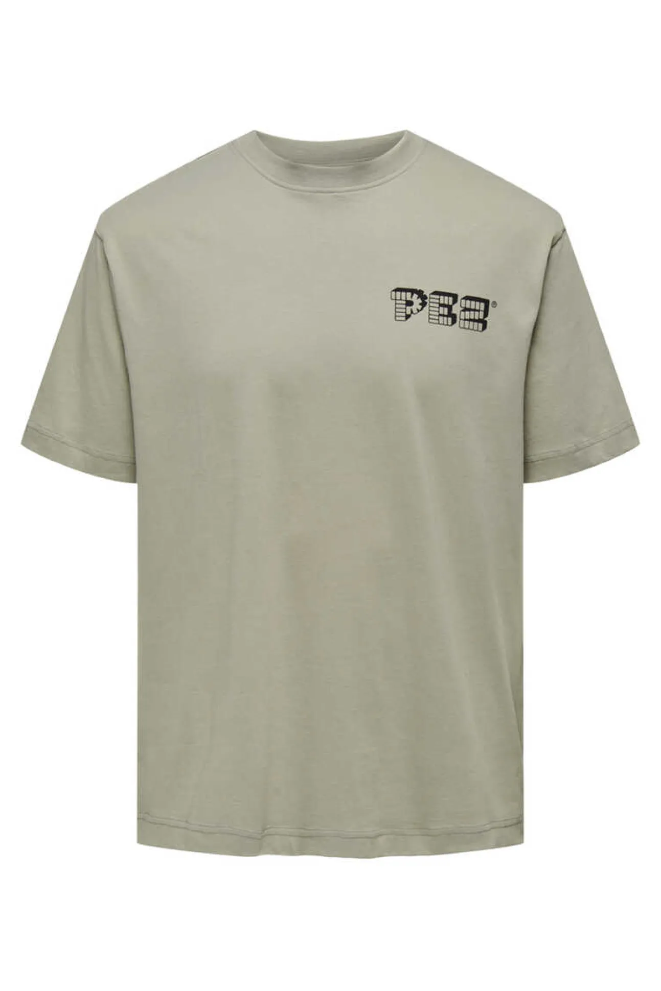 T-Shirt De Manga Curta Com Gola Redonda, Desenho Na Frente E Costas.