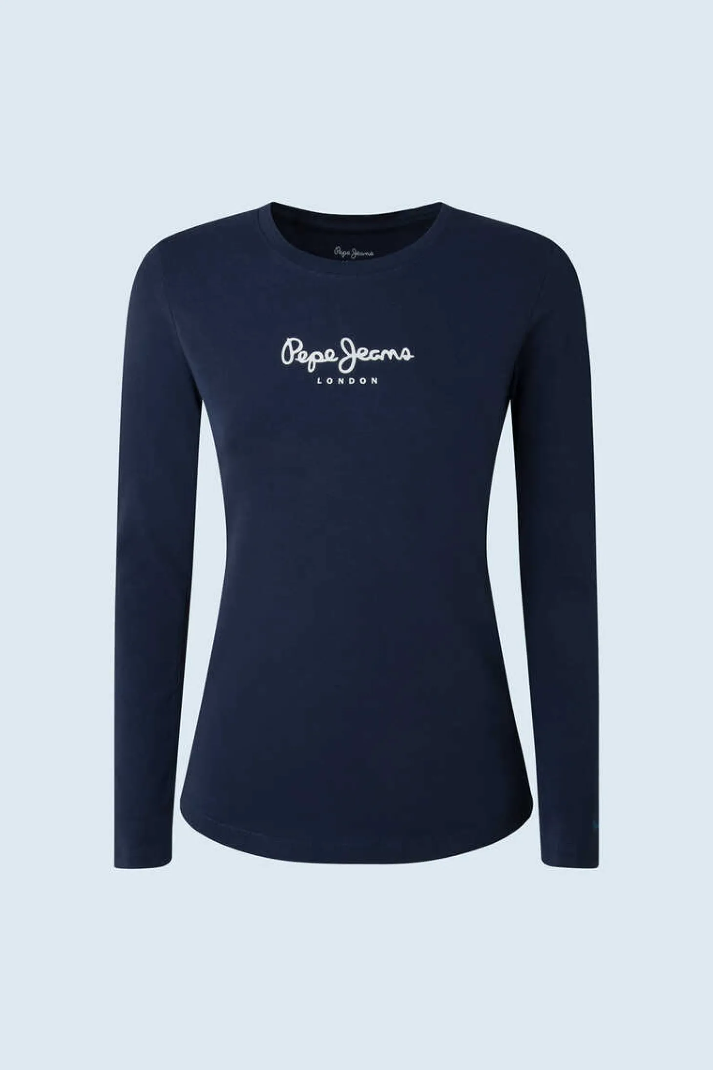 T-Shirt De Manga Comprida Cinzenta. Com Decote Redondo De Algodao.