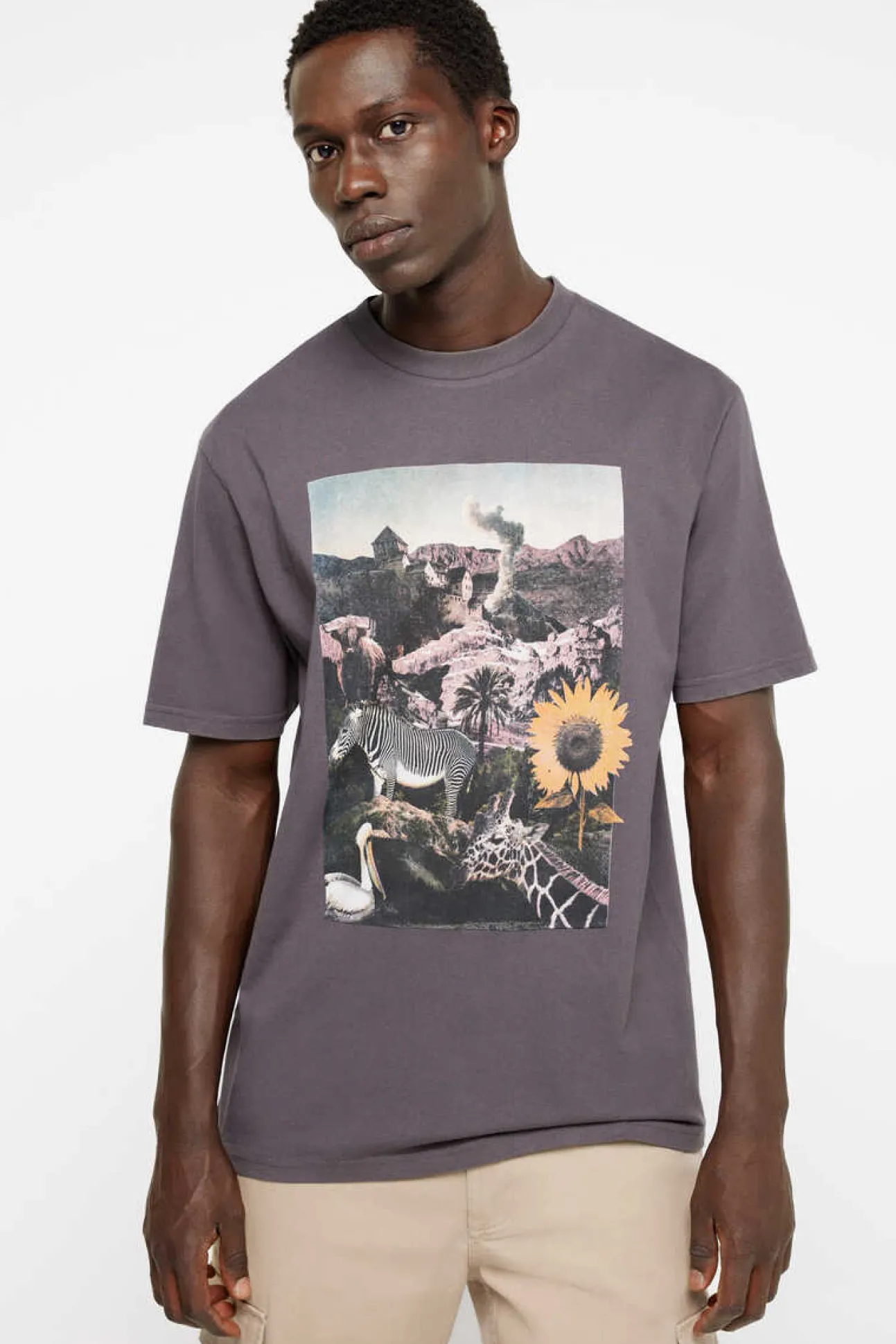 T-Shirt De Manga Curta Regular Fit Com Impresso Fotografico No Peito.