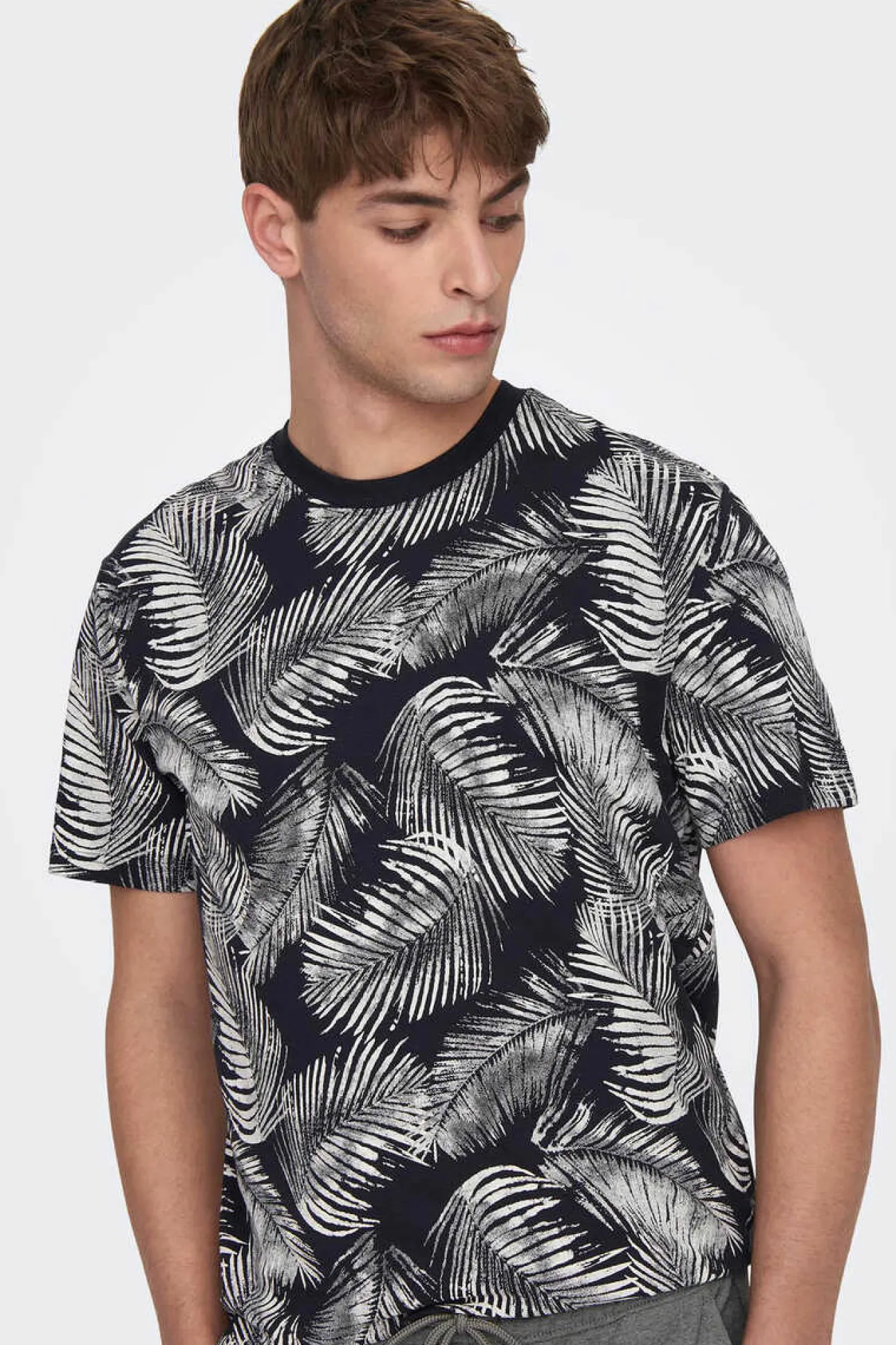 T-Shirt De Manga Curta E Gola Redonda Com Estampado.