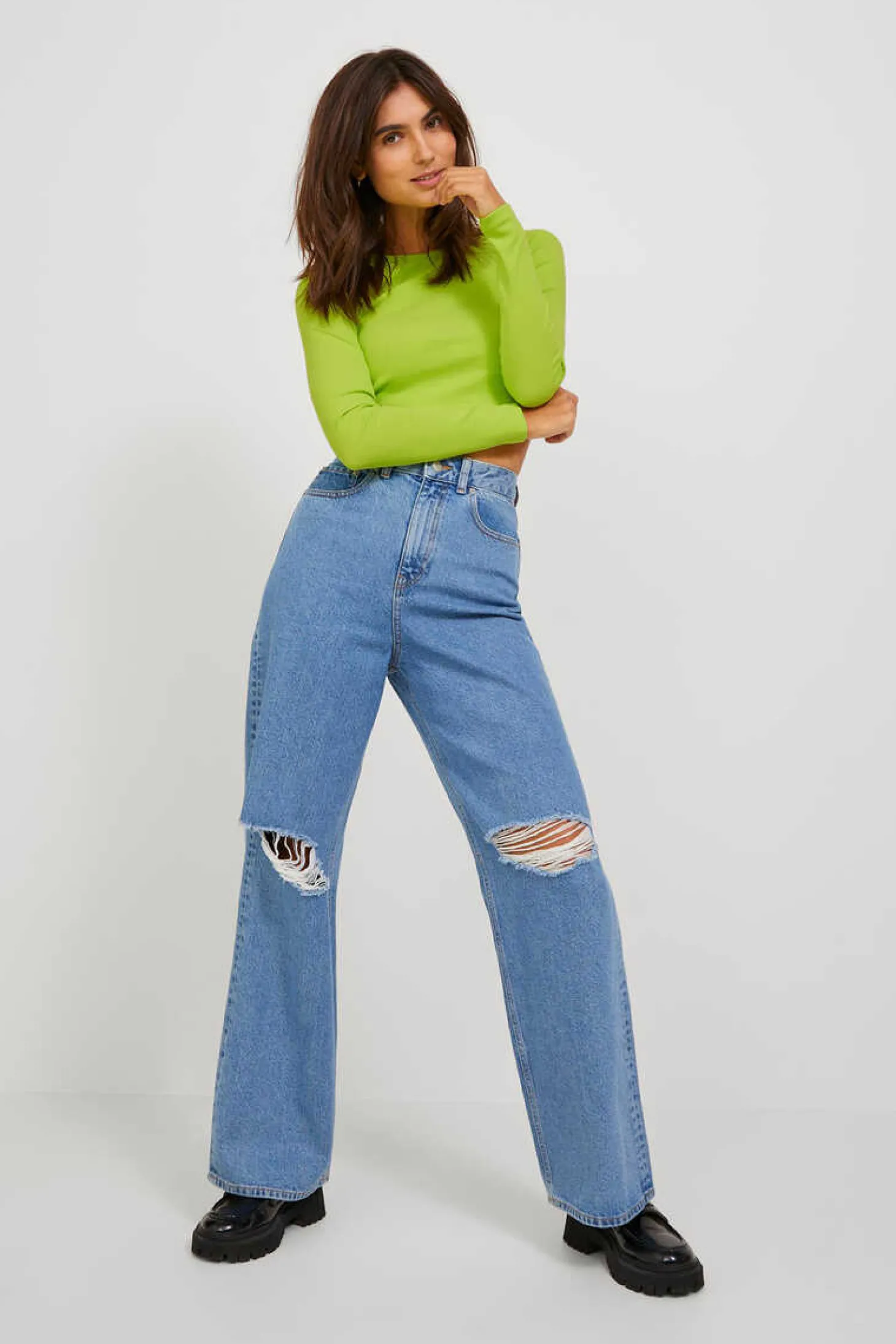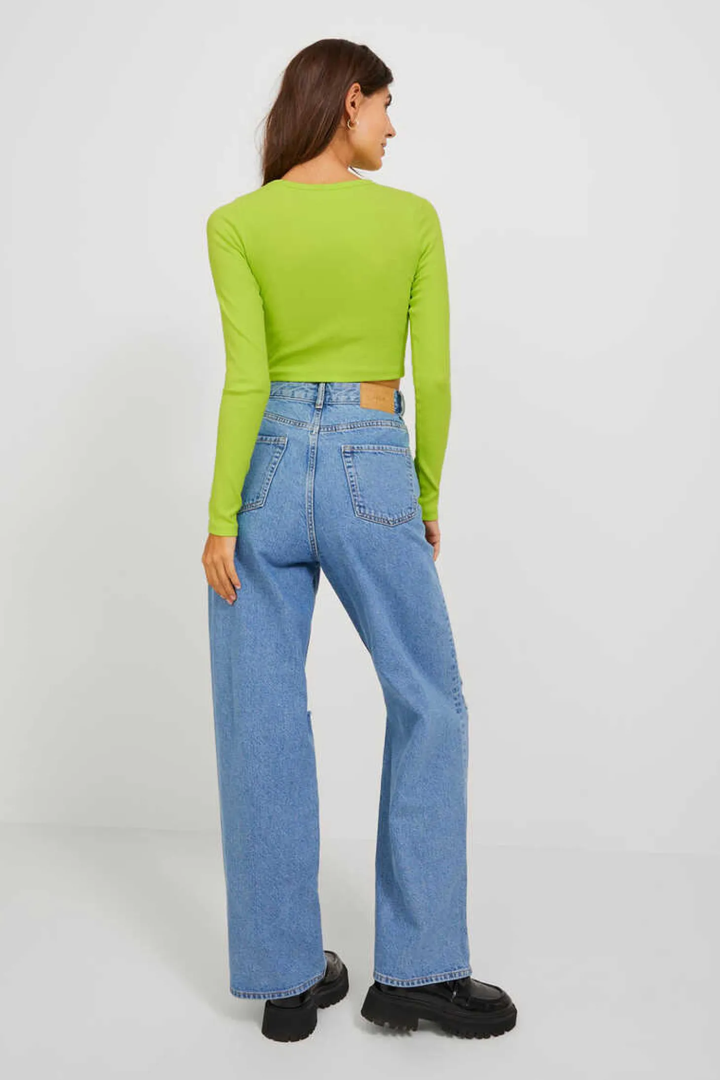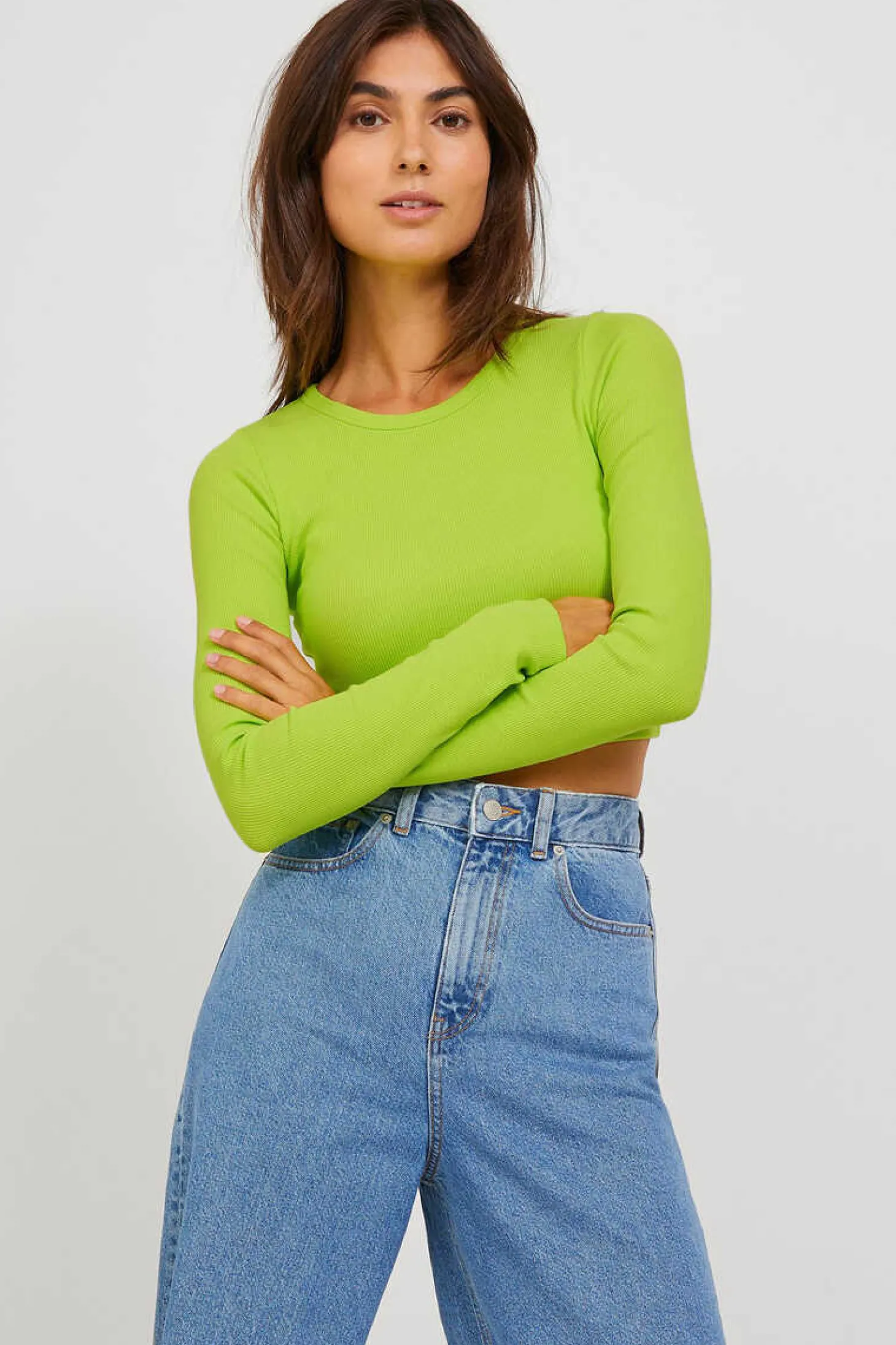T-Shirt Manga Comprida Tecido Rib. Malha Canelada. T-Shirt De Qualidade Para Uso Diario. Corte Slim. Gola Redonda.A Modelo Leva O Tamanho S