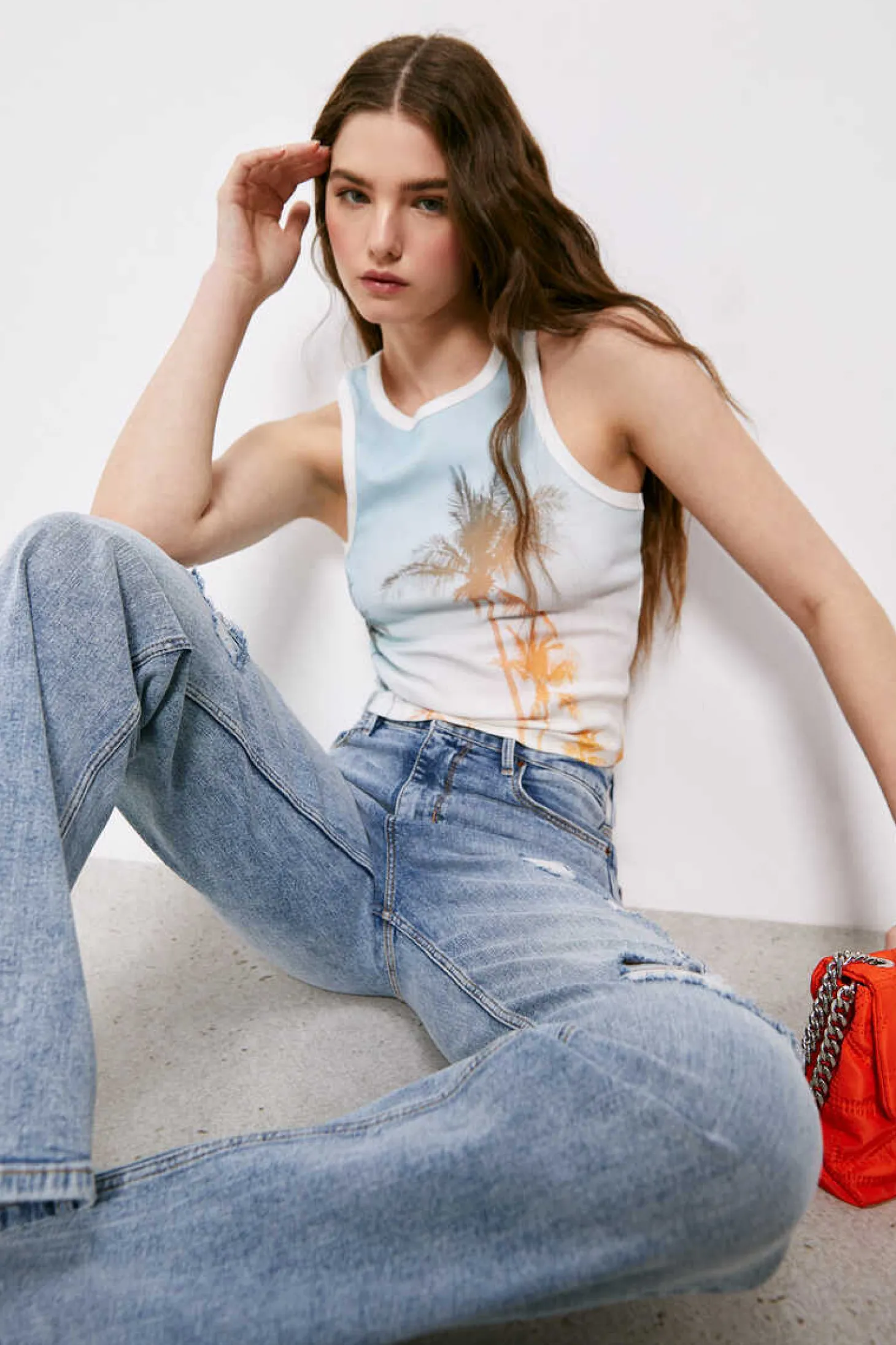 T-Shirt De Alcas Estilo Nadadora, Com Gola Redonda, Estampado Grafico Na Frente De Paisagem Com Texto.