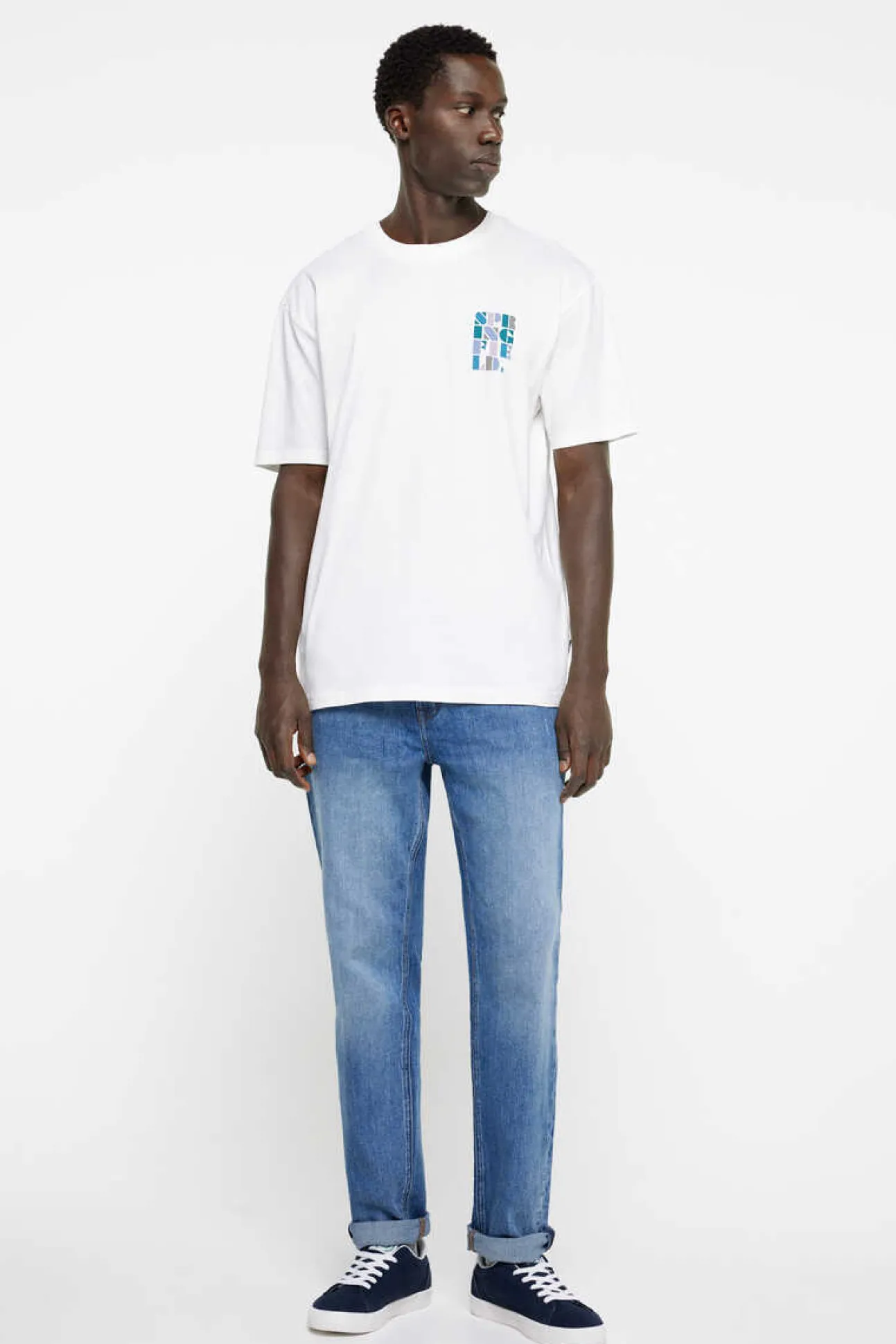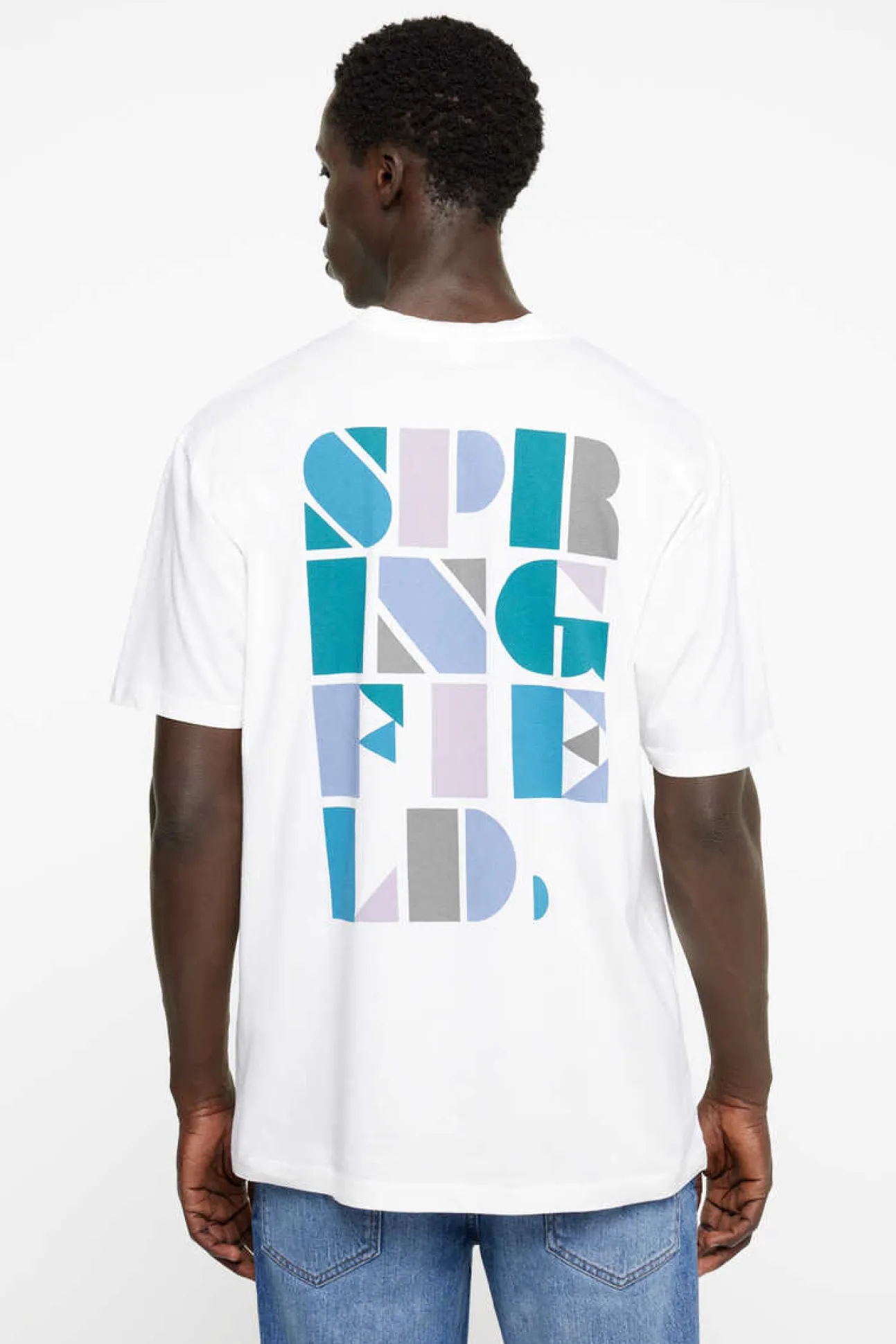 T-Shirt De Manga Curta Regular Fit Com Estampado No Peito E Costas Logo Springfield.