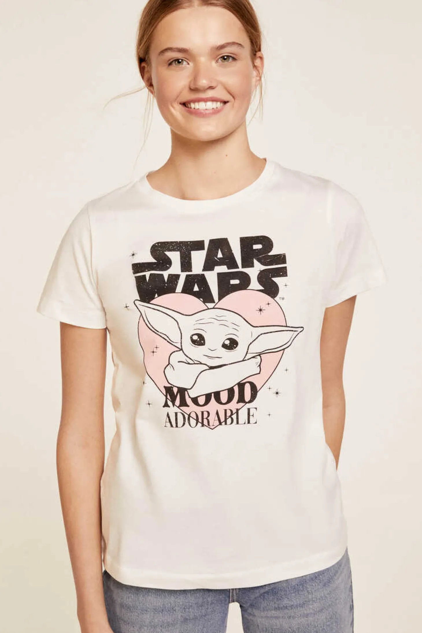 T-Shirt De Gola Redonda, Com Estampagem Grafica Posicional De Desenho E Texto A Frente.