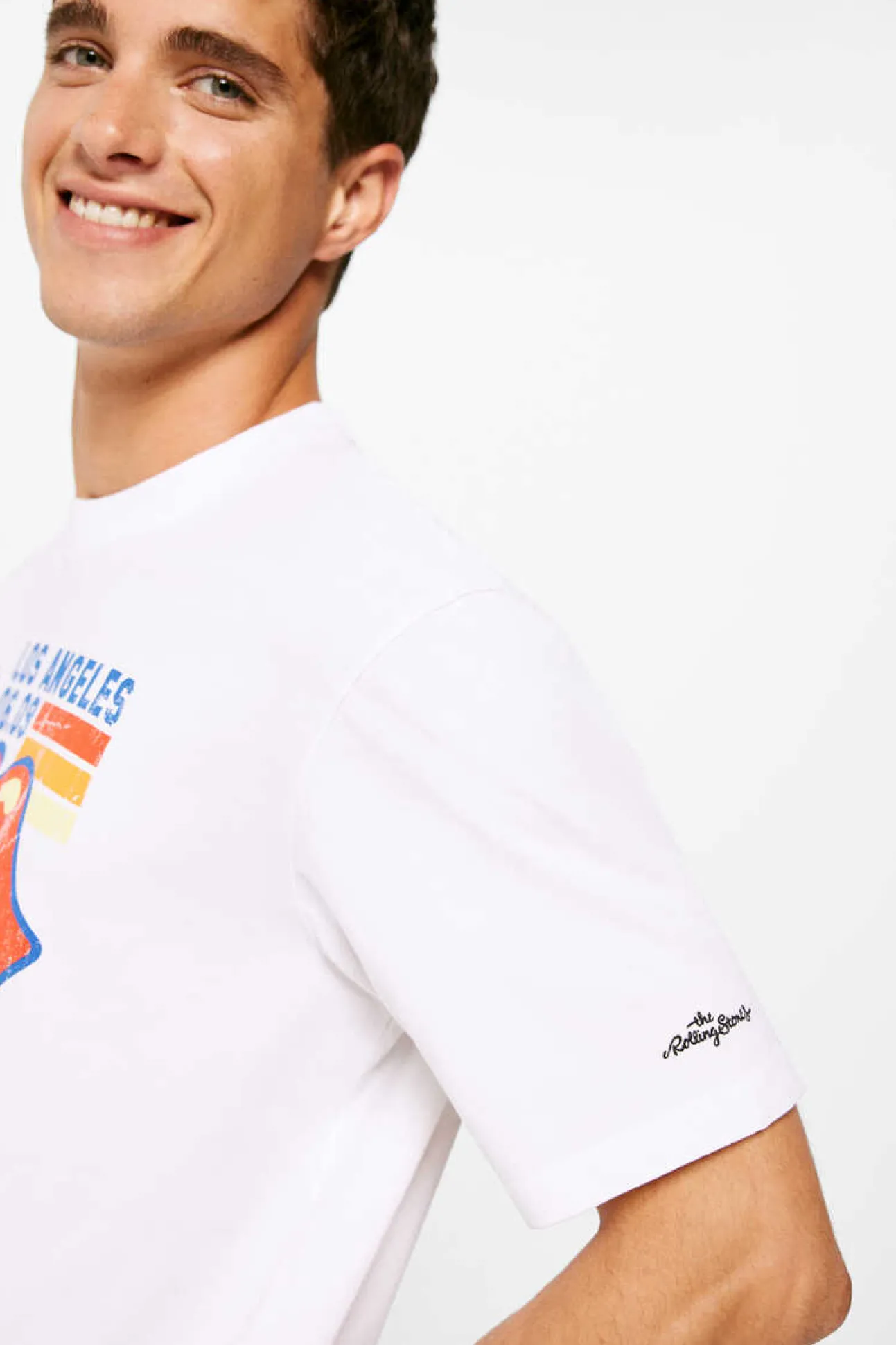 T-Shirt De Manga Curta Regular Fit Com Estampado No Peito The Rolling Stones 72 L.A. Confecionada Em 100% Algodao.