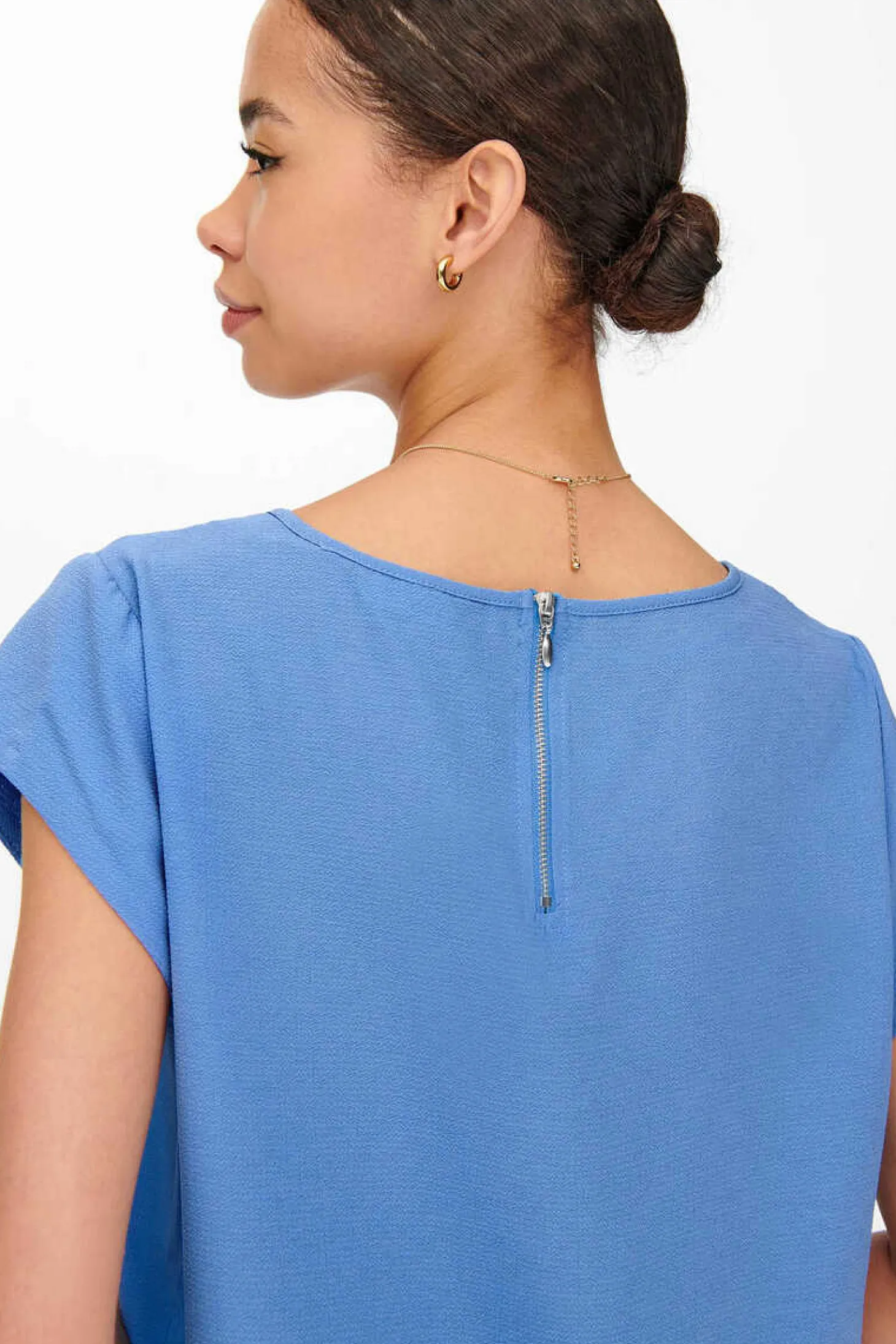 T-Shirt, Tecido Fluido, Gola Redonda, Corte Folgado E Detalhe Fecho-Eclair Nas Costas.